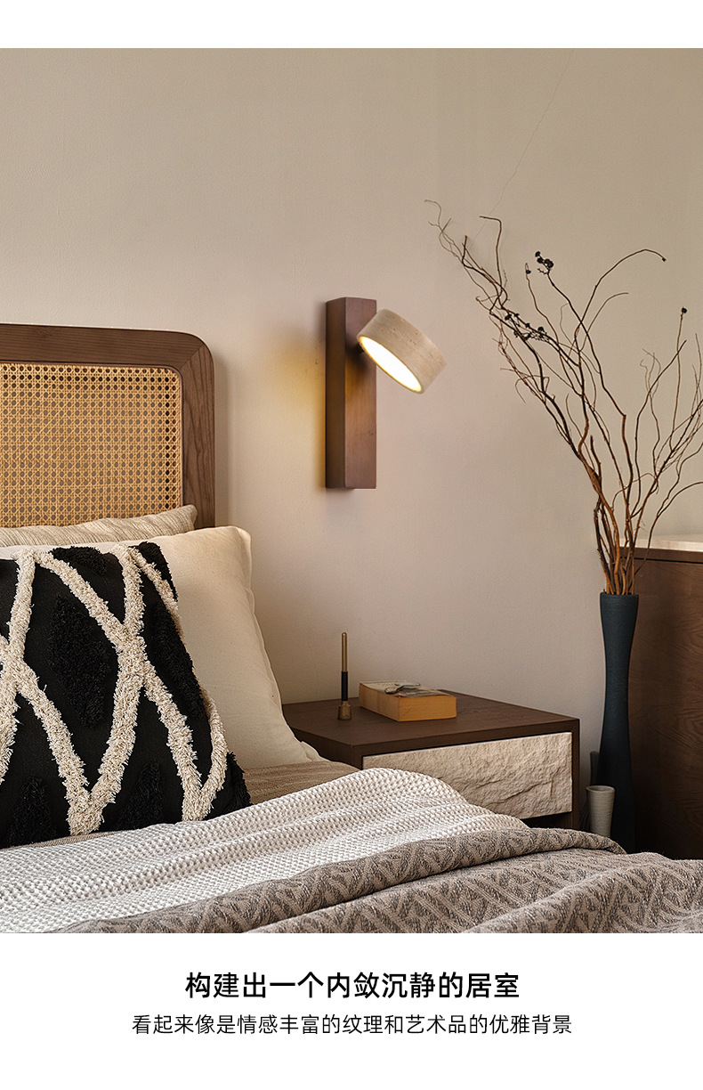 노란 동굴 돌 단단한 나무 간단한 침대 옆 벽 램프 풀 와이어 스위치 회전 가능한 중동 고대 창조적 인 침묵하는 바람 램프