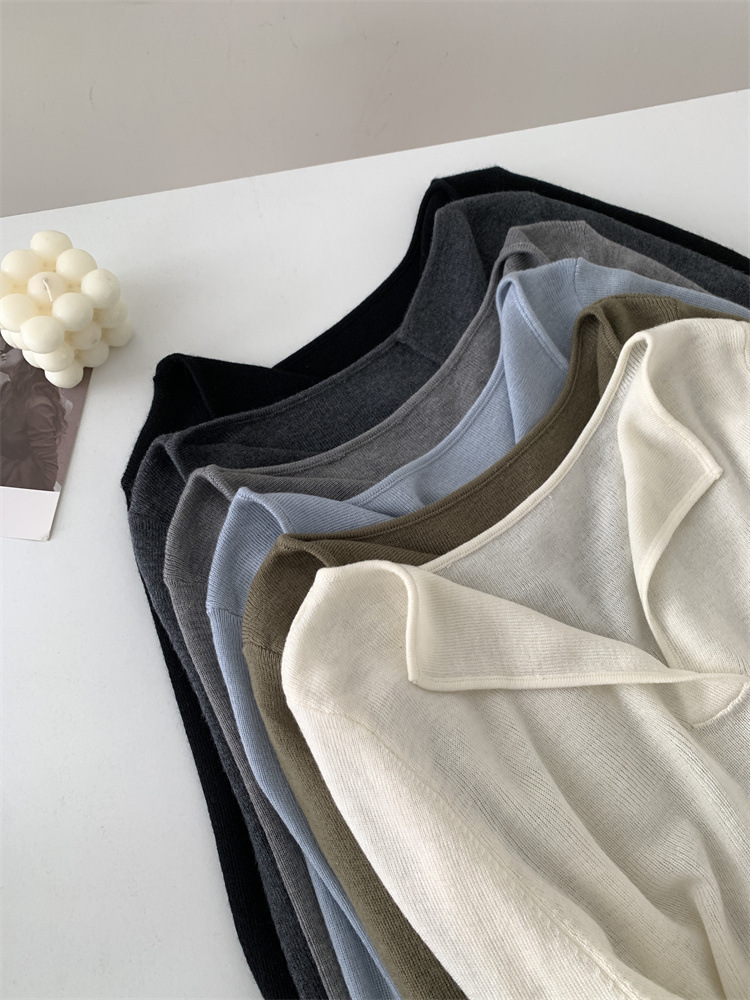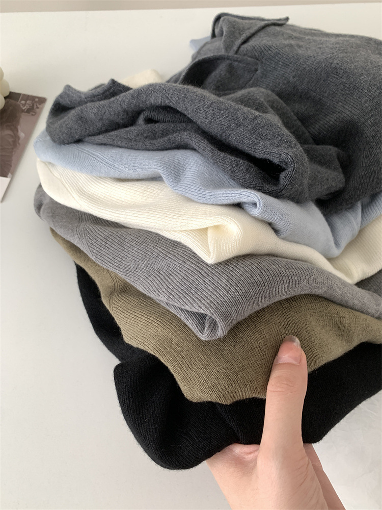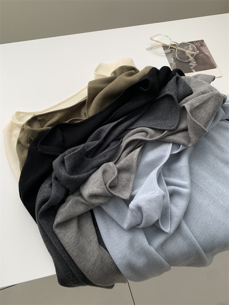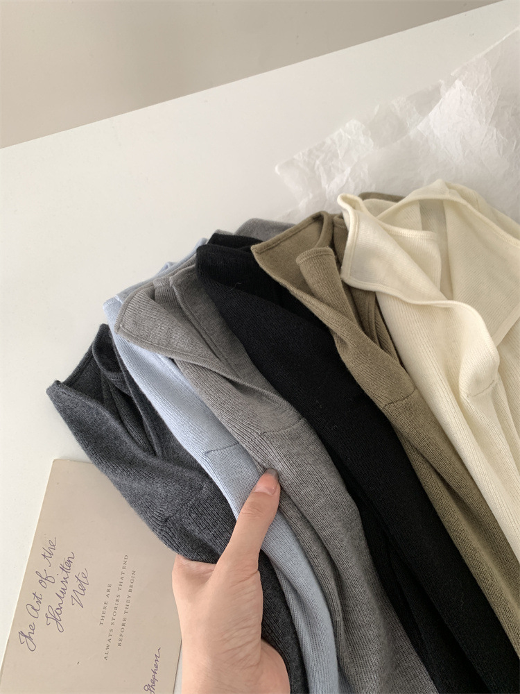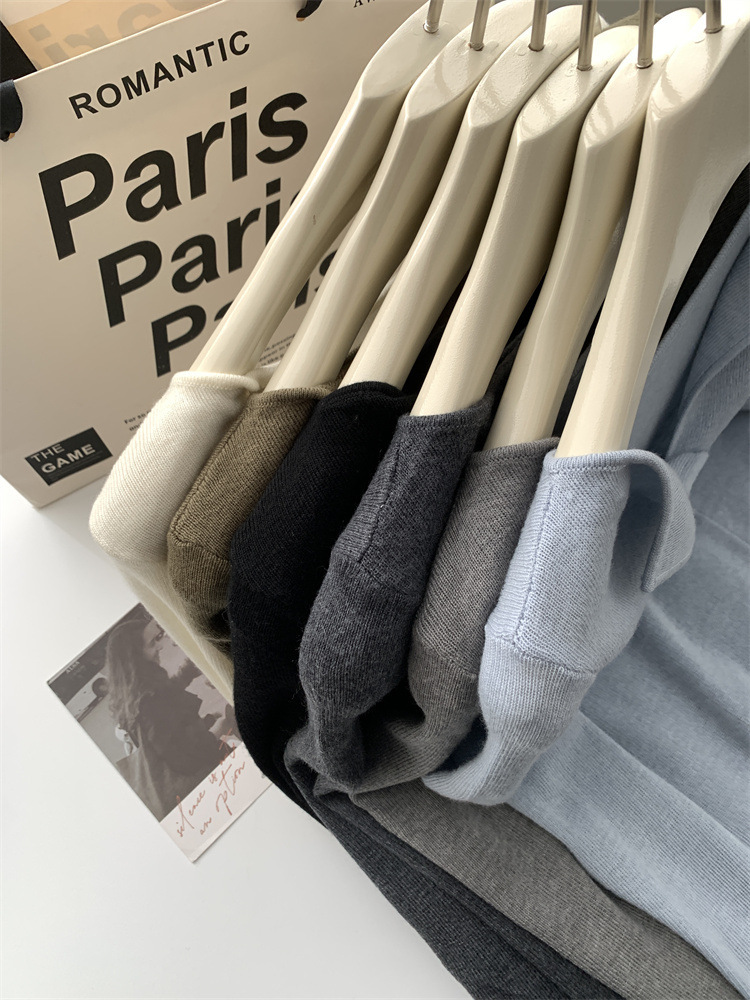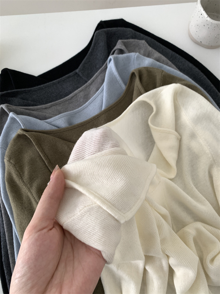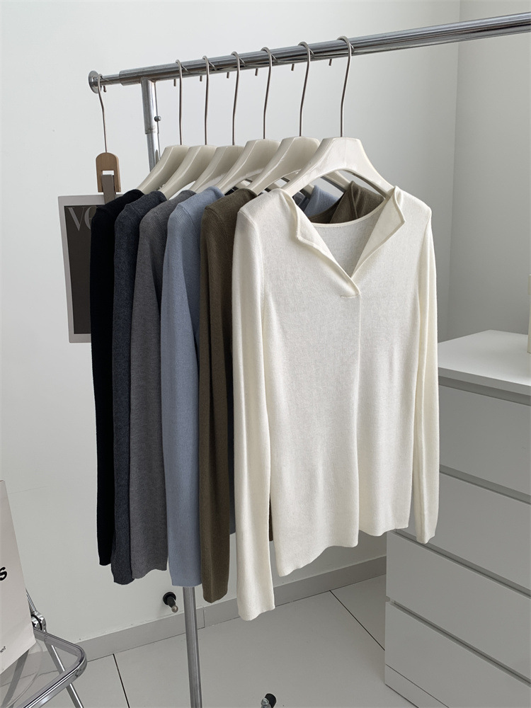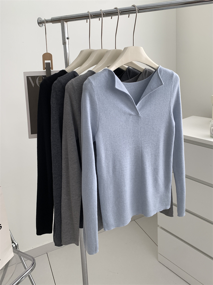 순수 옷깃 실크 양모 니트 스웨터 여성의 우아한 올 매치 슬리밍 얇은 스웨터 가을과 겨울 하트 V목베이스 셔츠스토어 가기