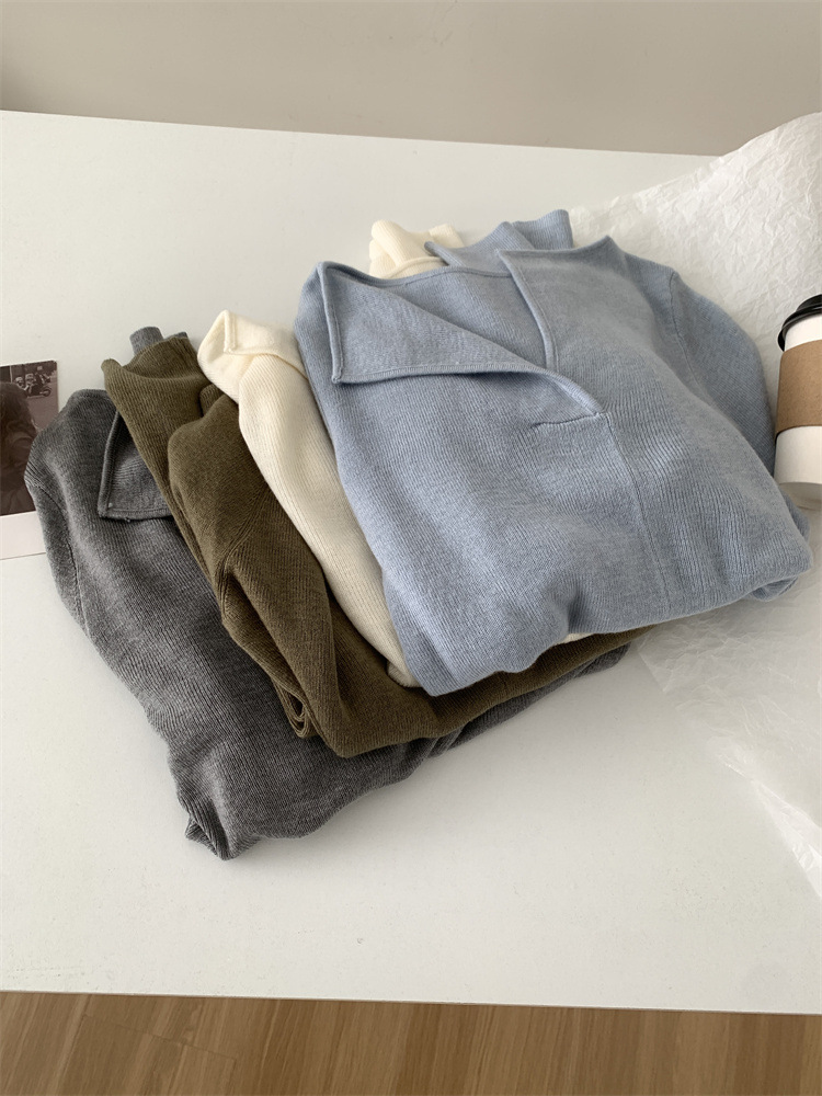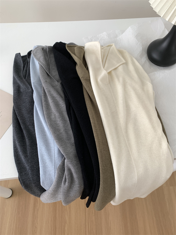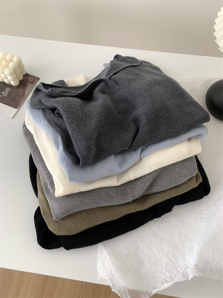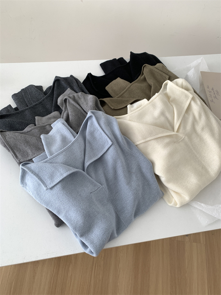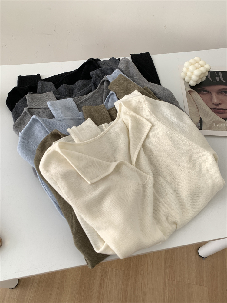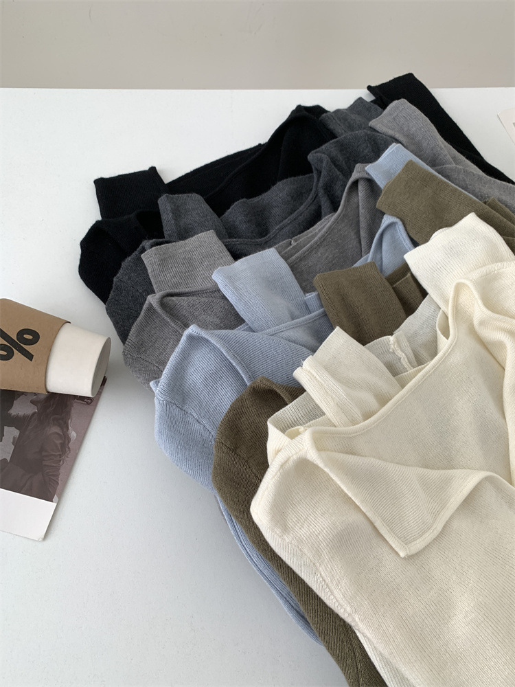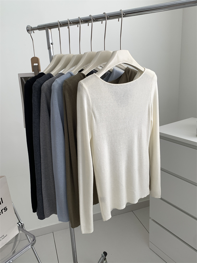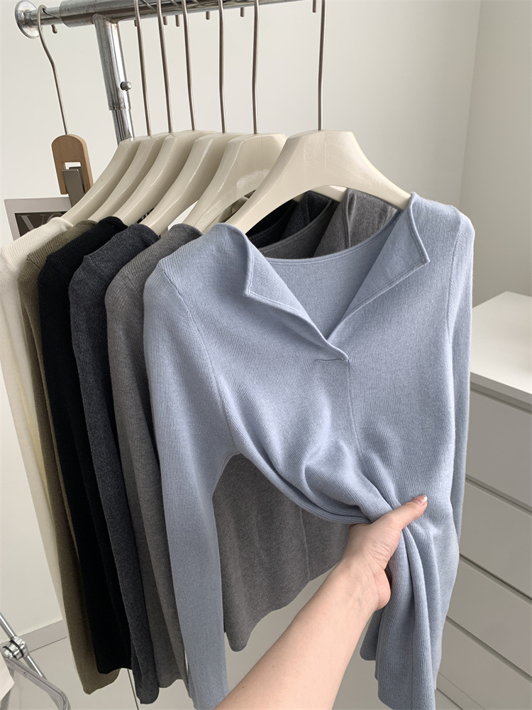 순수 옷깃 실크 양모 니트 스웨터 여성의 우아한 올 매치 슬리밍 얇은 스웨터 가을과 겨울 하트 V목베이스 셔츠스토어 가기