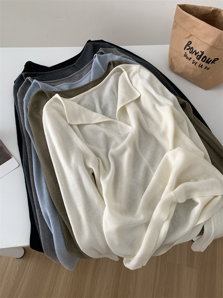 순수 옷깃 실크 양모 니트 스웨터 여성의 우아한 올 매치 슬리밍 얇은 스웨터 가을과 겨울 하트 V목베이스 셔츠