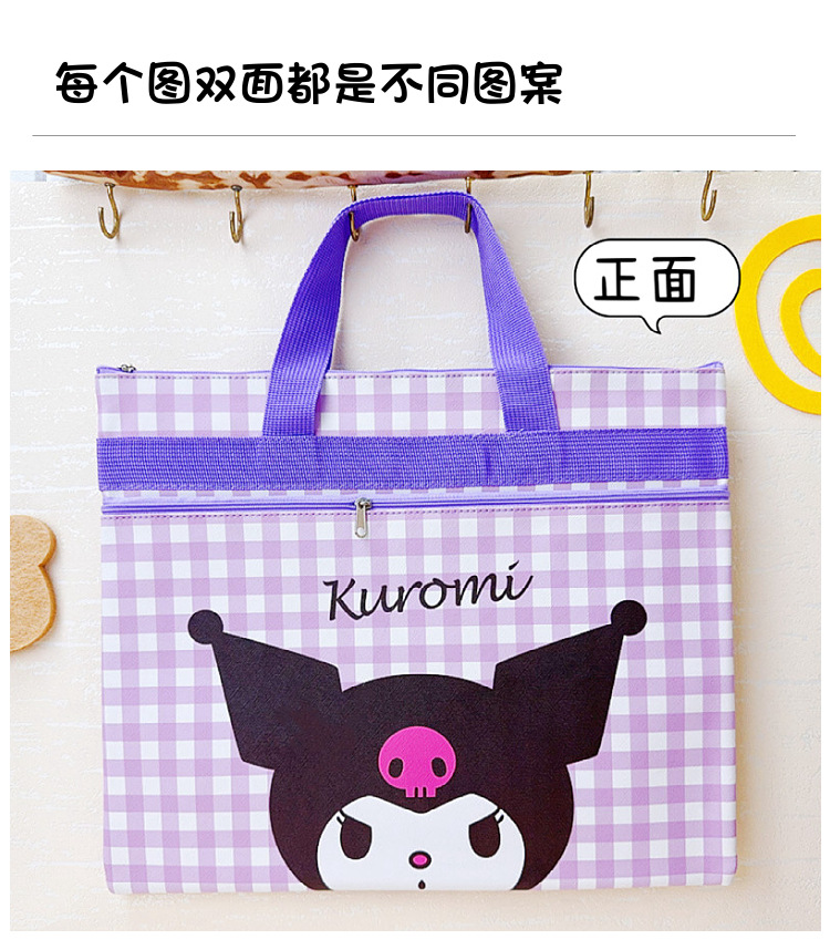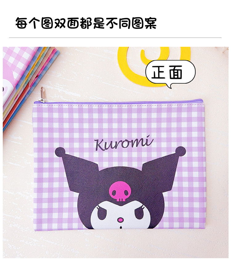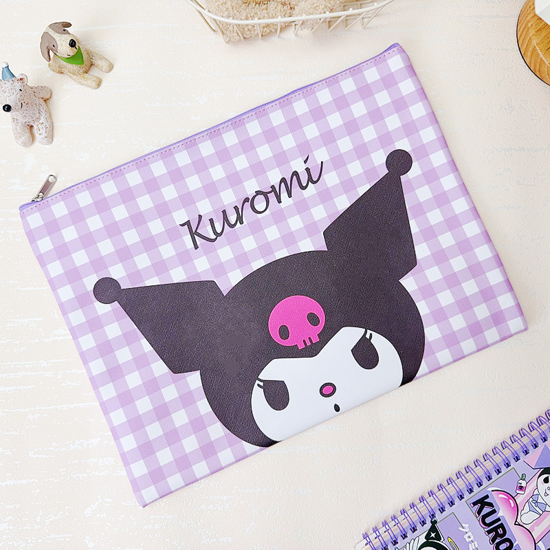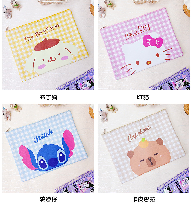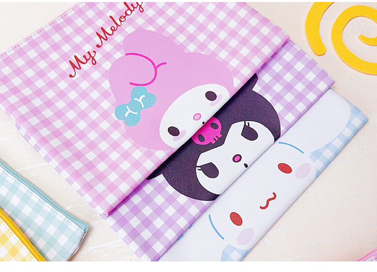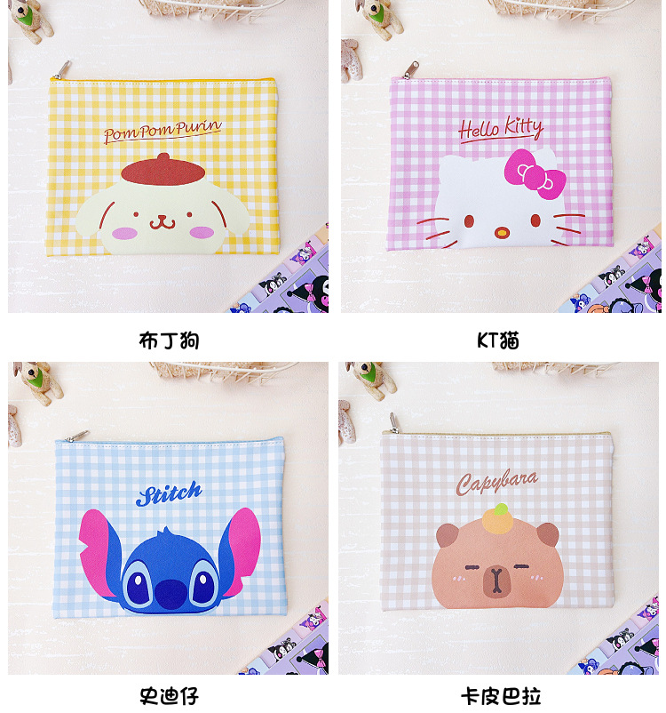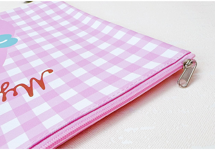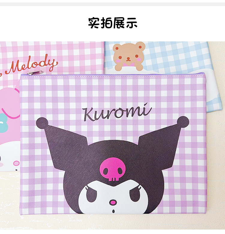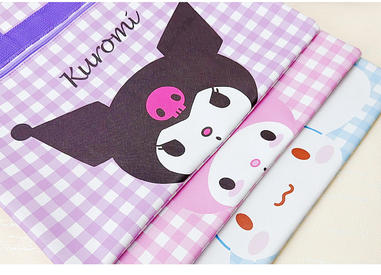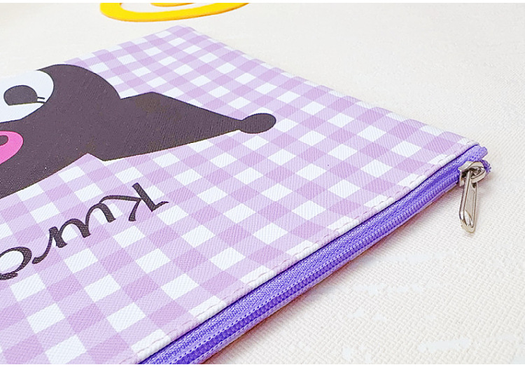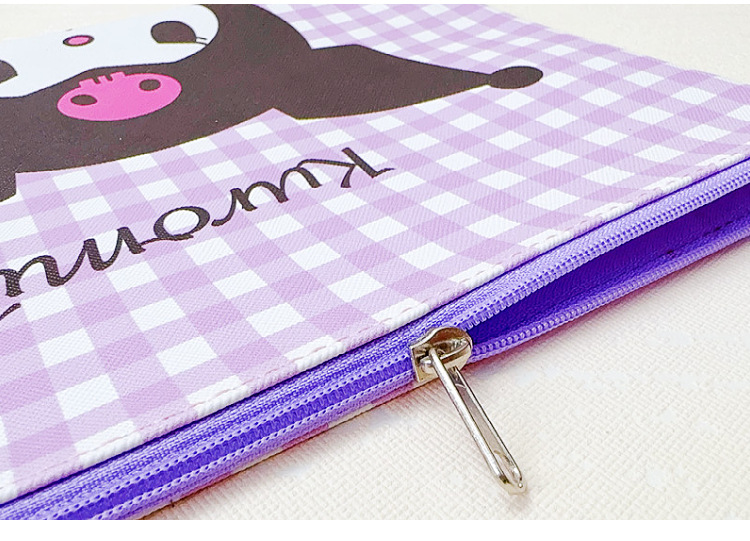대외 무역 만화 더블 지퍼 격자 무늬 파일 가방 학생 튜토리얼 가방 kulomi 핸드백 PU 가죽 보관 가방