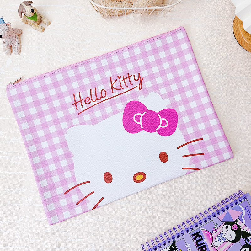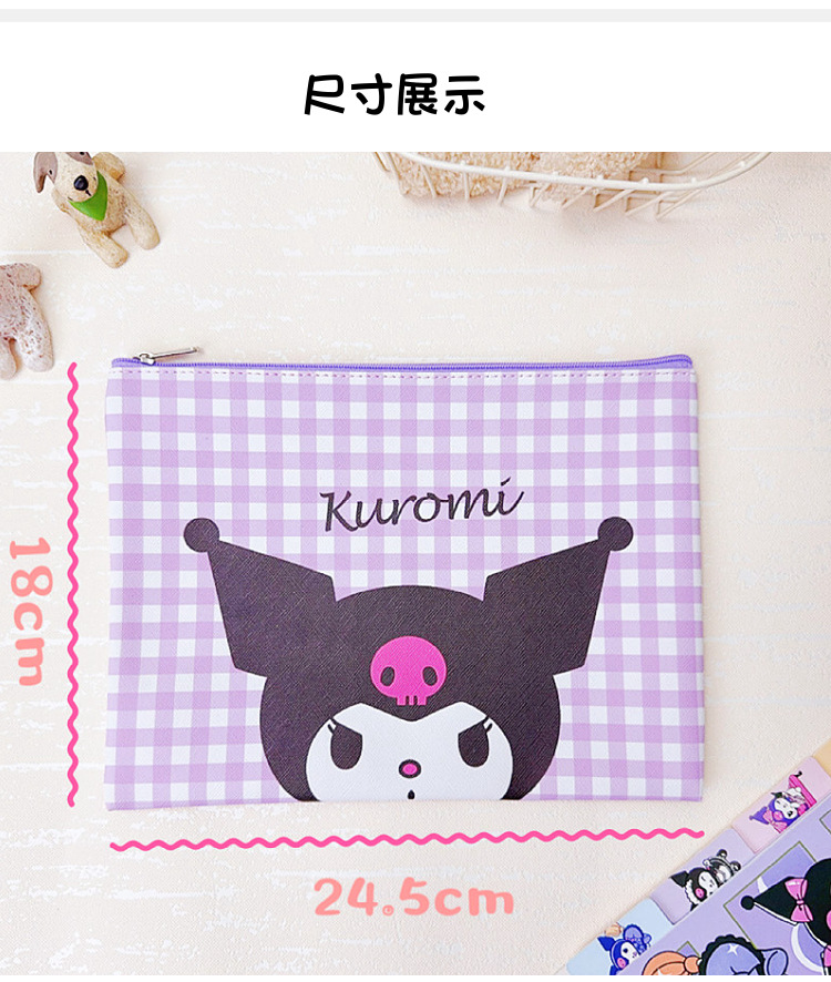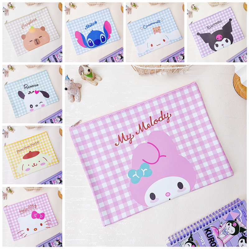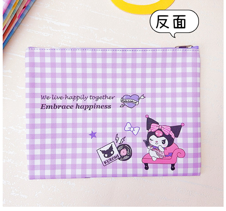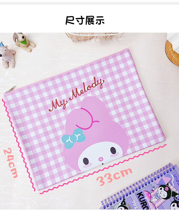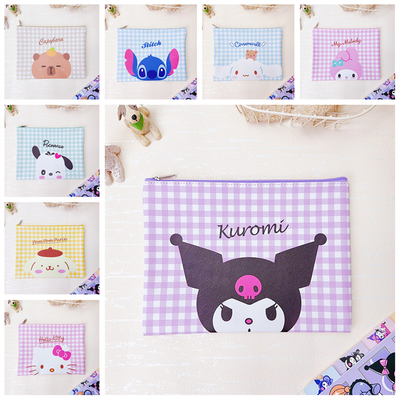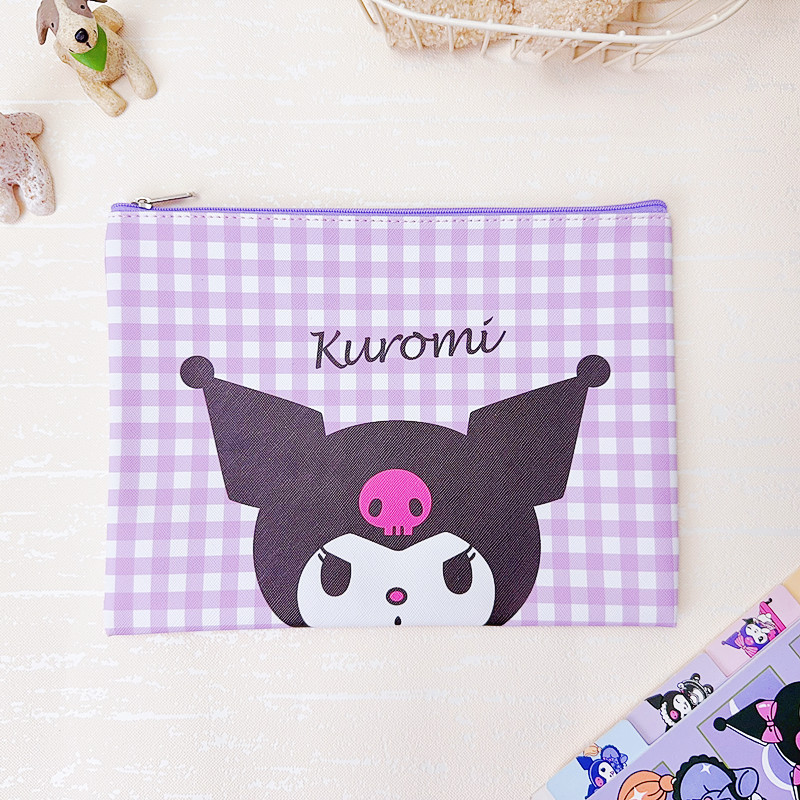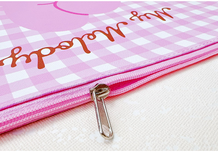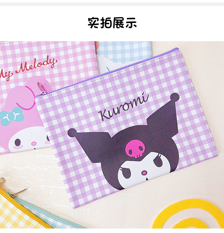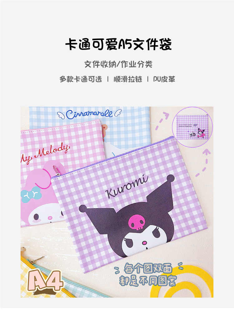 대외 무역 만화 더블 지퍼 격자 무늬 파일 가방 학생 튜토리얼 가방 kulomi 핸드백 PU 가죽 보관 가방