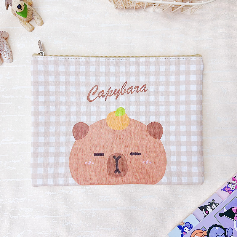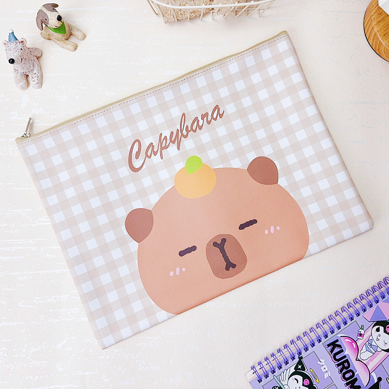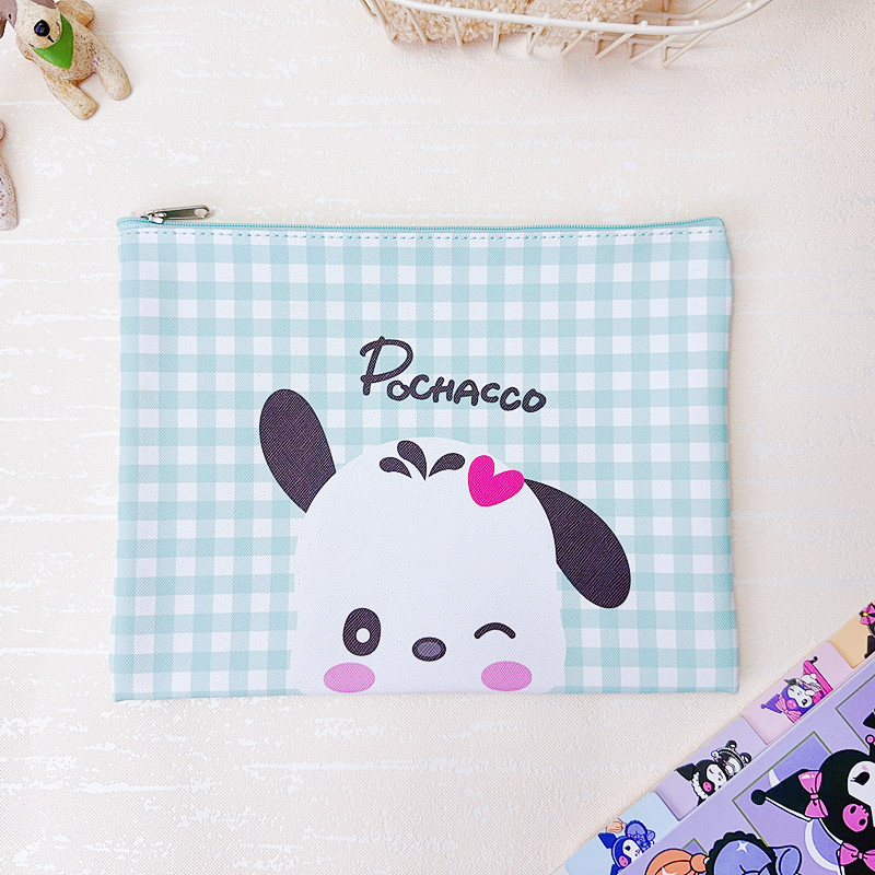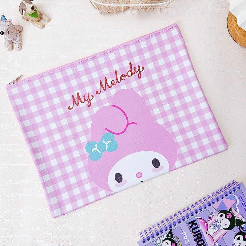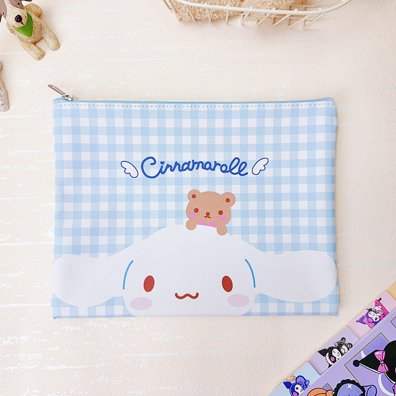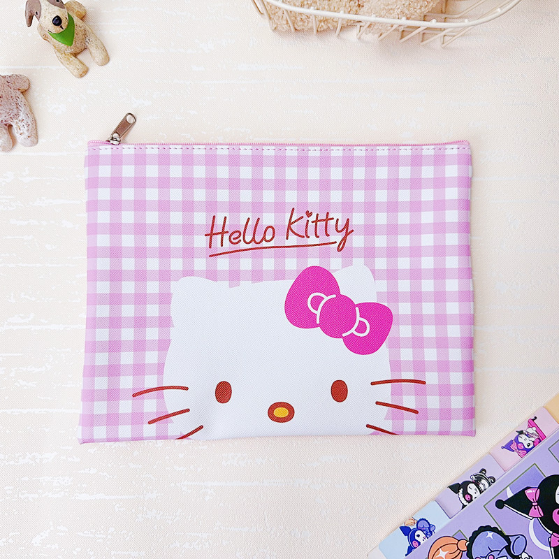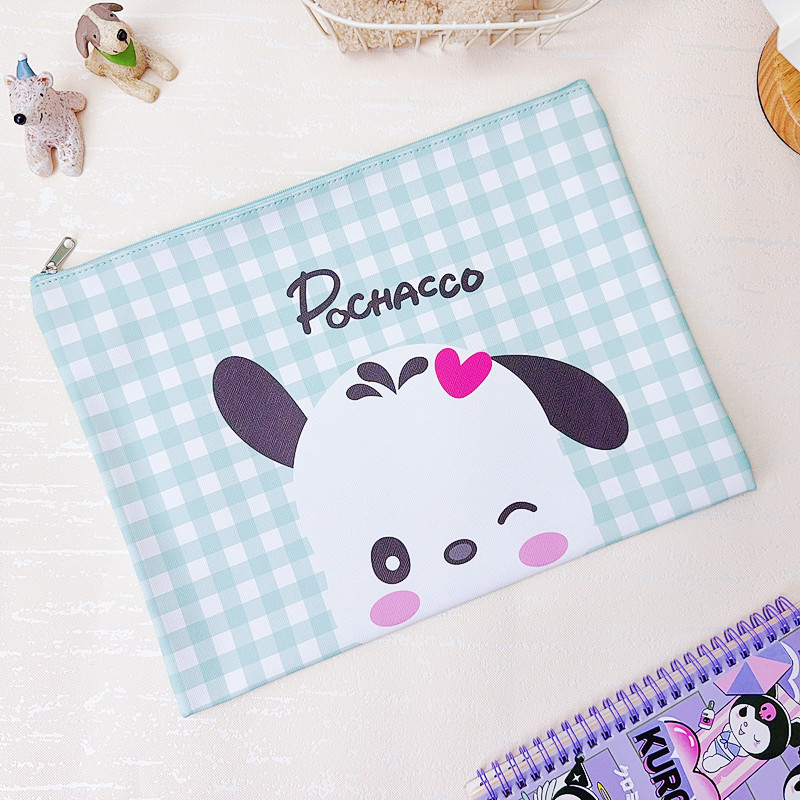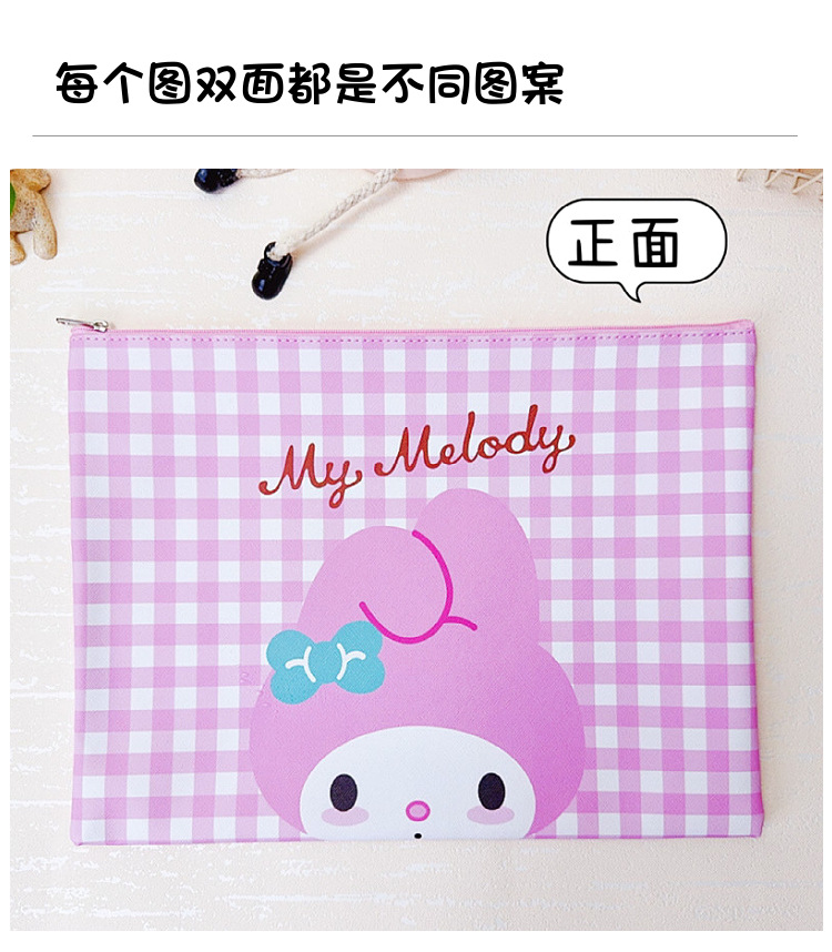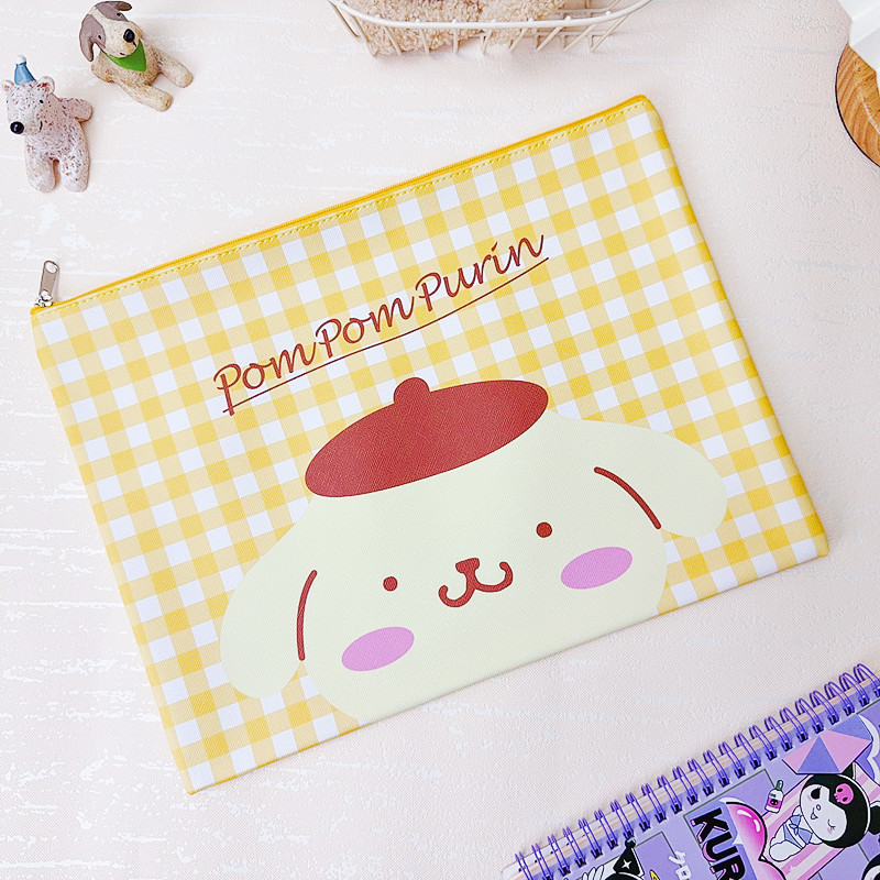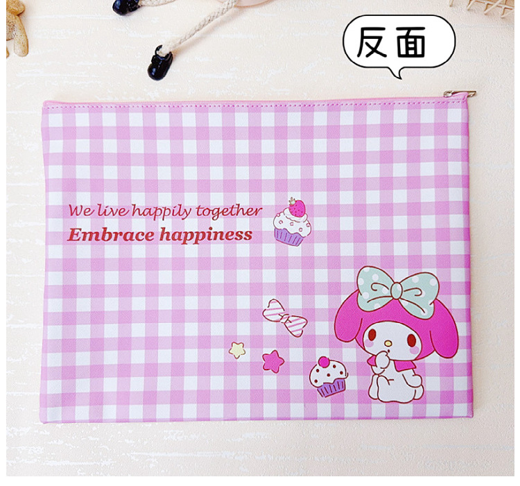 대외 무역 만화 더블 지퍼 격자 무늬 파일 가방 학생 튜토리얼 가방 kulomi 핸드백 PU 가죽 보관 가방