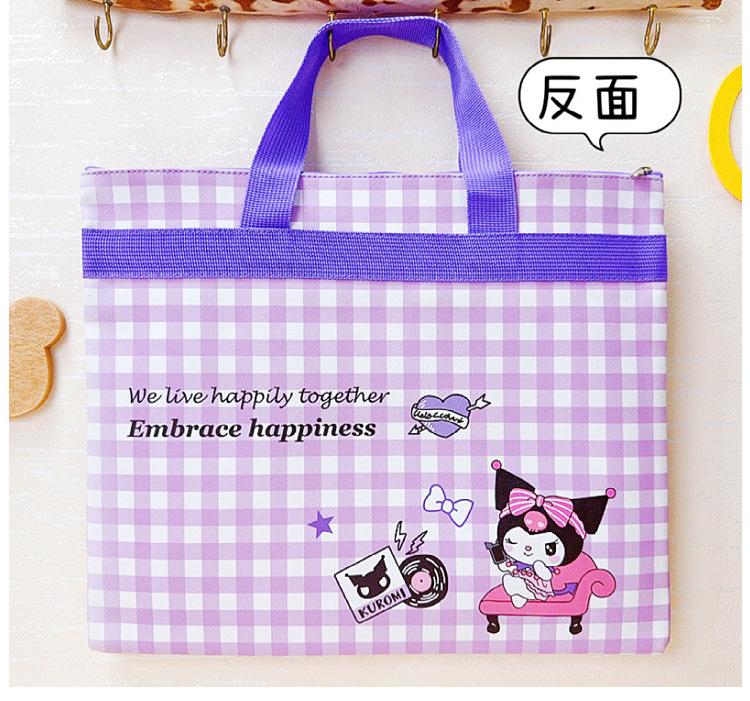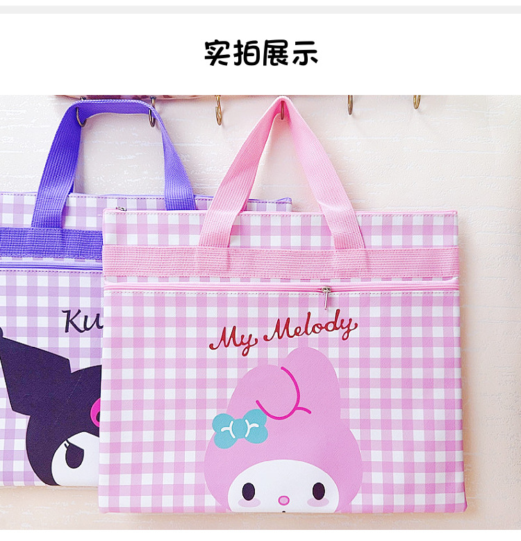 대외 무역 만화 더블 지퍼 격자 무늬 파일 가방 학생 튜토리얼 가방 kulomi 핸드백 PU 가죽 보관 가방스토어 가기
