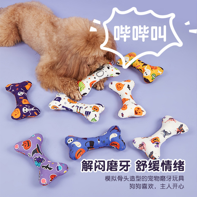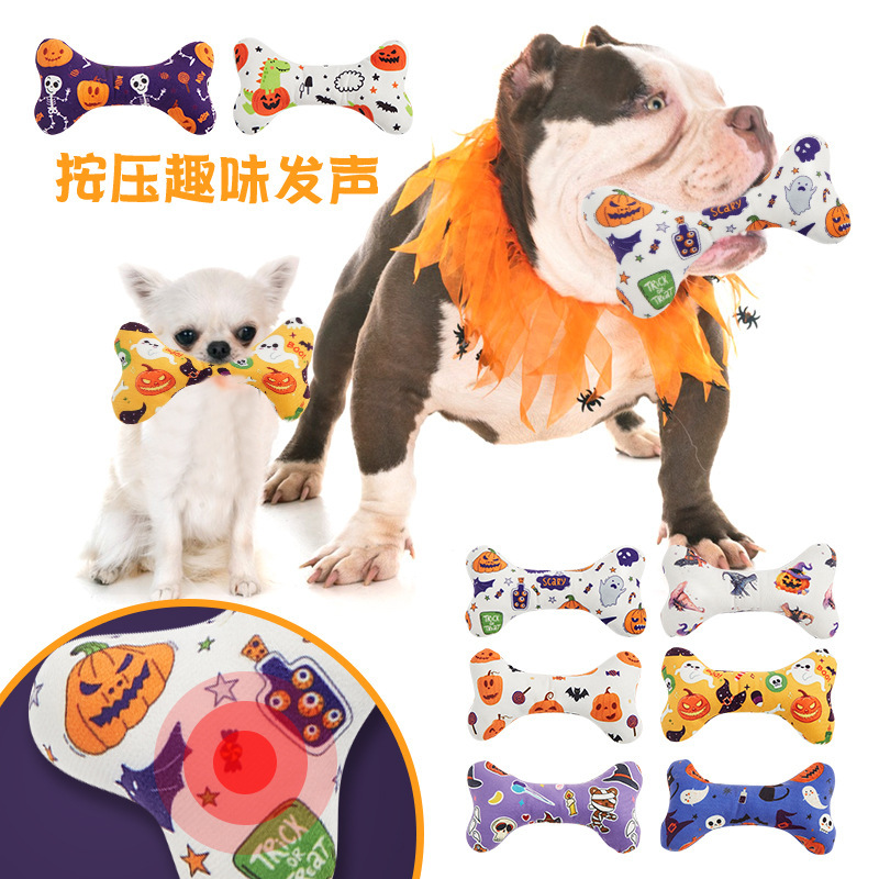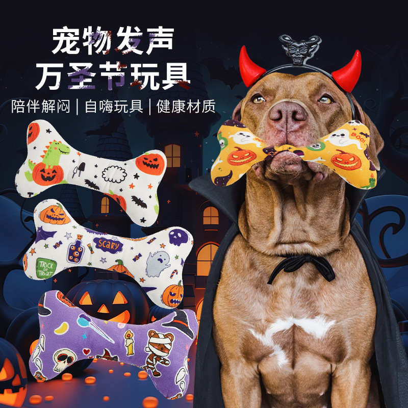 새로운 반동 애완 동물 장난감 생일 파티 개 선물 할로윈 뼈 장난감 소리 봉제 장난감스토어 가기