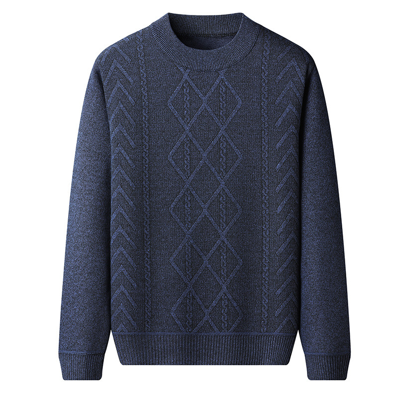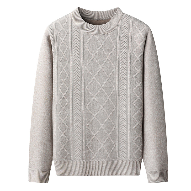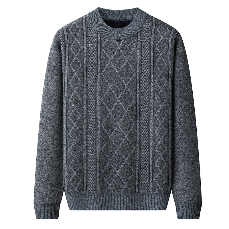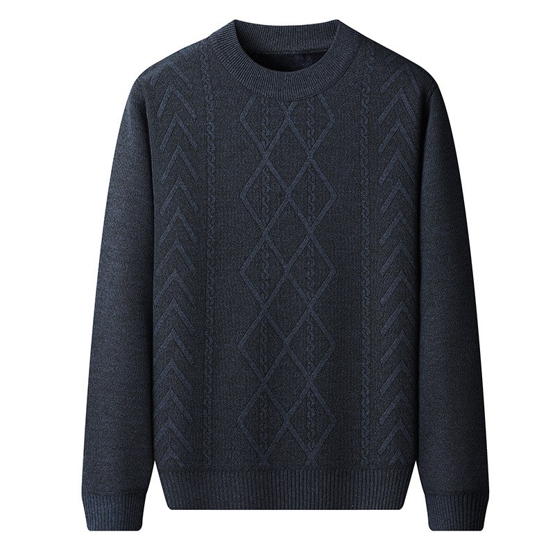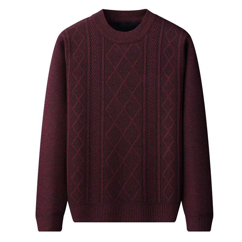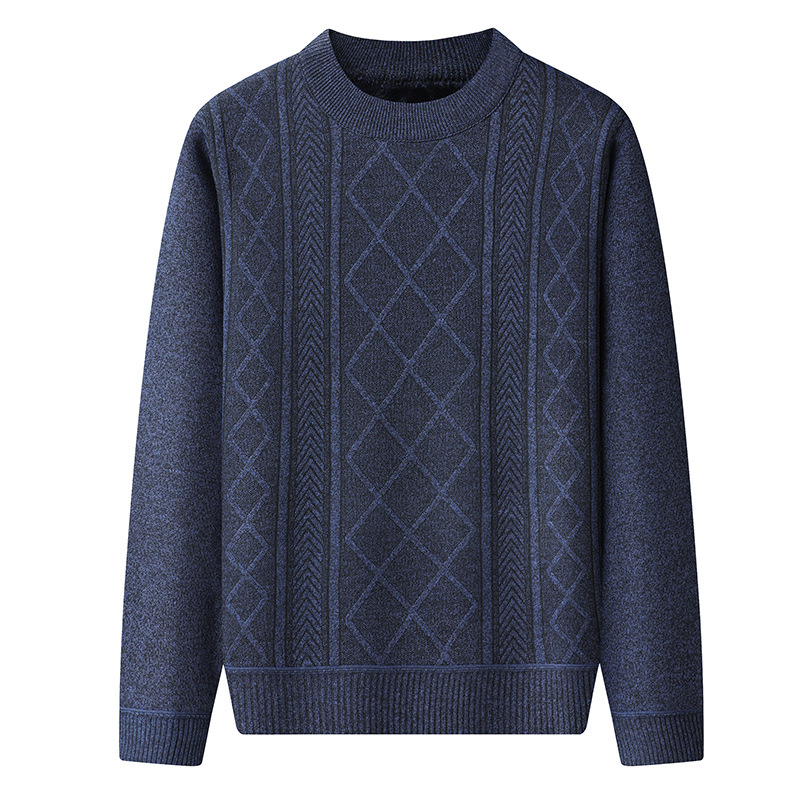 겨울 중년 및 노인 남성 긴팔 라운드 넥 체닐 스웨터 기모 남성용 따뜻한 탑 아빠 스웨터