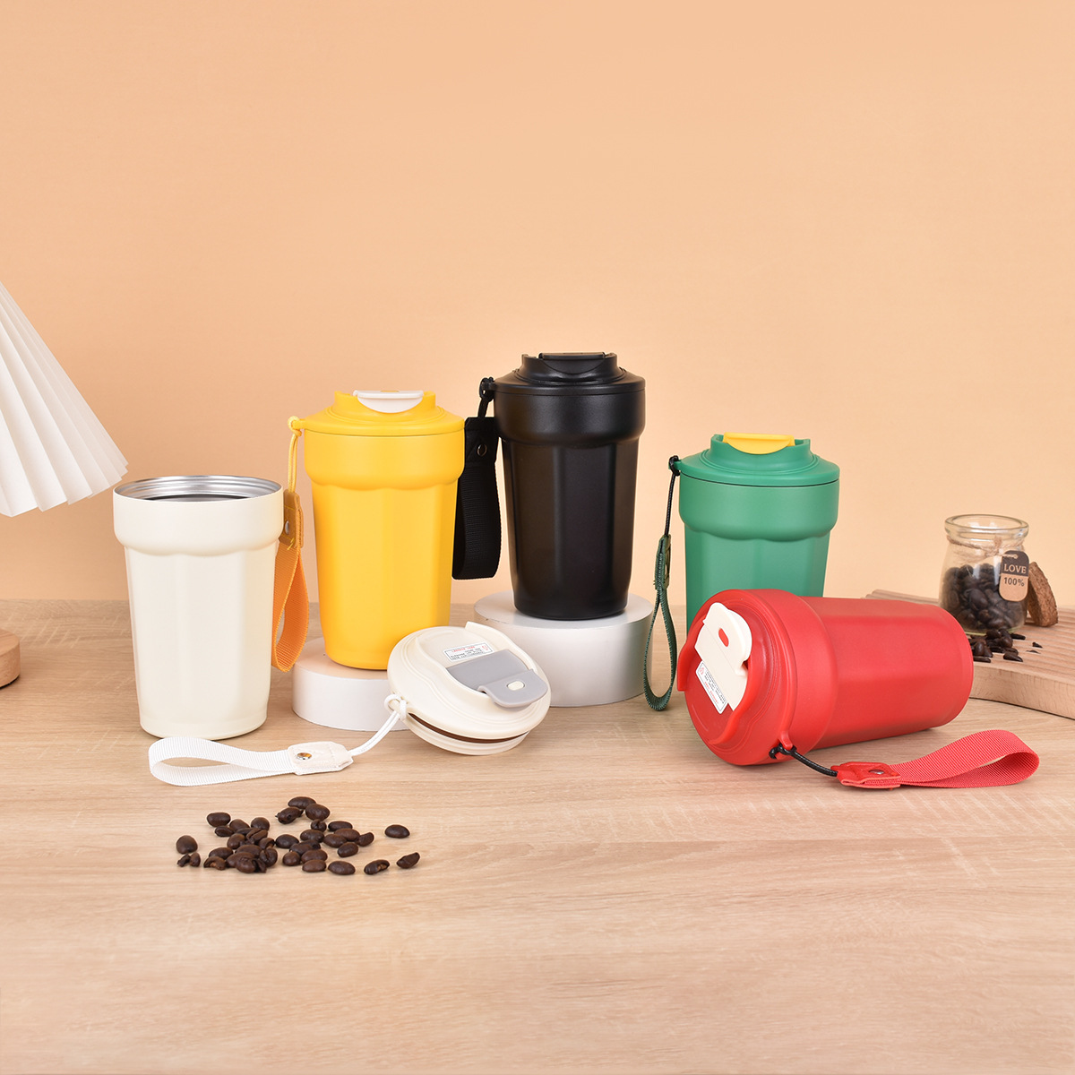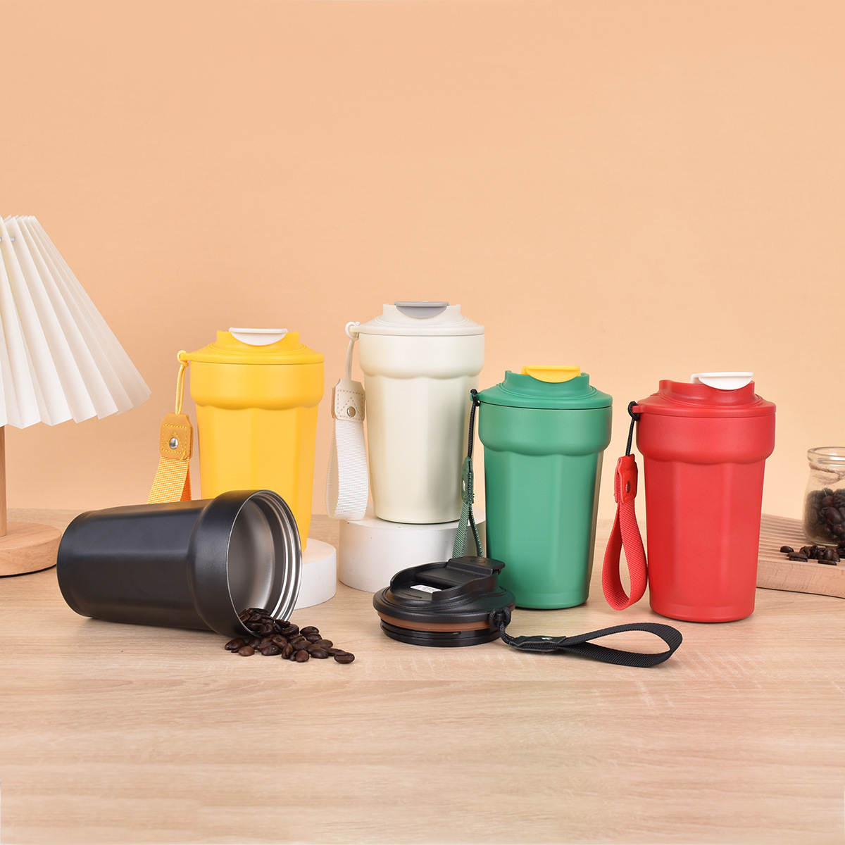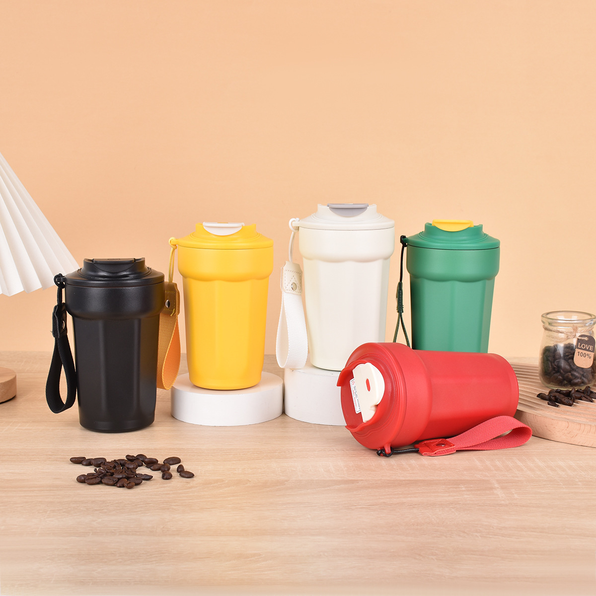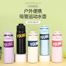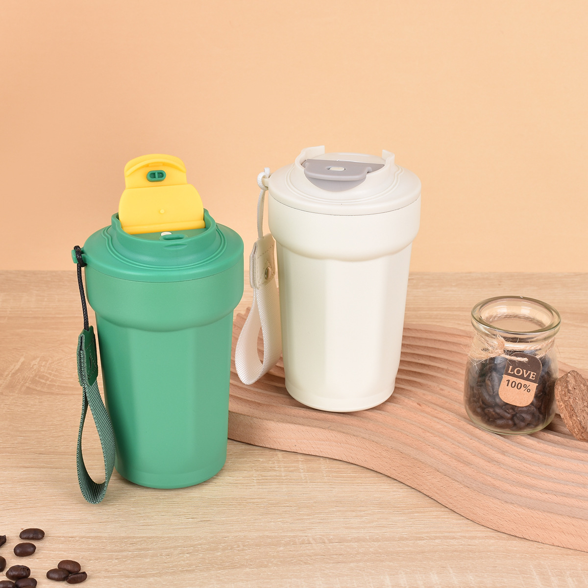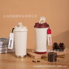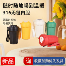 Lanyard Flip 스트레이트 음료 보온병 컵 더블 레이어 진공 핸디캡 컵이 포함 된 새로운 316 스테인레스 스틸 팔각형 커피 컵