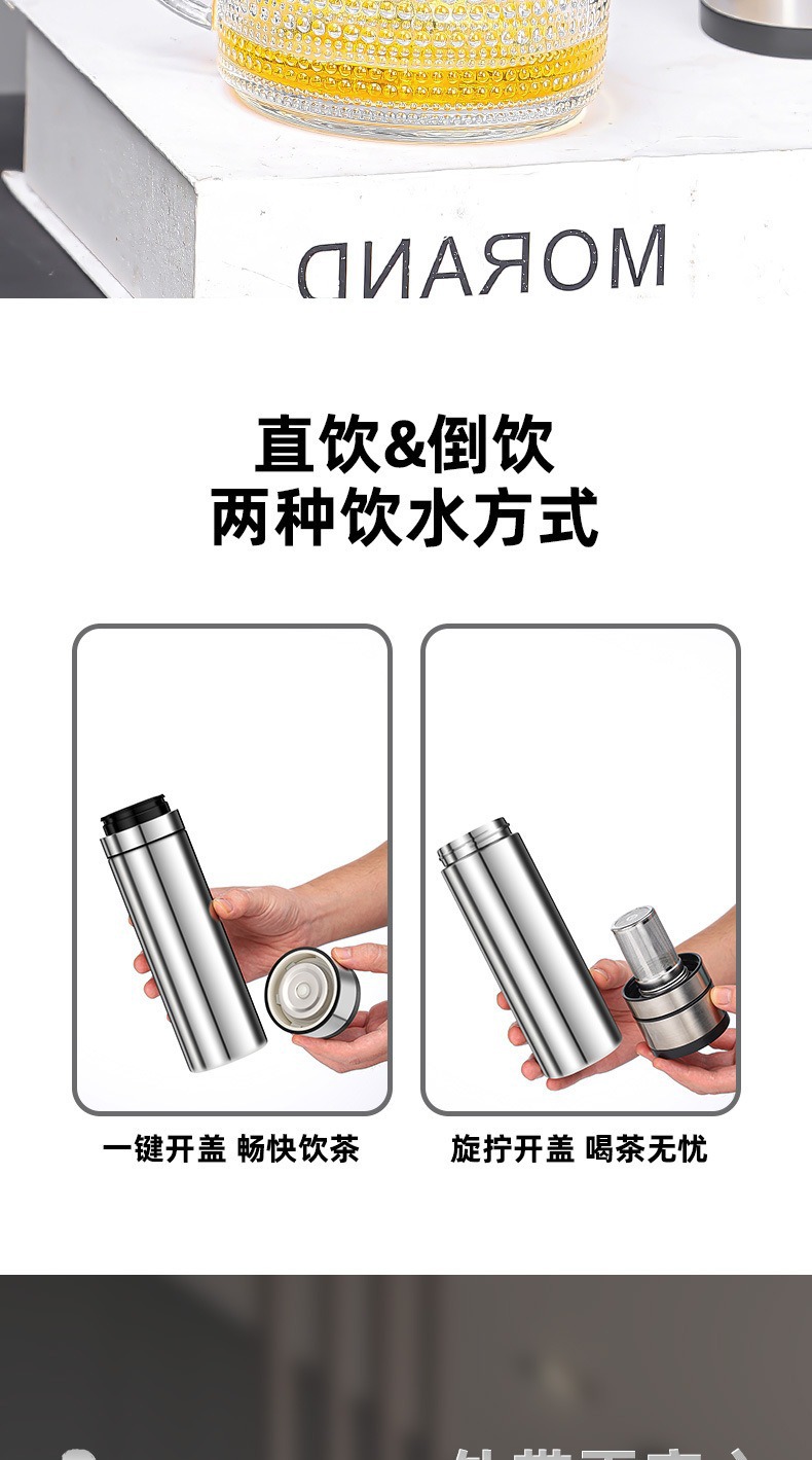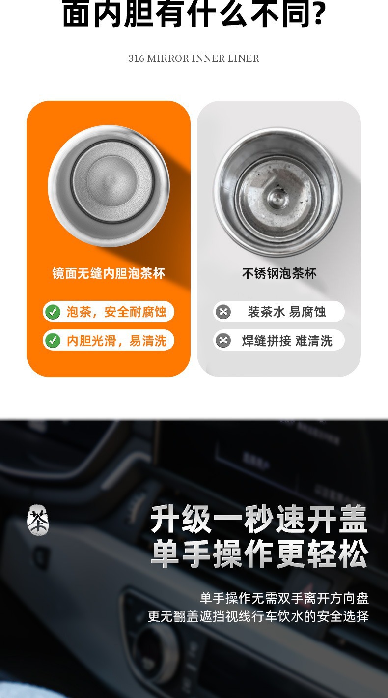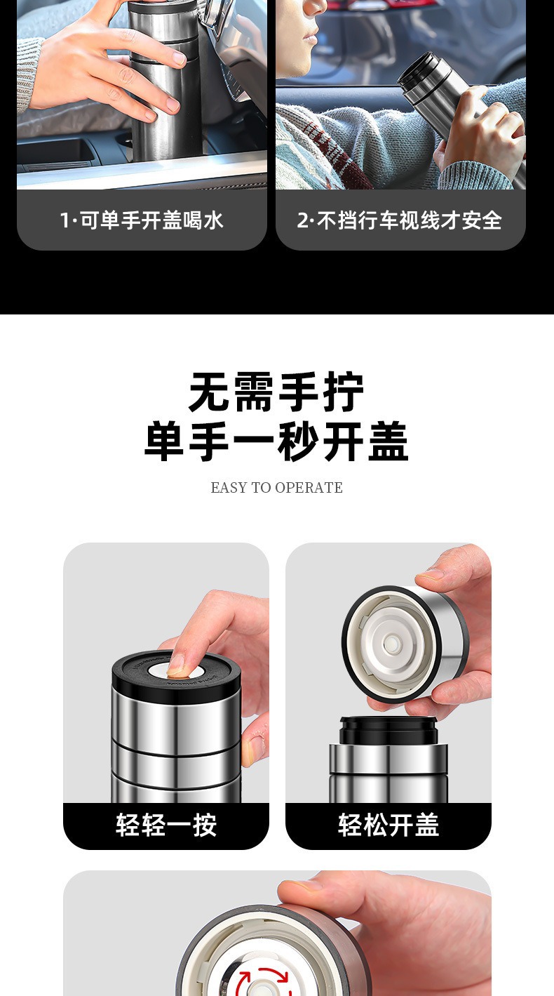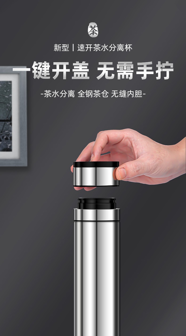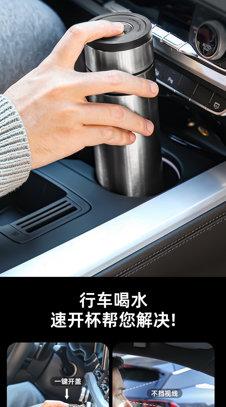 빠른 오픈 보온병 컵 남자 물 컵 스테인레스 스틸 차 물 분리 한 버튼 오픈 커버 컵 새로운 하이 엔드 자동차 티 컵