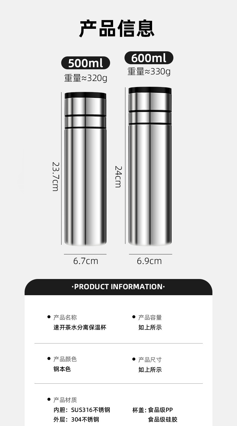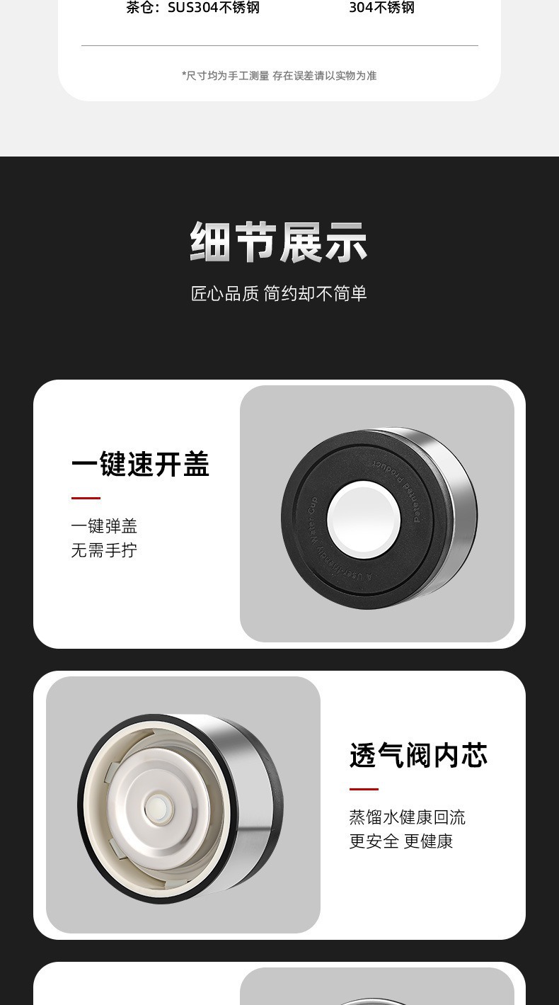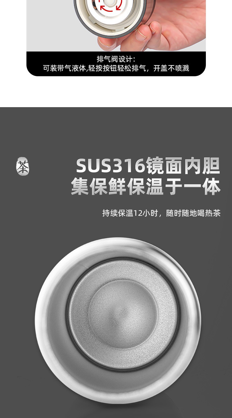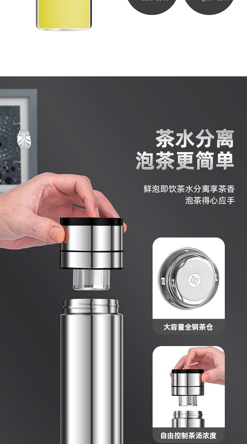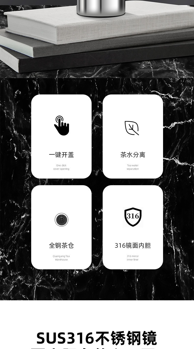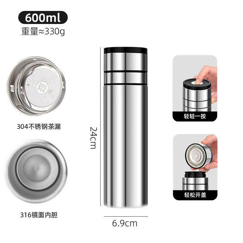 빠른 오픈 보온병 컵 남자 물 컵 스테인레스 스틸 차 물 분리 한 버튼 오픈 커버 컵 새로운 하이 엔드 자동차 티 컵