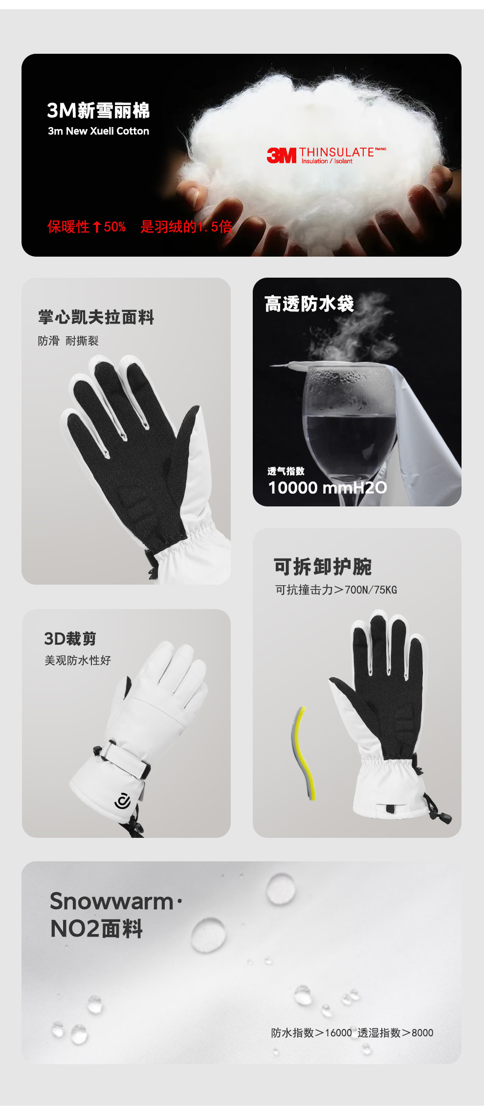 케블라 스키 장갑 겨울 따뜻한 방수 3M 남성 야외 두꺼운 방수 내장 손목 가드 여성 도매스토어 가기