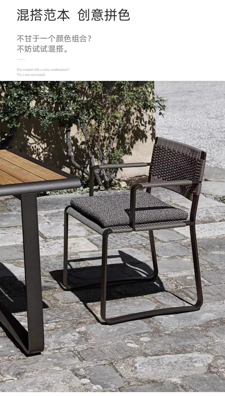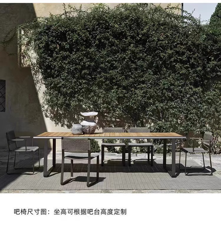 야외 알루미늄 합금 테이블 및 의자 호텔 빌라 안뜰 빛 고급 레스토랑 등나무 의자 홈스테이 정원 긴 테이블 가구 도매스토어 가기