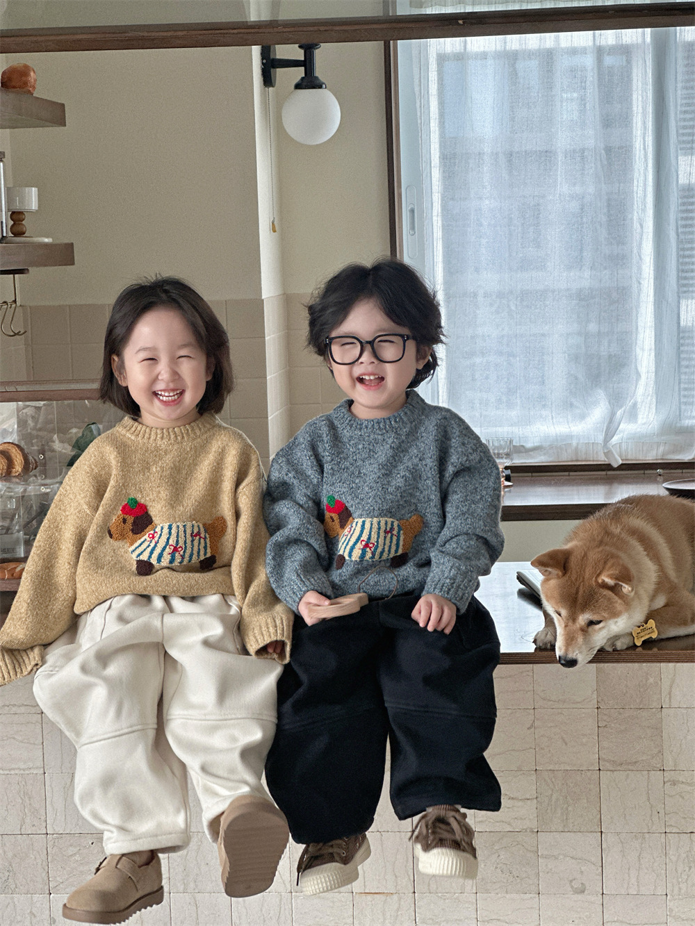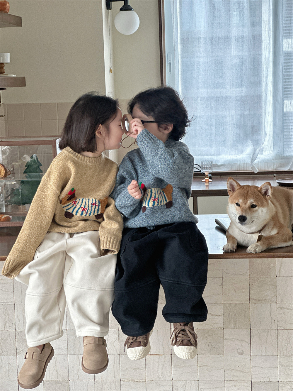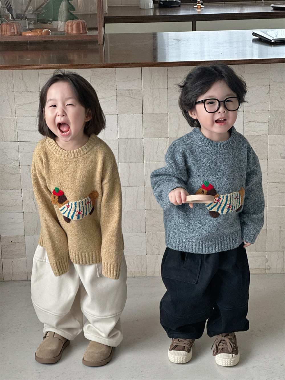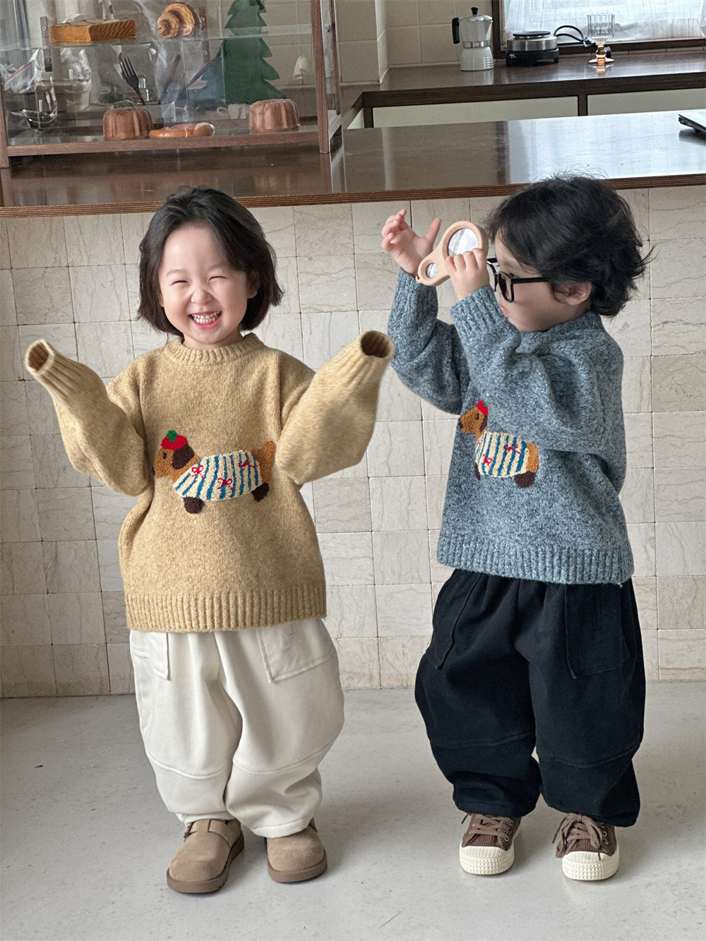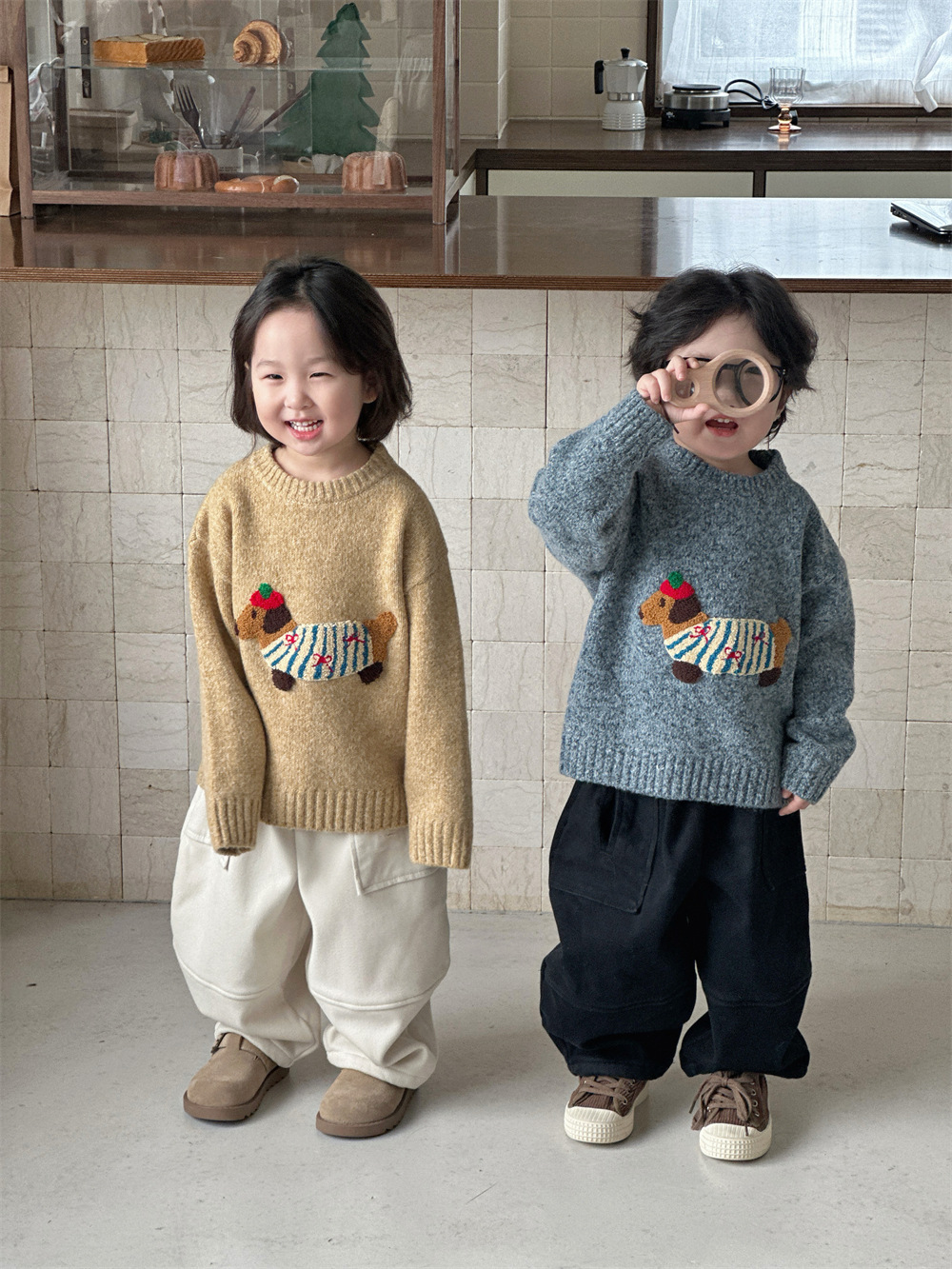 남자들의 한국식 만화 3 차원 자수 소프트 왁스 루즈 니트 탑 베이비 걸스 서양식 올 매치 소프트 스웨터