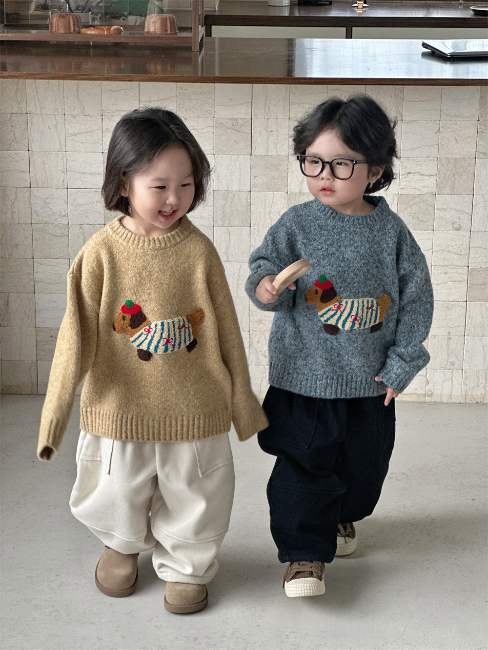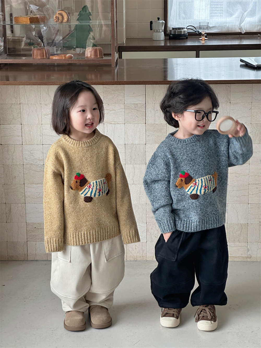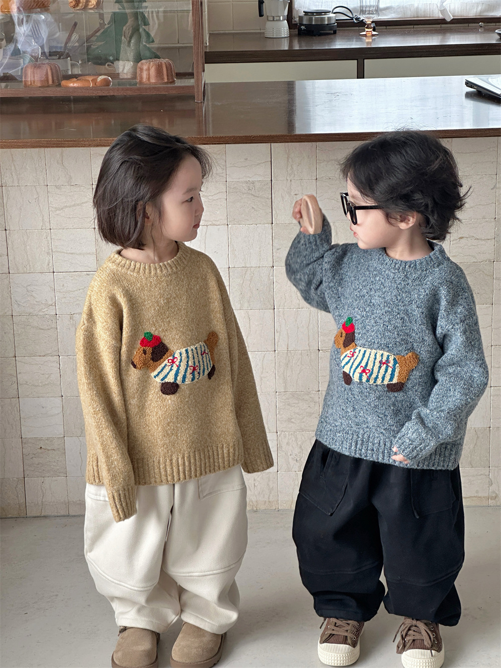 남자들의 한국식 만화 3 차원 자수 소프트 왁스 루즈 니트 탑 베이비 걸스 서양식 올 매치 소프트 스웨터스토어 가기