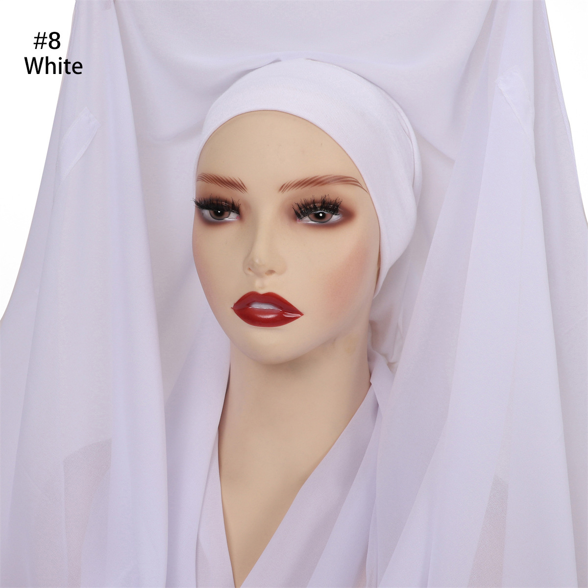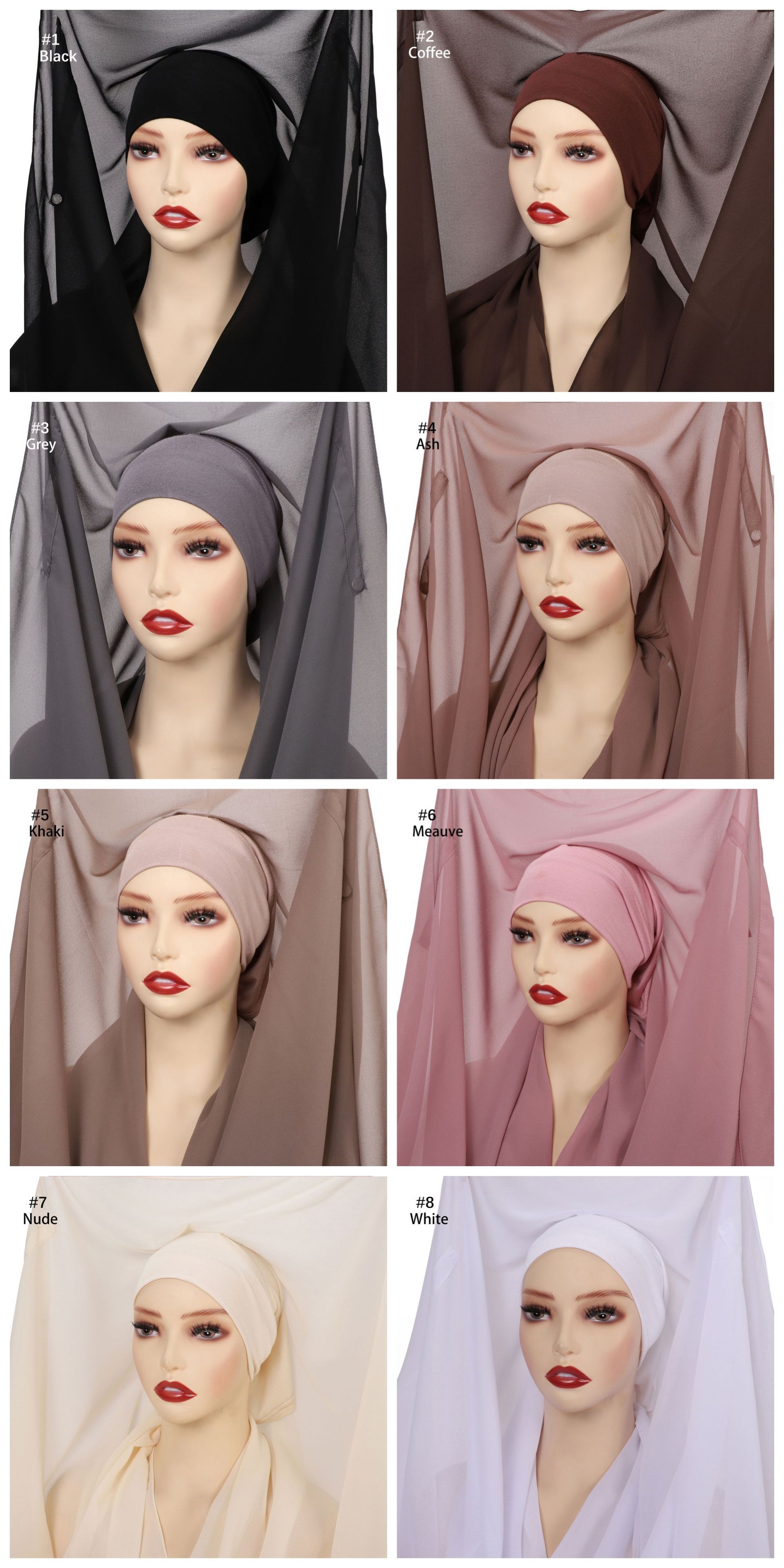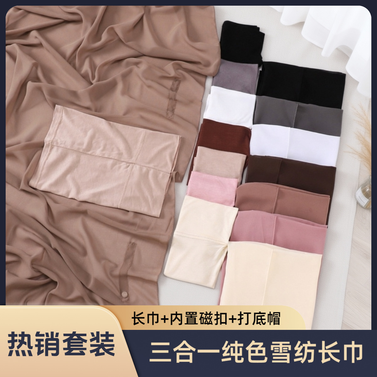 注:打底帽是莫代尔材质,长巾是雪纺材质,2款材质不同,搭配起来也稍有色差的,围巾打底帽磁扣是一体的,不可拆卸。介意请勿拍。