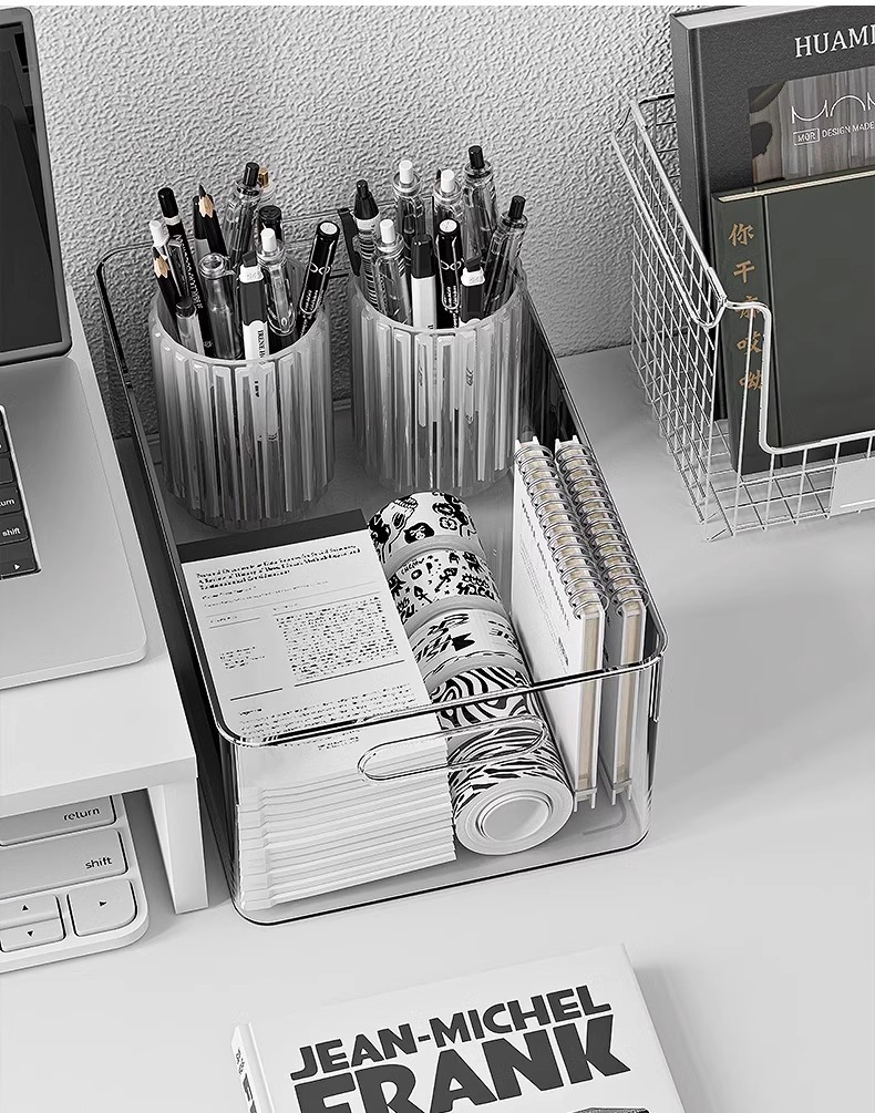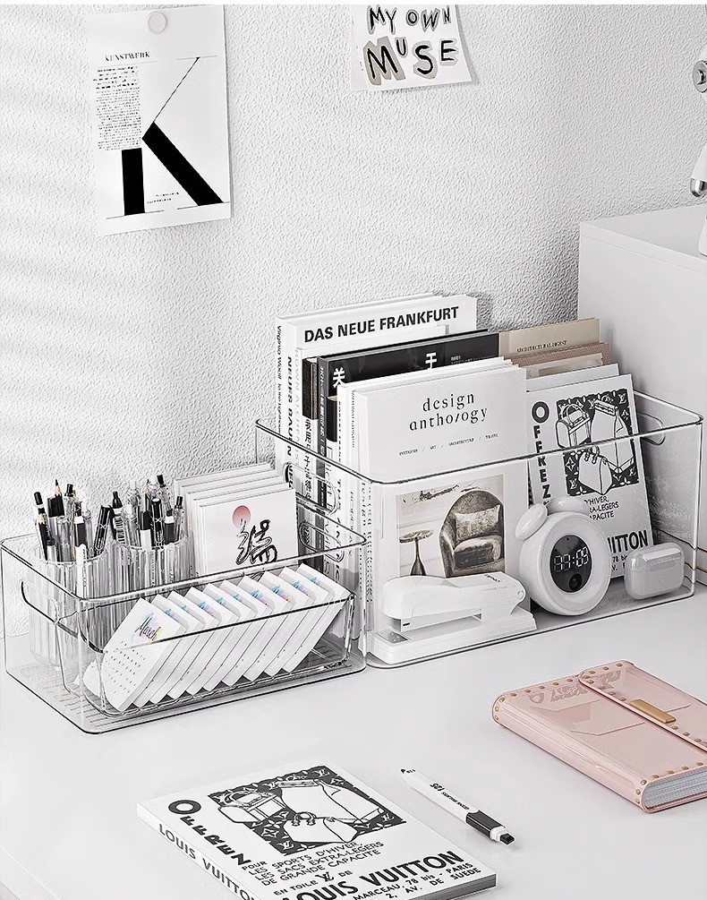 데스크 화장품 액세서리 편리한 플라스틱 방진 상자를 위한 뚜껑이 있는 아크릴 저장 상자 데스크탑 투명한 저장 선반스토어 가기