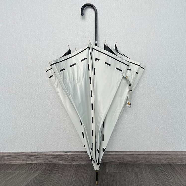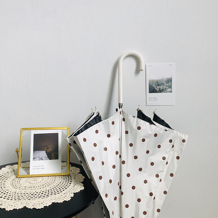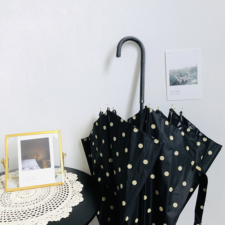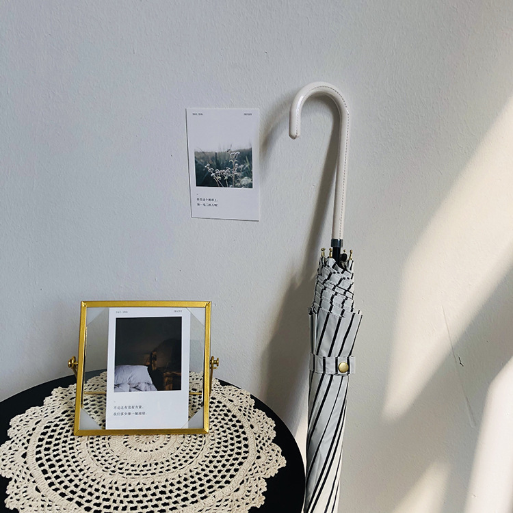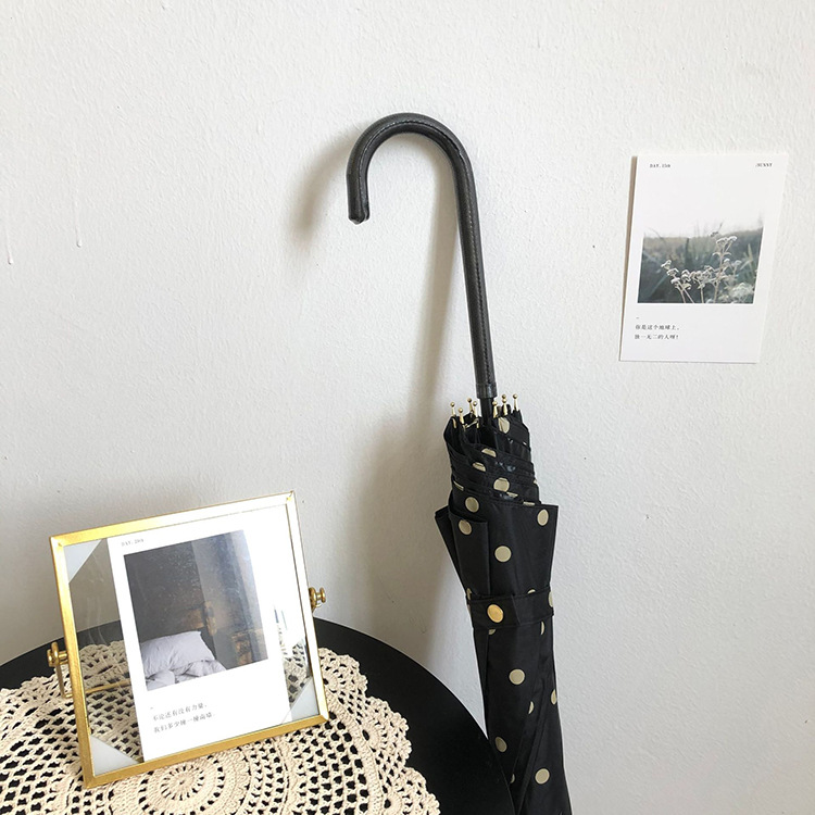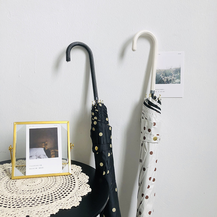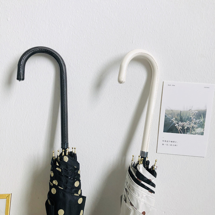 일본 Ins 블랙 롱 핸들 차양 크리 에이 티브 가죽 곡선 핸들 스트레이트 우산 섬유 선 스크린 및 비 우산
