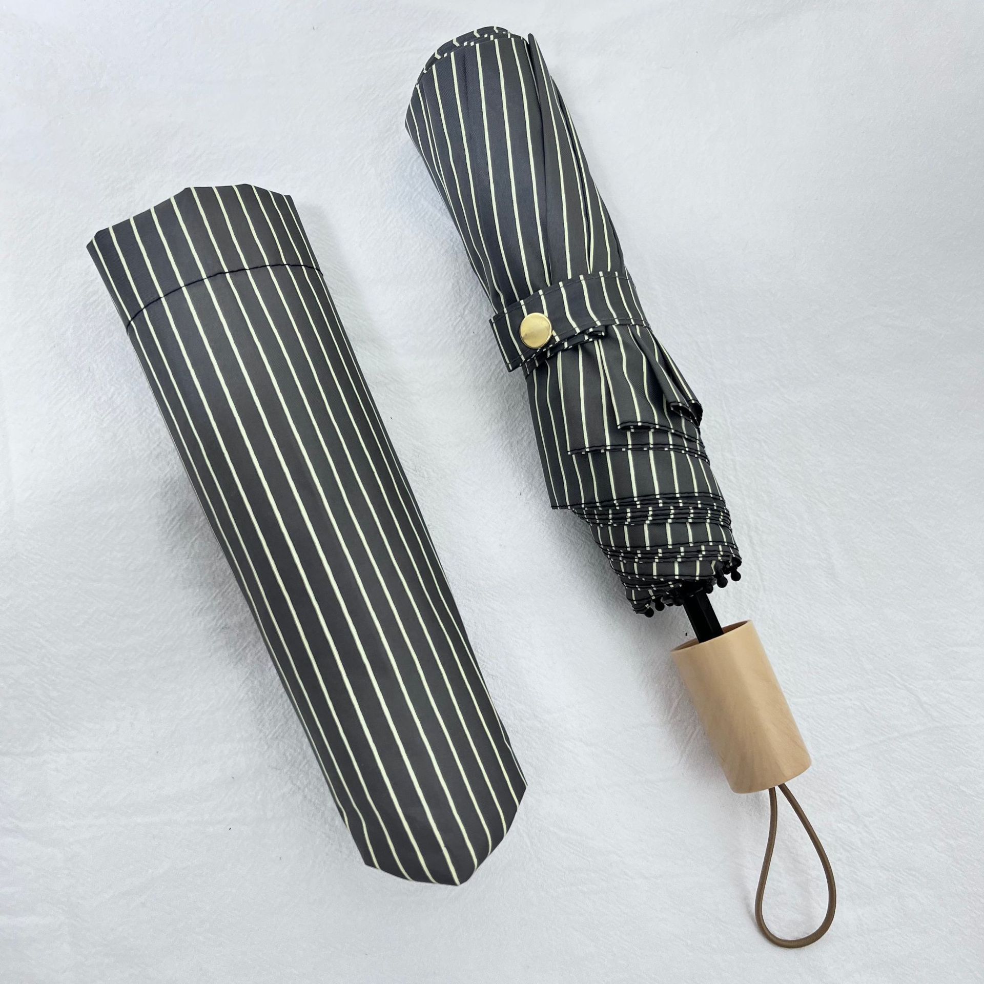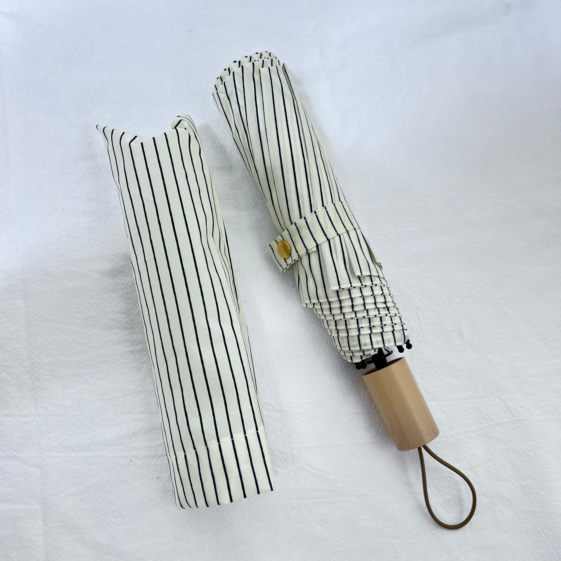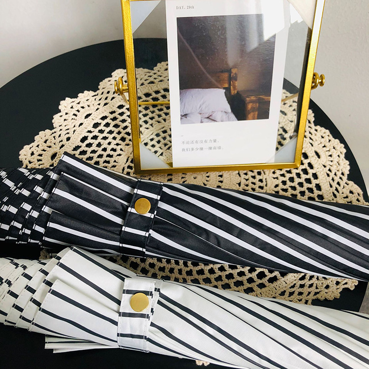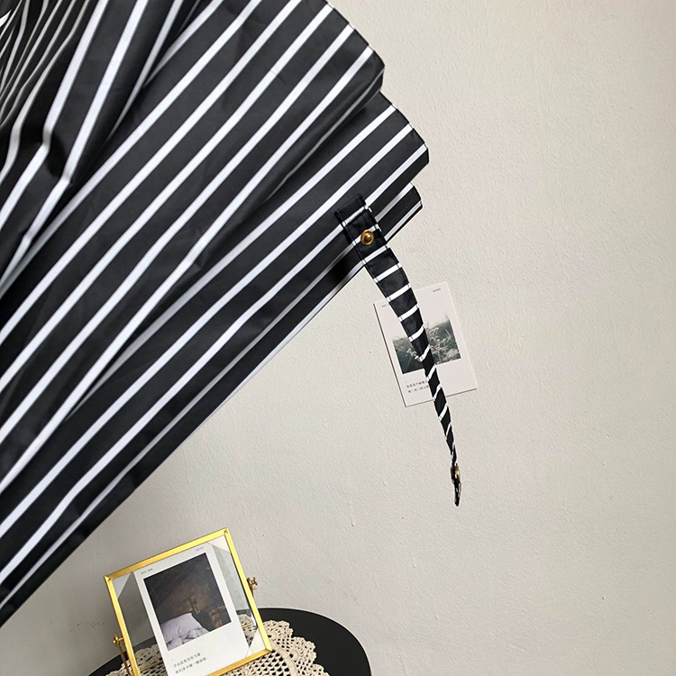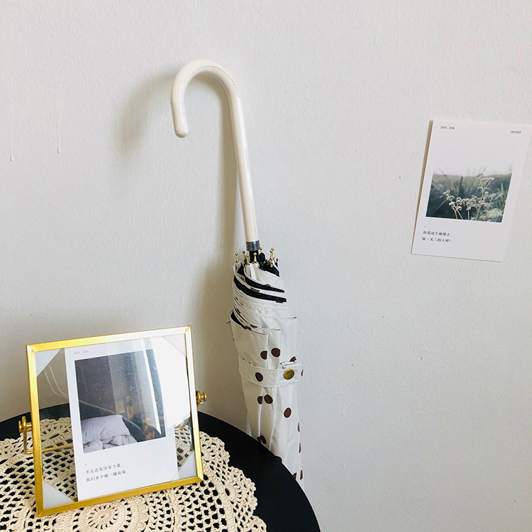 일본 Ins 블랙 롱 핸들 차양 크리 에이 티브 가죽 곡선 핸들 스트레이트 우산 섬유 선 스크린 및 비 우산