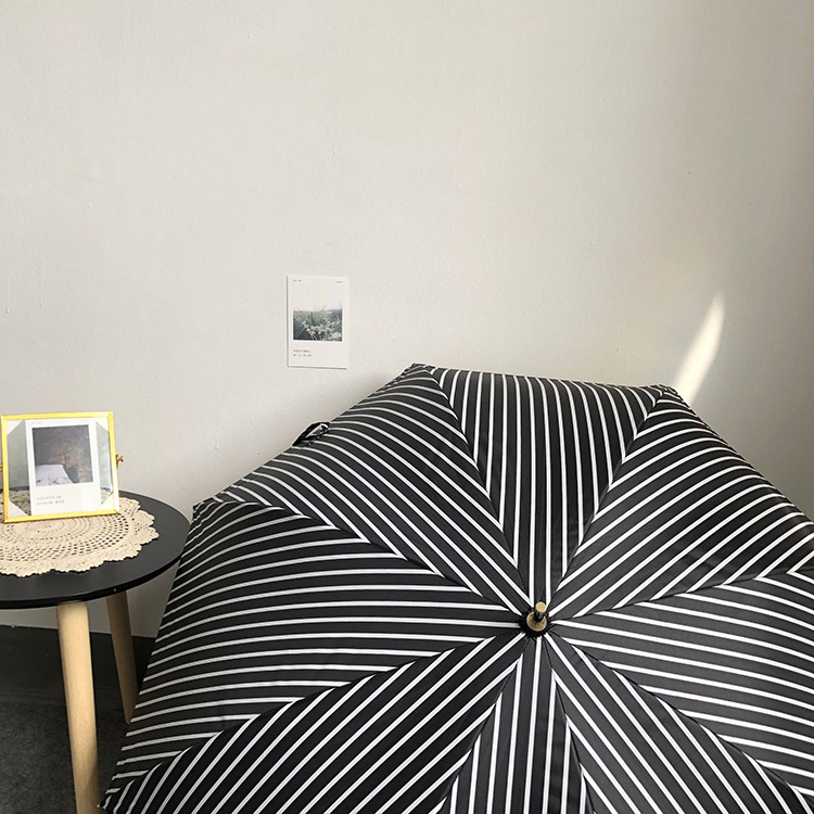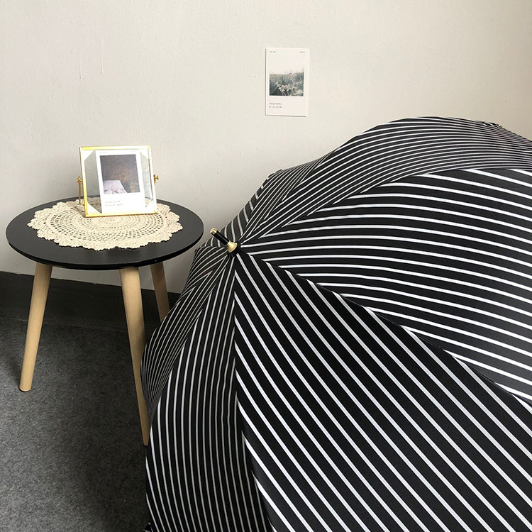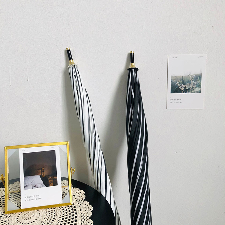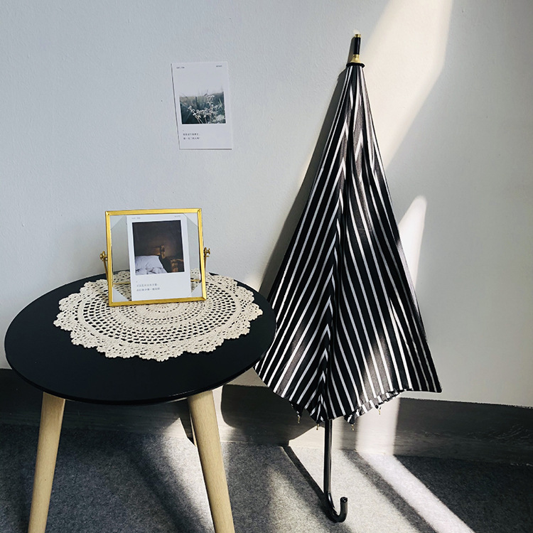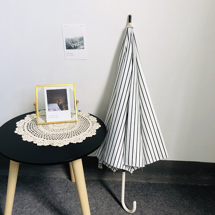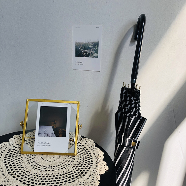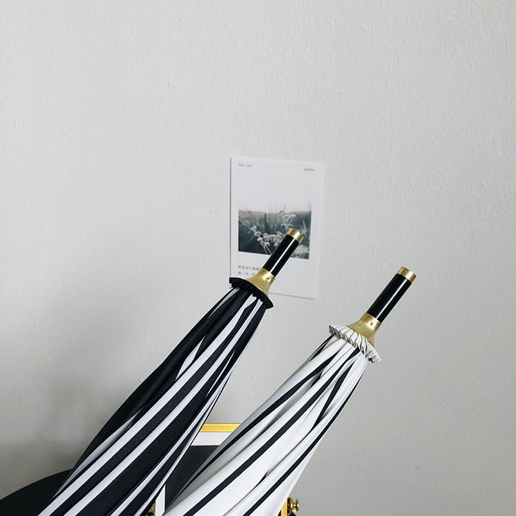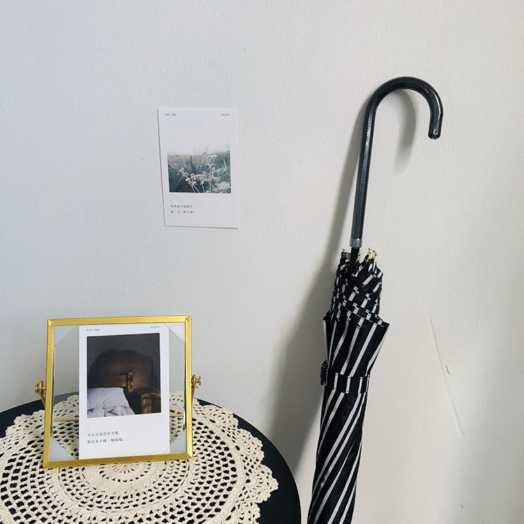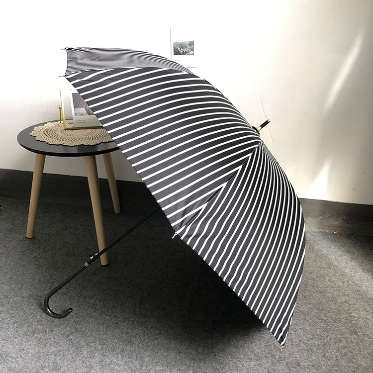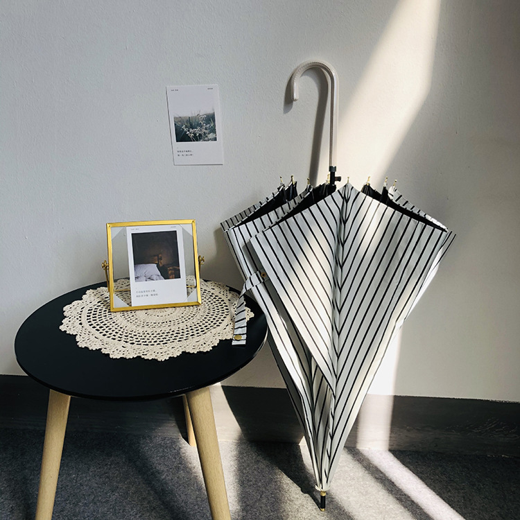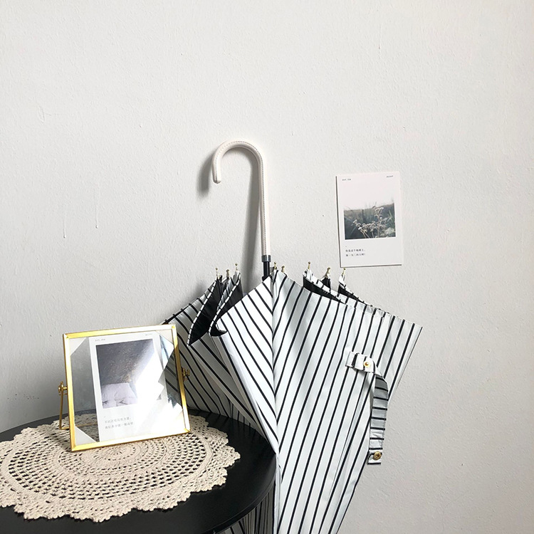 일본 Ins 블랙 롱 핸들 차양 크리 에이 티브 가죽 곡선 핸들 스트레이트 우산 섬유 선 스크린 및 비 우산스토어 가기