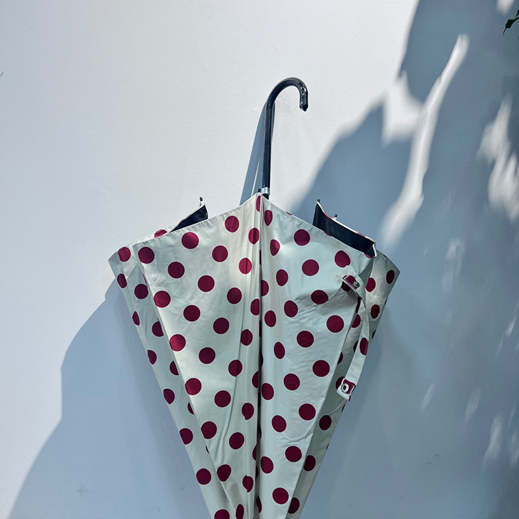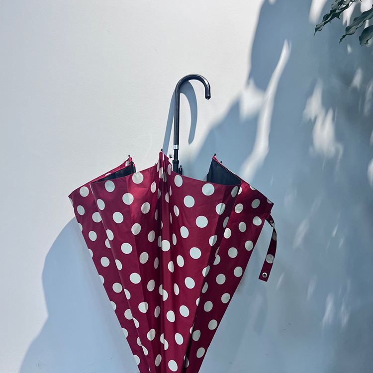 • 빨간색 배경에 흰색 점이 있는 가죽 곡선 핸들 직선 막대