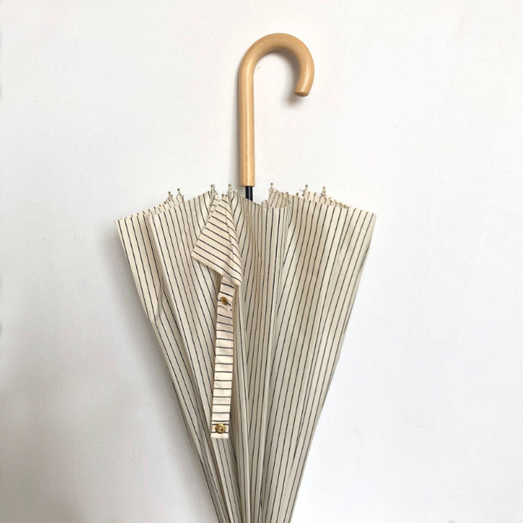 • 베이지색 직선 줄무늬 나무 곡선 핸들 직선 막대