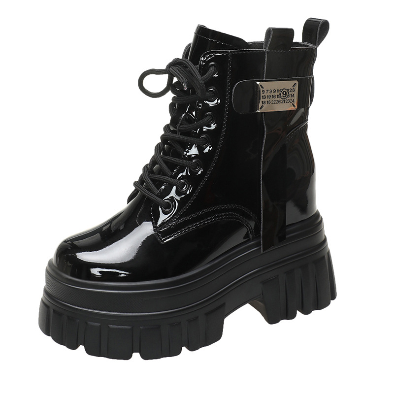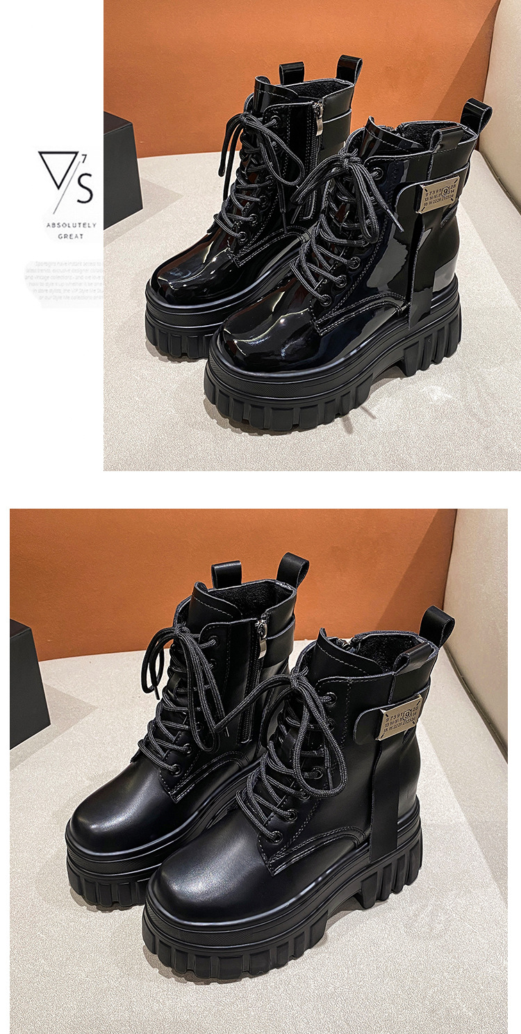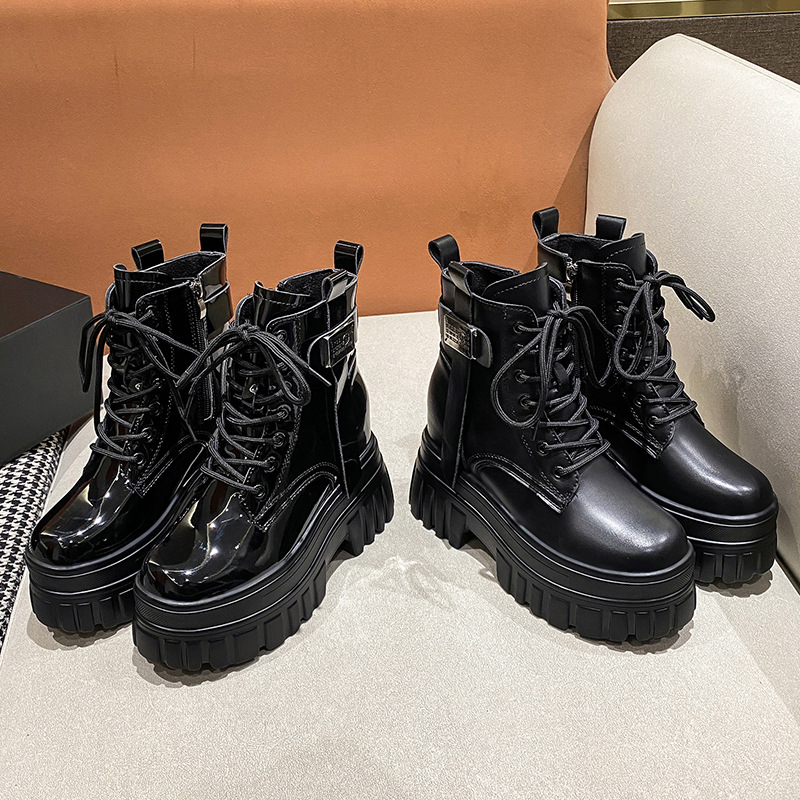 내부 높이 증가 마틴 부츠 유행 여성 2024 가을 및 겨울 새 측면 지퍼 작은 두꺼운 바닥 높이 증가 모든 경기 슬리밍 발목 부츠