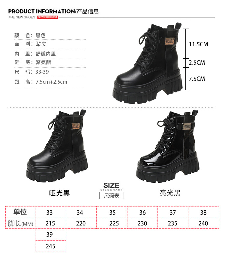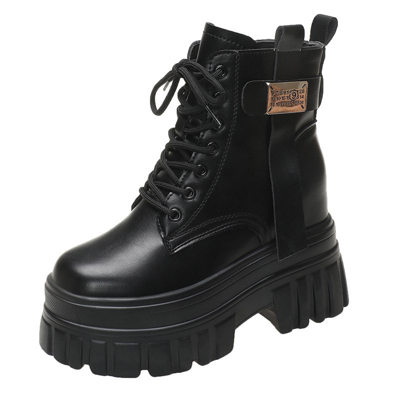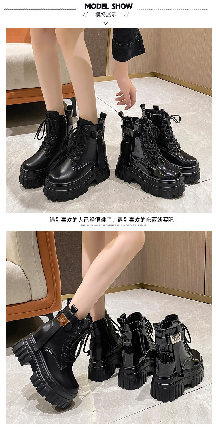 내부 높이 증가 마틴 부츠 유행 여성 2024 가을 및 겨울 새 측면 지퍼 작은 두꺼운 바닥 높이 증가 모든 경기 슬리밍 발목 부츠스토어 가기
