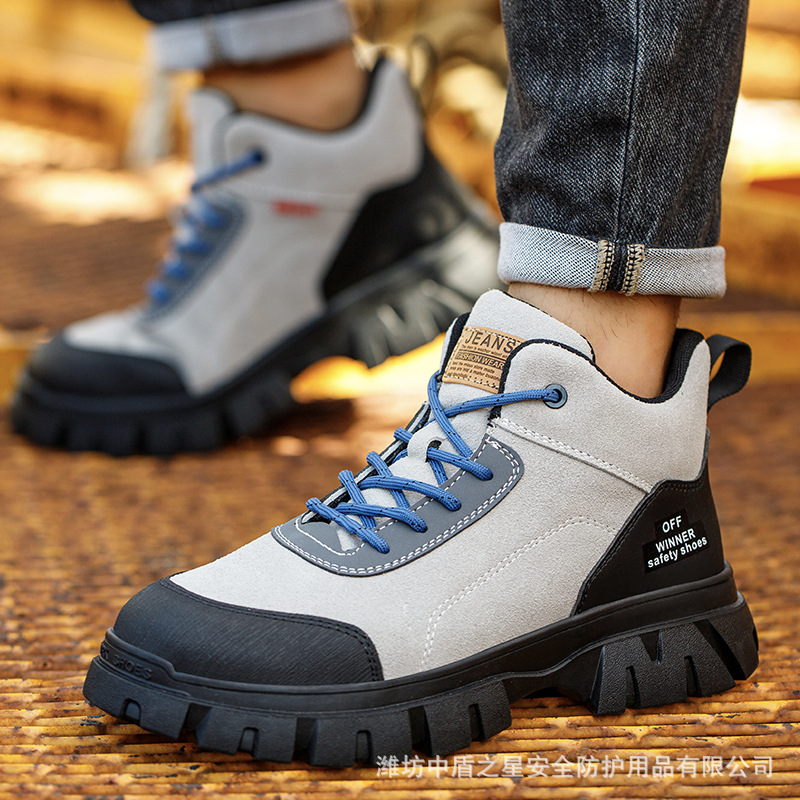 안티 벨벳 가죽 용접 안티 스케일링 신발 플라스틱 스틸 발가락 안전 방지 스매시 신발 절연 신발 펑크 방지 경량 노동 보호 신발 작업 신발스토어 가기