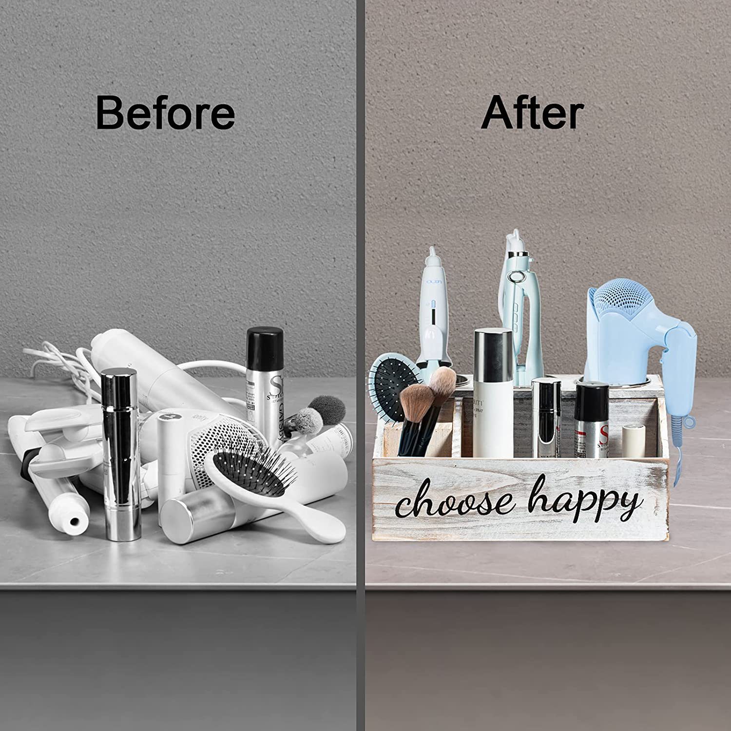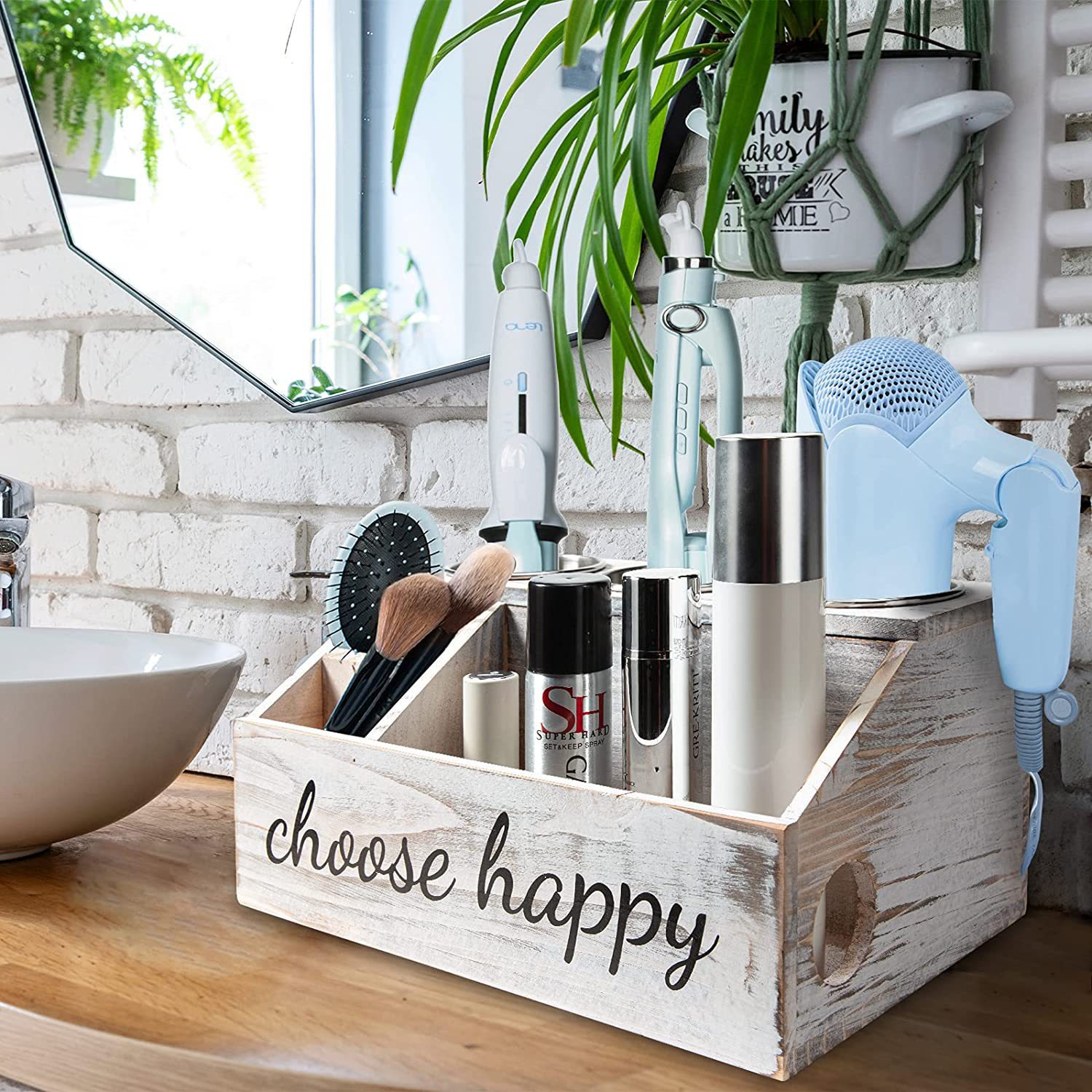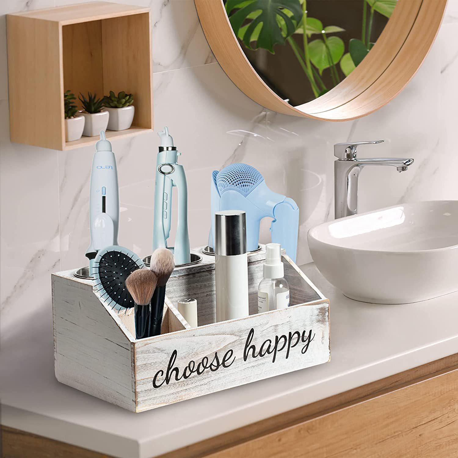 욕실 헤어 드라이어 랙 나무 데스크탑 스토리지 박스 솔리드 우드 화장실 헤어 세트 화장품 배열 랙