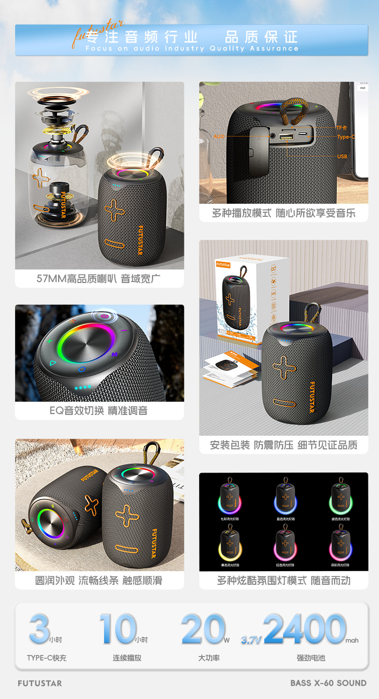 2026년 신형 20W 블루투스 스피커 휴대용 방수 중저음 서브우퍼 고출력 무선 블루투스 스피커 도매