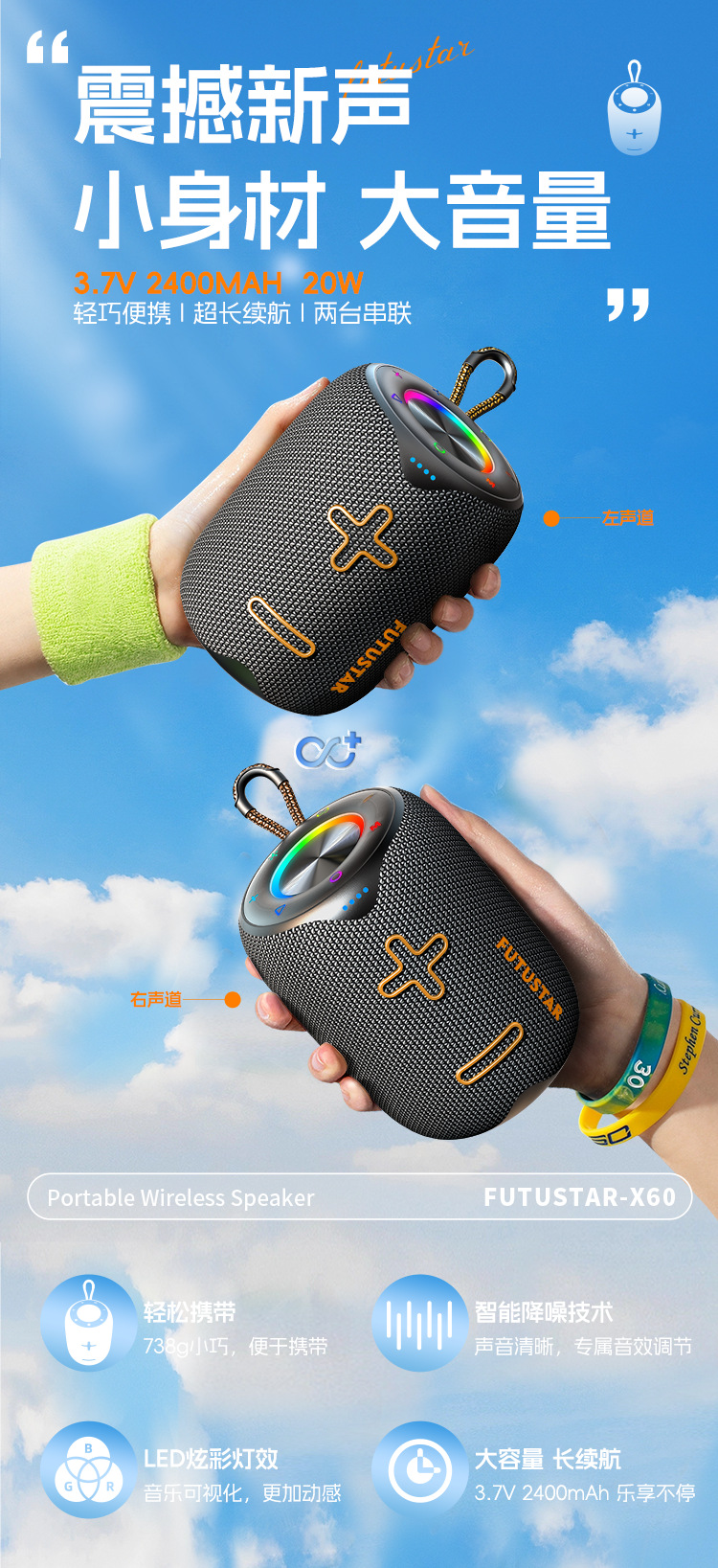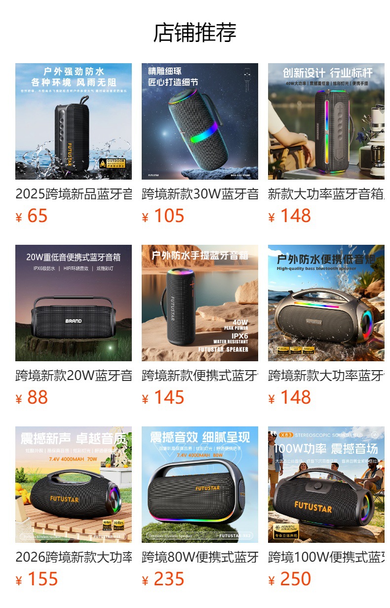 2026년 신형 20W 블루투스 스피커 휴대용 방수 중저음 서브우퍼 고출력 무선 블루투스 스피커 도매스토어 가기