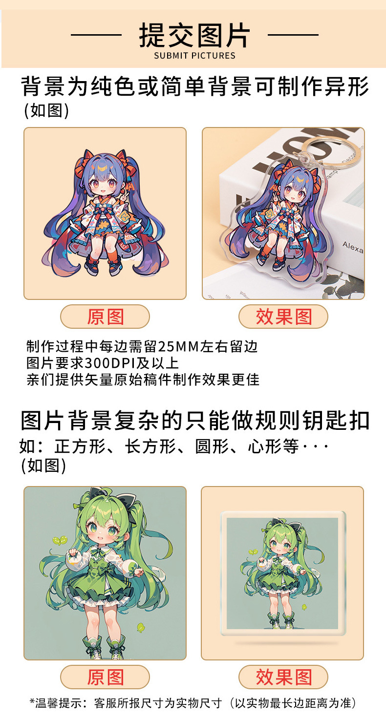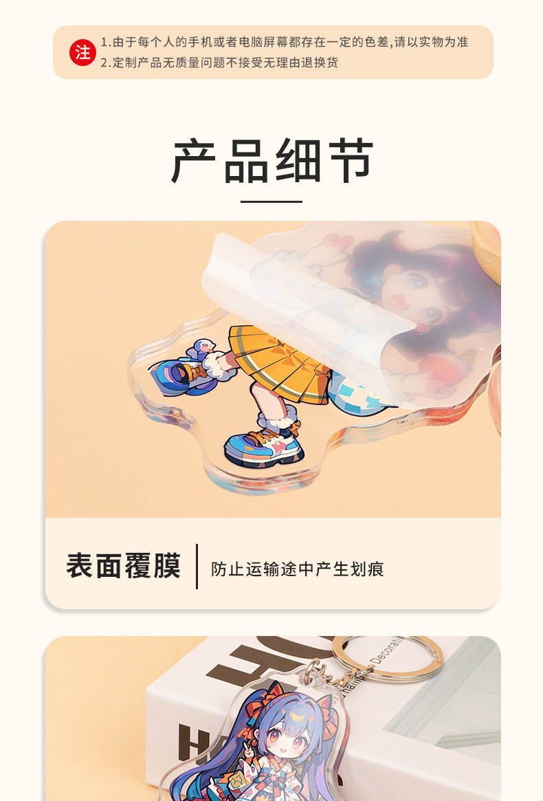 아크릴 사용자 지정 키 체인 Diy 작은 보석 펜던트 애니메이션 2 차 만화 주변 귀여운 창조적 인 투명스토어 가기