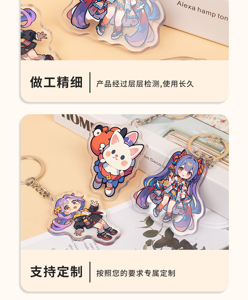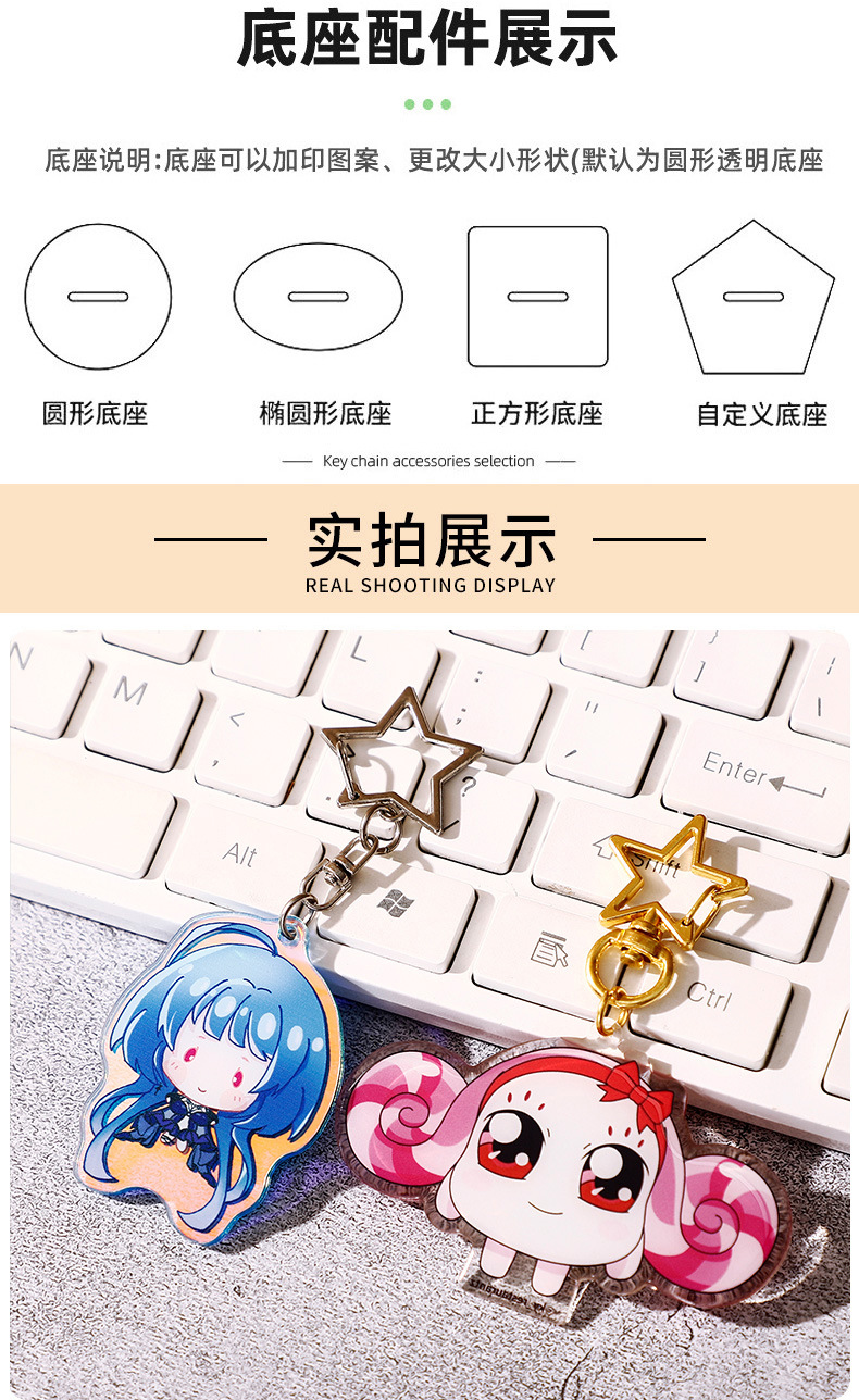 아크릴 사용자 지정 키 체인 Diy 작은 보석 펜던트 애니메이션 2 차 만화 주변 귀여운 창조적 인 투명