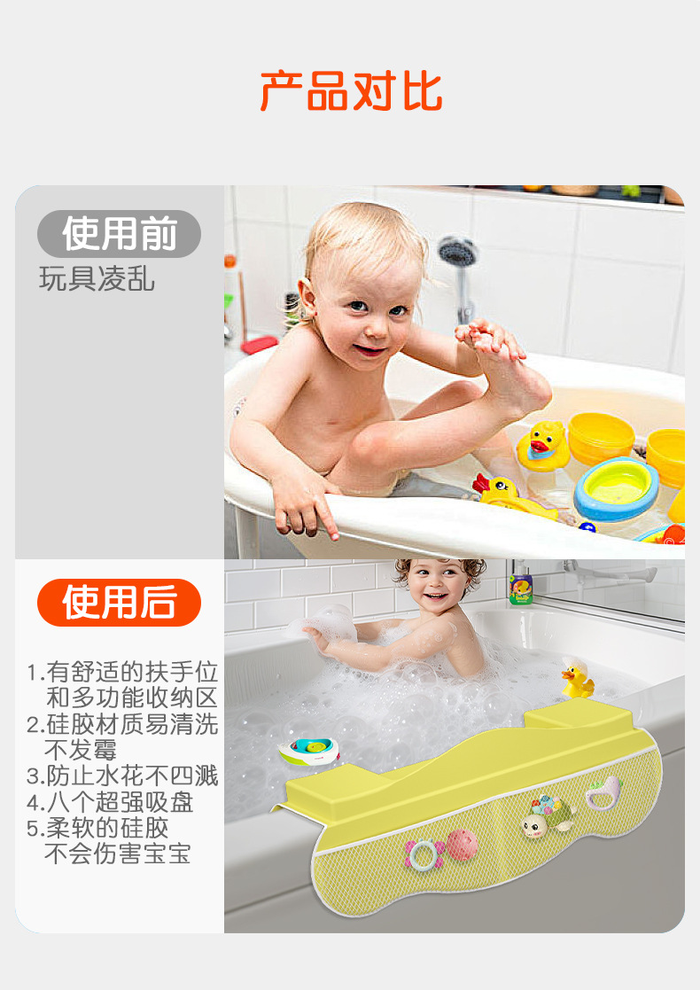 국경 간 어린이 욕실 장난감 보관 랙 흡입 컵 욕조 스플래쉬 커버 욕실 액세서리가있는 욕조 보관 랙