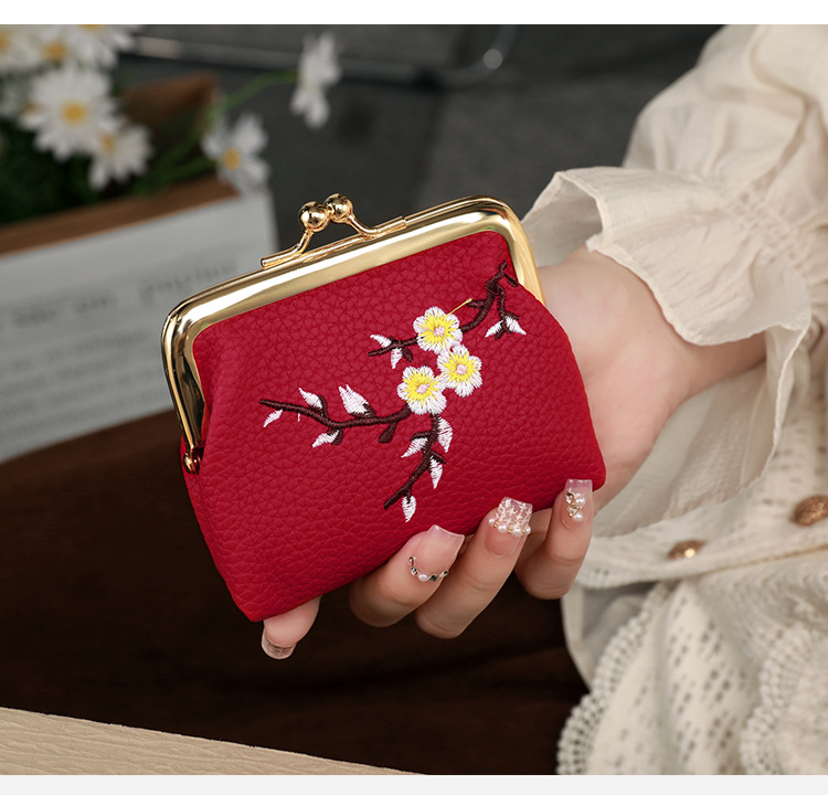 새로운 빨간 봉투 휴대용 미니 작은 지갑 여성용 손 가방 자수 다기능 학생 동전 지갑 도매스토어 가기