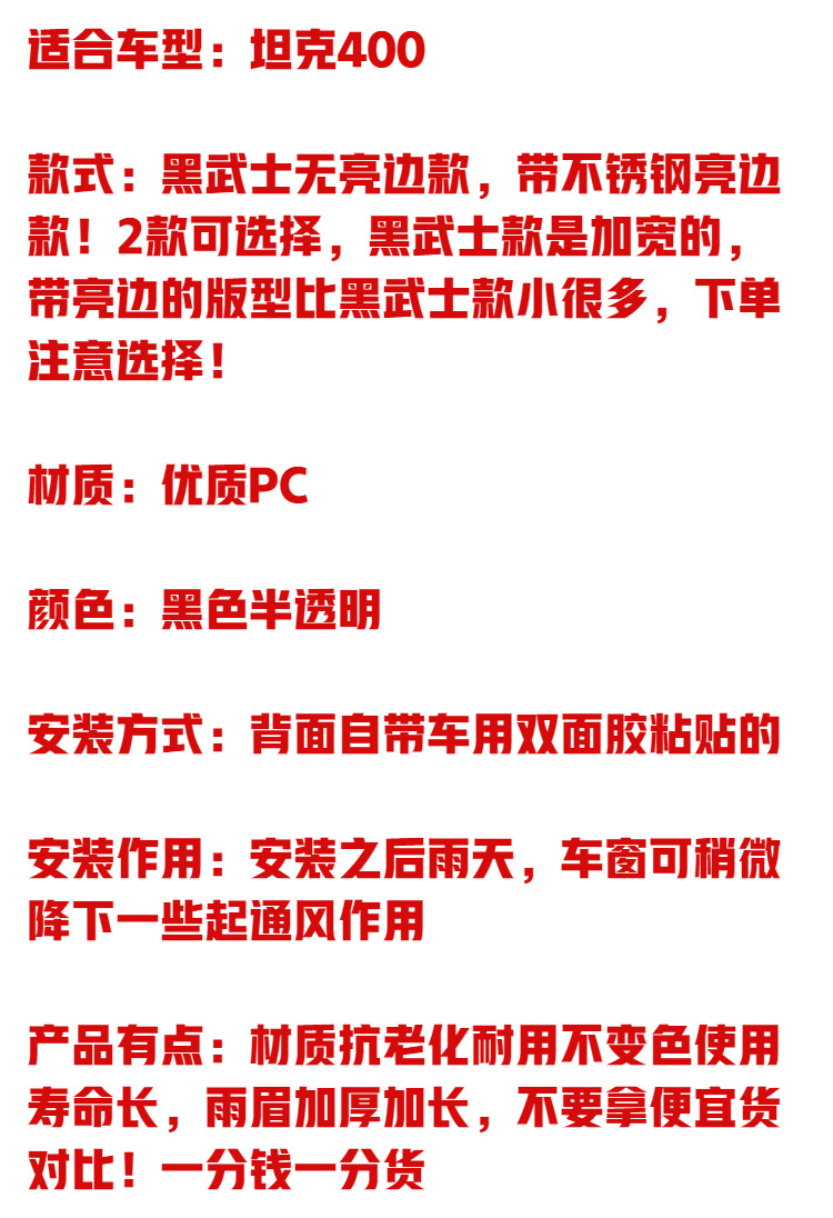 23-24 탱크 400Hi4-T 창 블랙 사무라이 비 눈썹 문과 창문 비 비 비 방패 수정 업그레이드에 적합스토어 가기