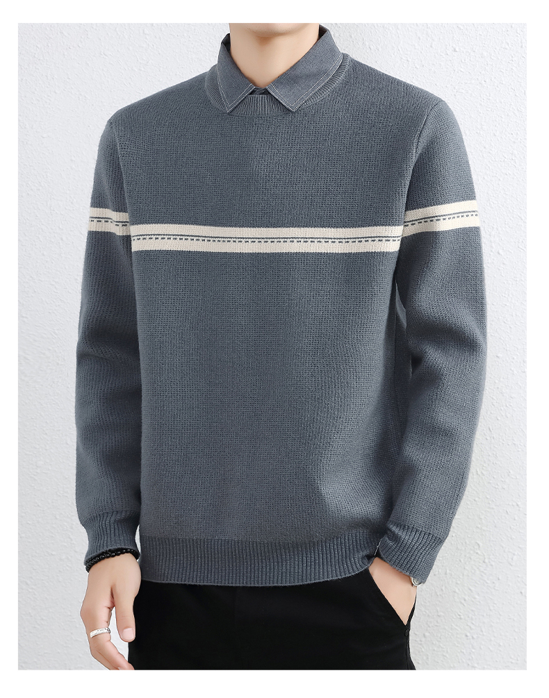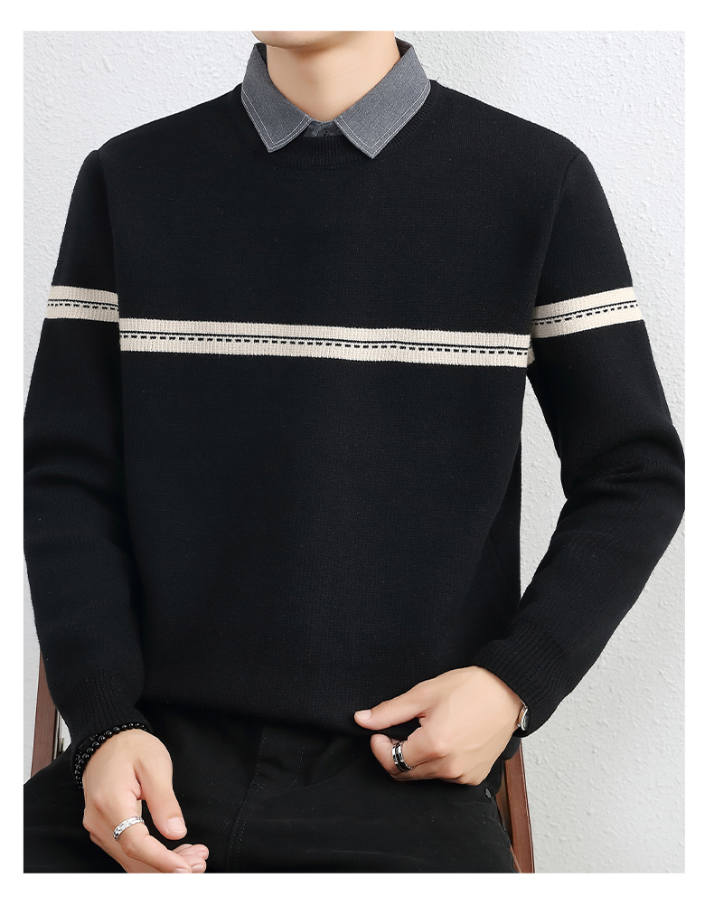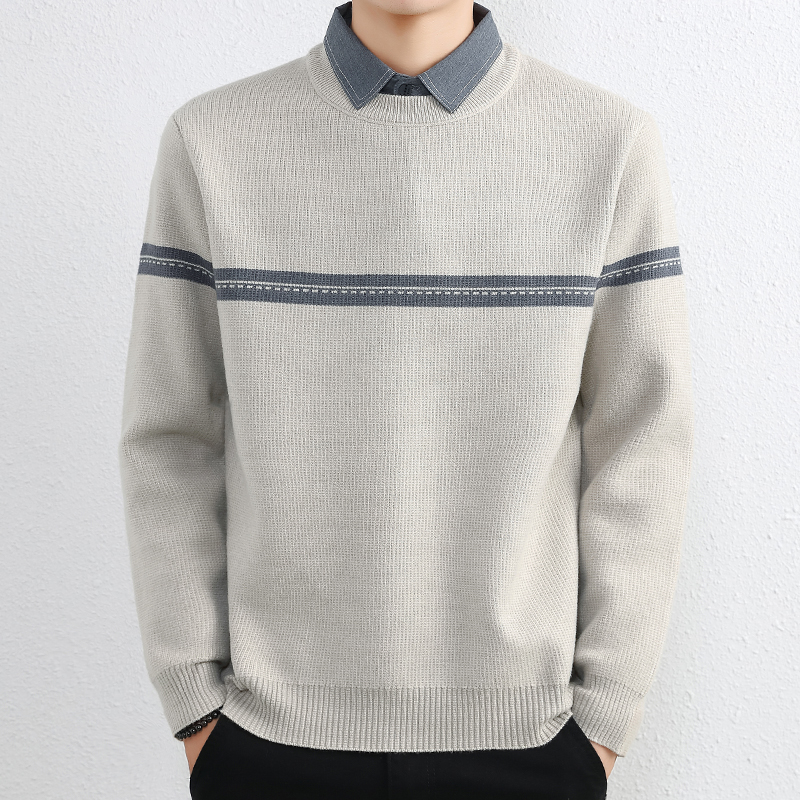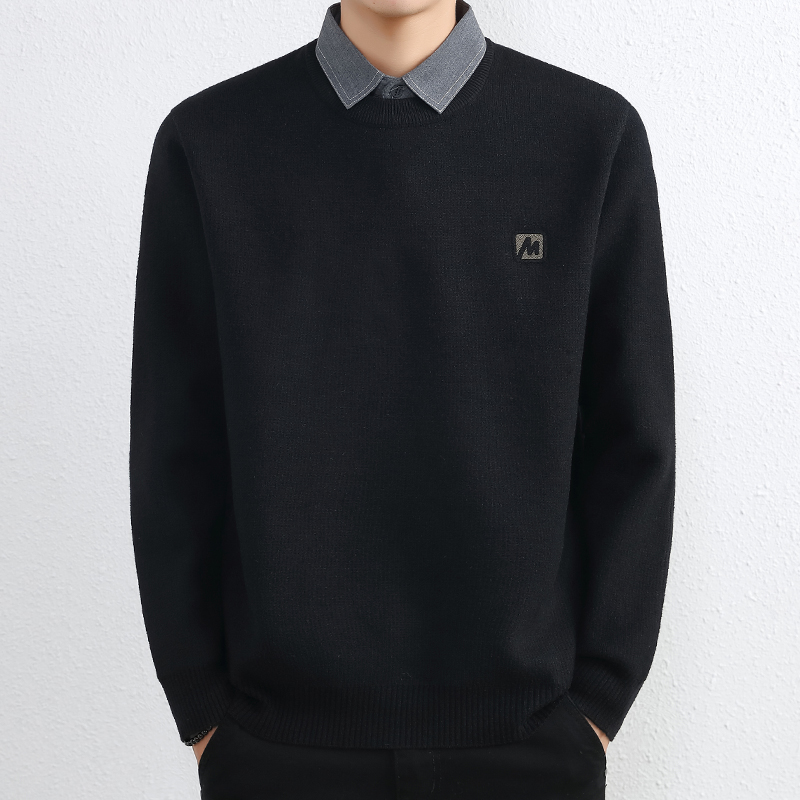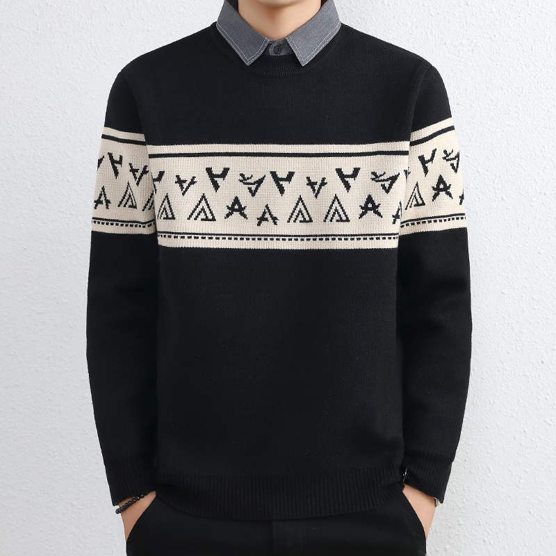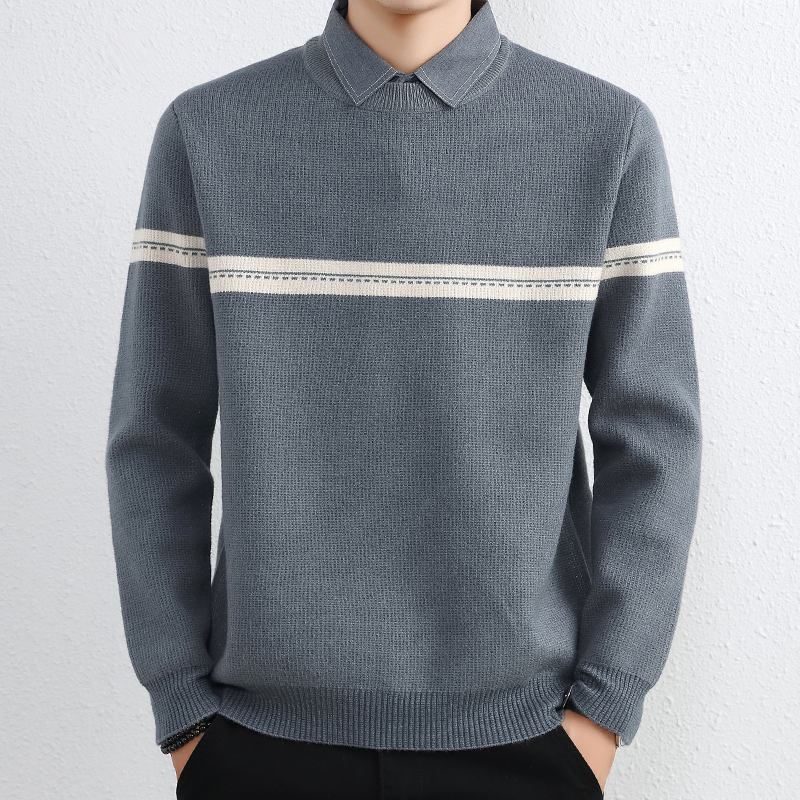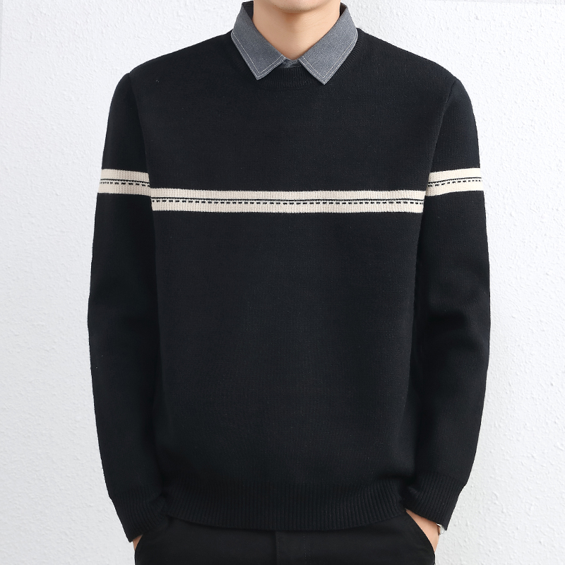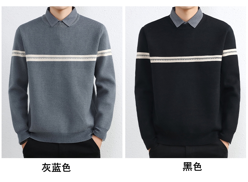 간단한 하이 엔드 가짜 투피스 스웨터 남자 셔츠 칼라 가을과 겨울 두꺼운 따뜻한 탑 내베이스 니트스토어 가기
