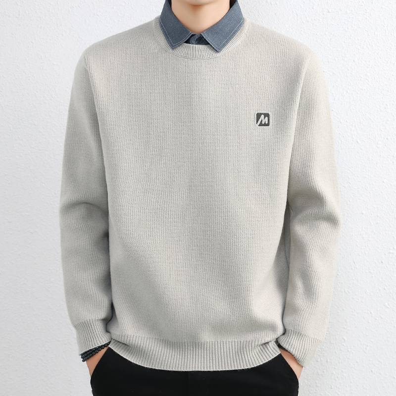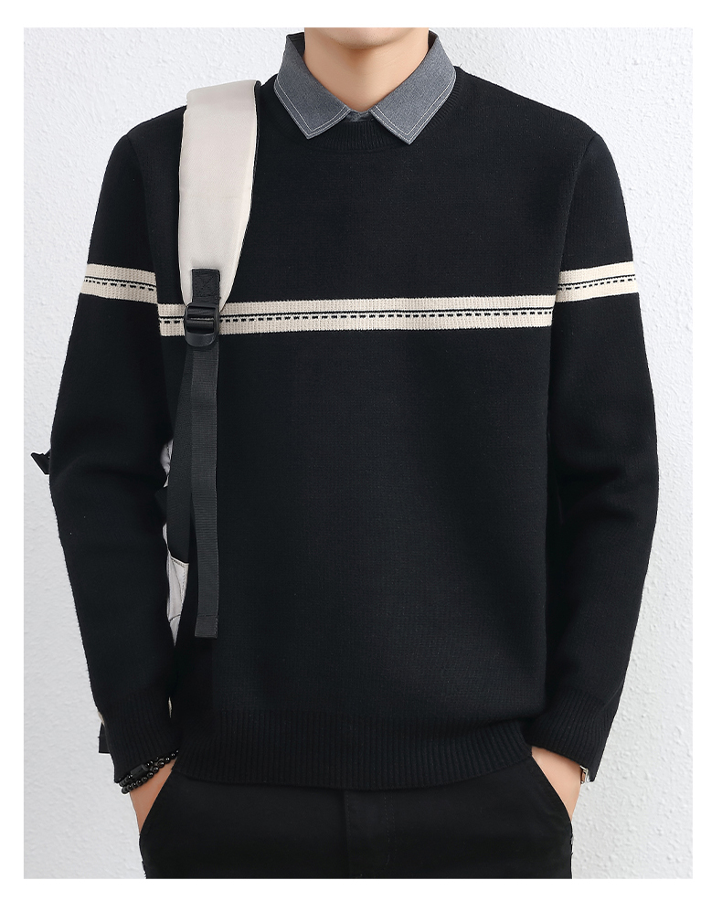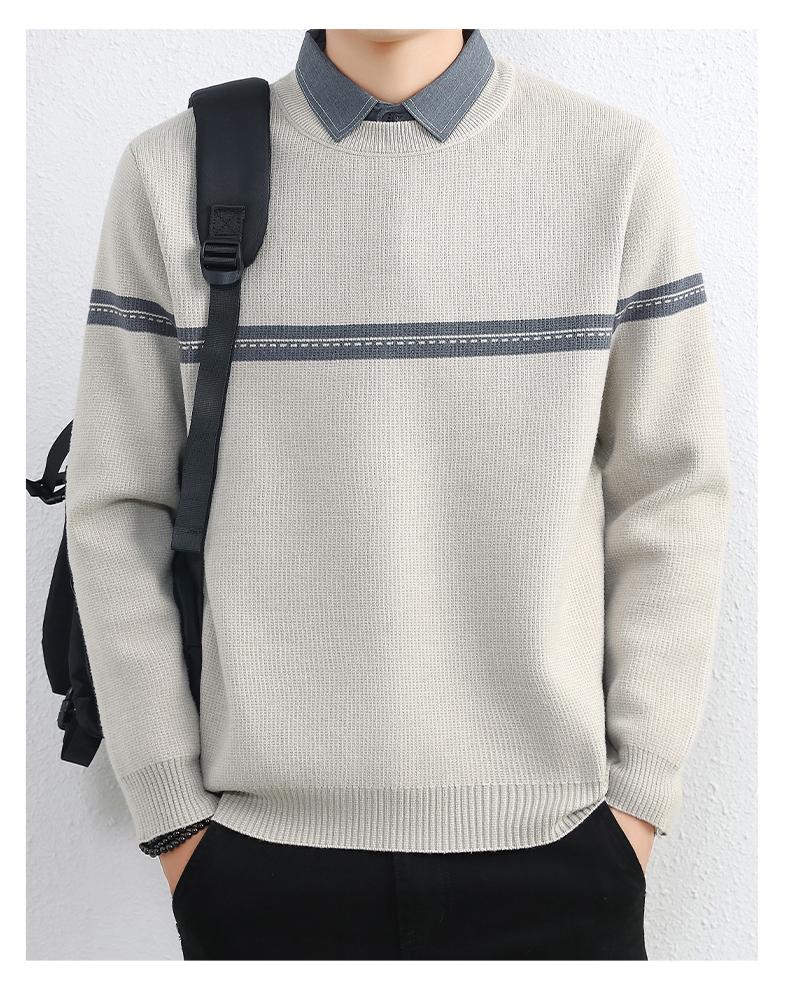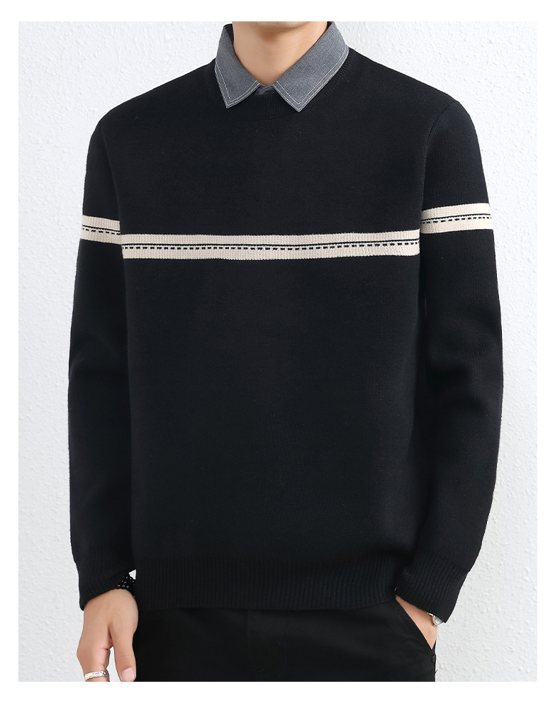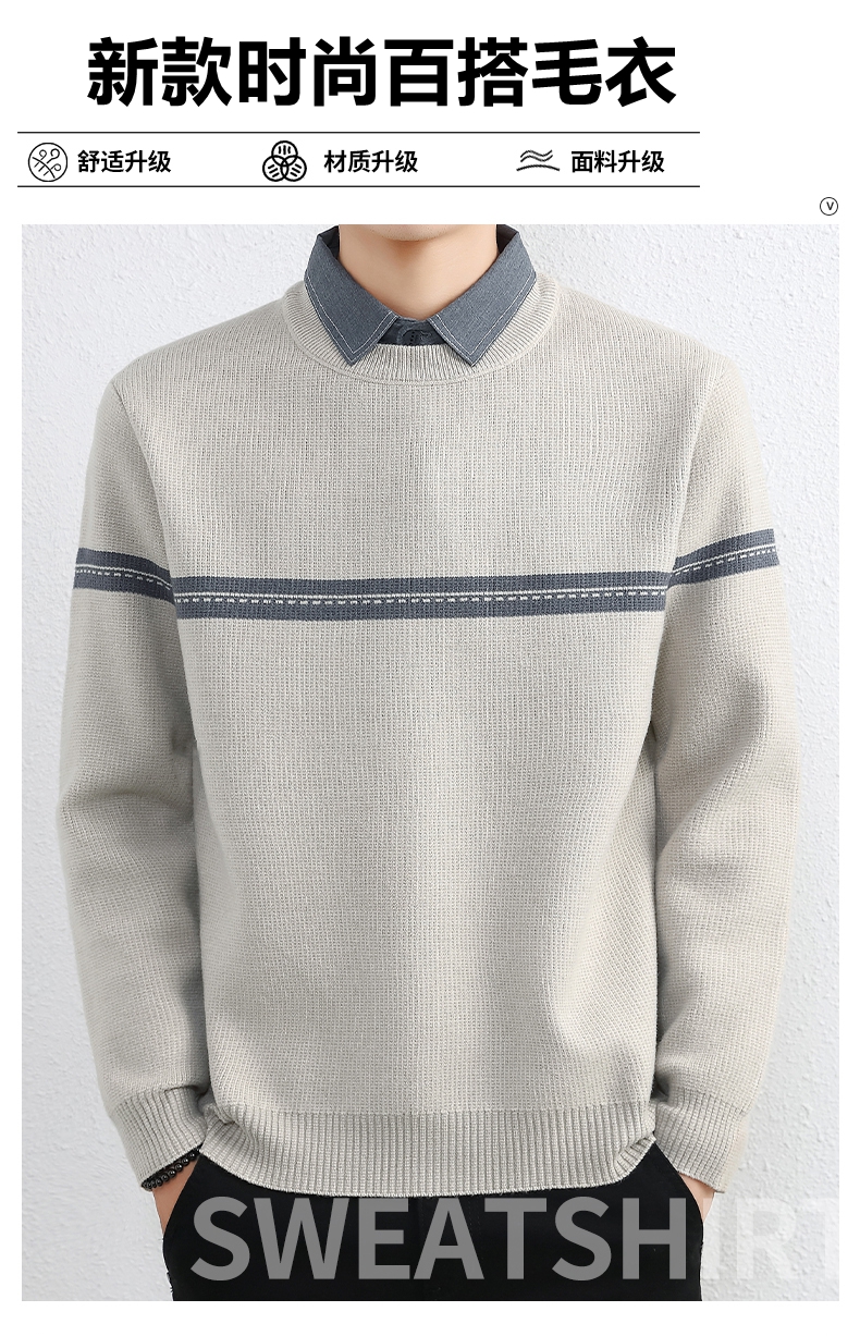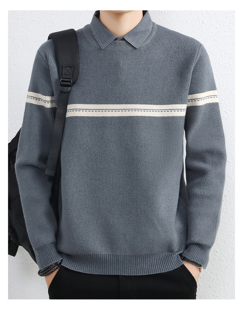 간단한 하이 엔드 가짜 투피스 스웨터 남자 셔츠 칼라 가을과 겨울 두꺼운 따뜻한 탑 내베이스 니트스토어 가기