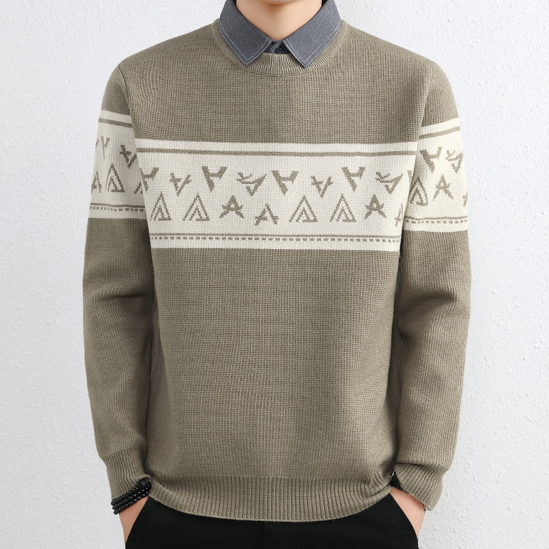 간단한 하이 엔드 가짜 투피스 스웨터 남자 셔츠 칼라 가을과 겨울 두꺼운 따뜻한 탑 내베이스 니트