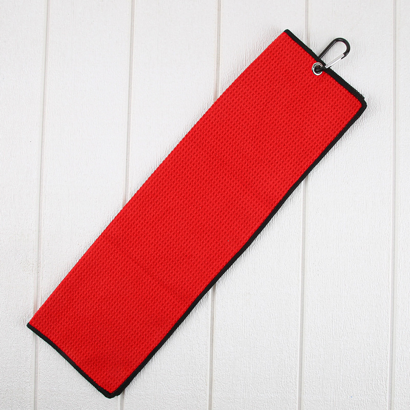 카라비너 파인애플 그리드 타월이 포함된 자수 로고 마이크로파이버 스포츠 타월 와플 골프 타월
