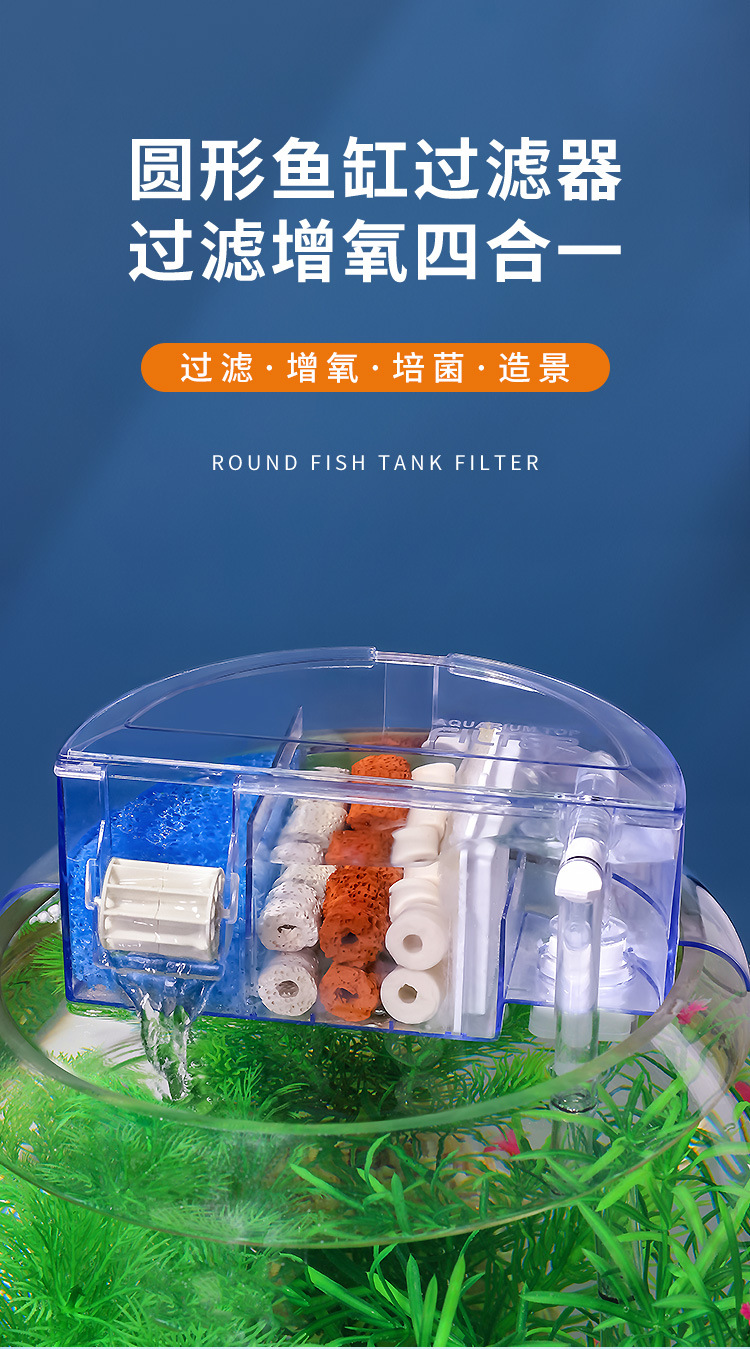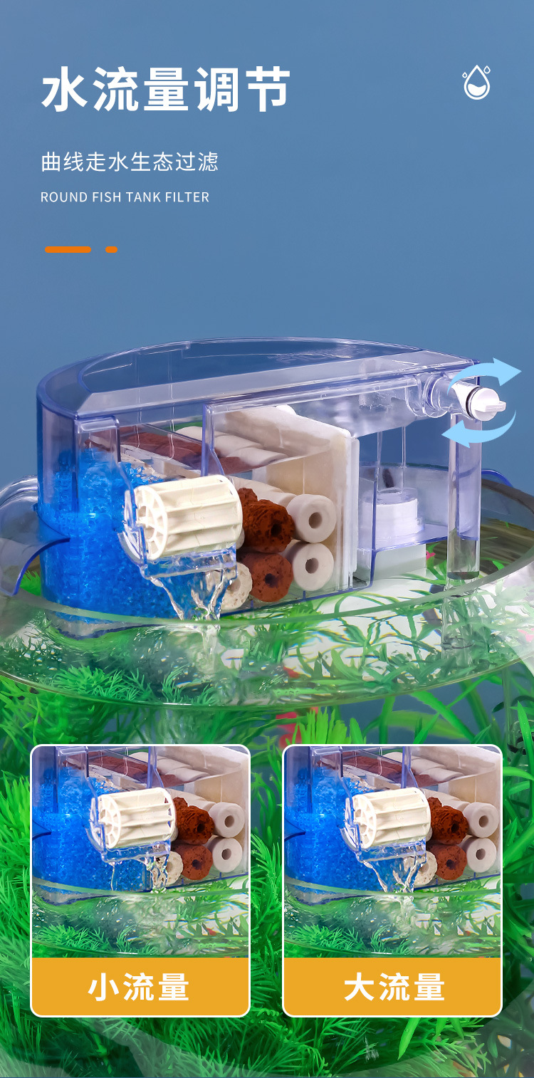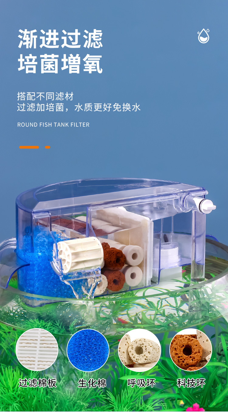 둥근 어항 여과 및 산소 통합 기계 정수 사이클 작은 벽에 장착 된 작은 폭포 3 대 1 워터 펌프