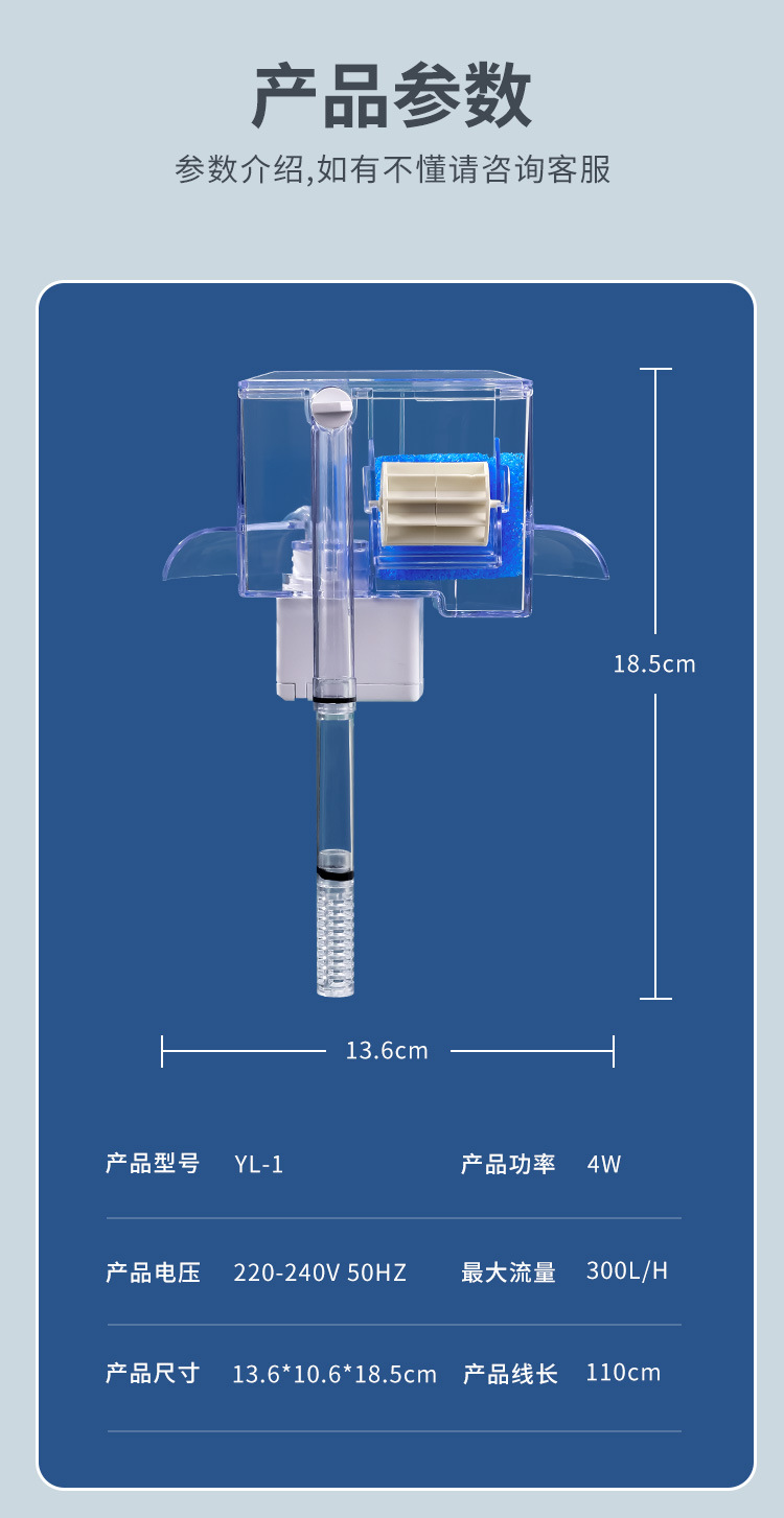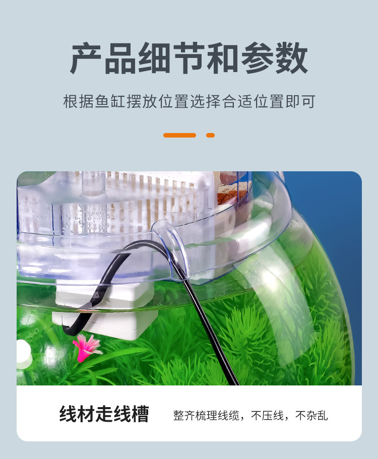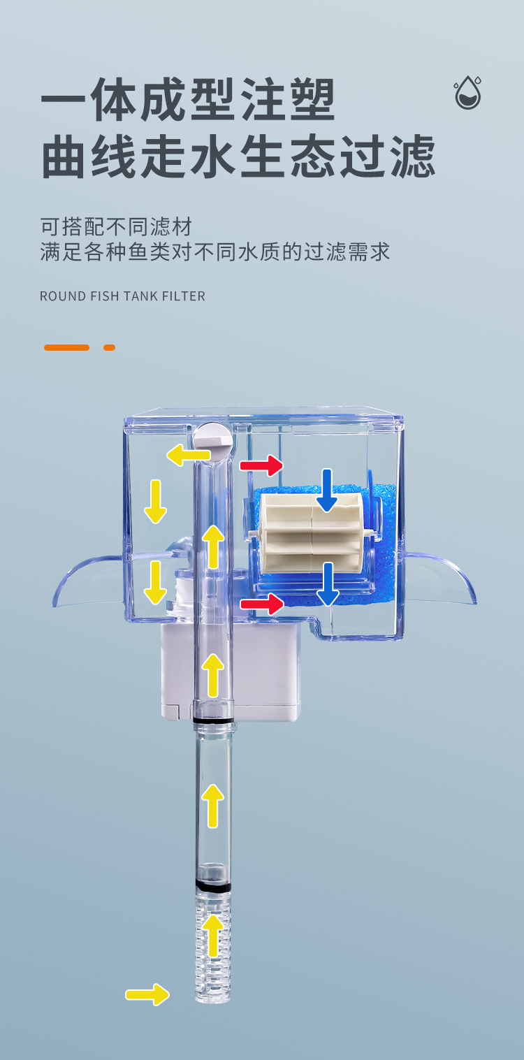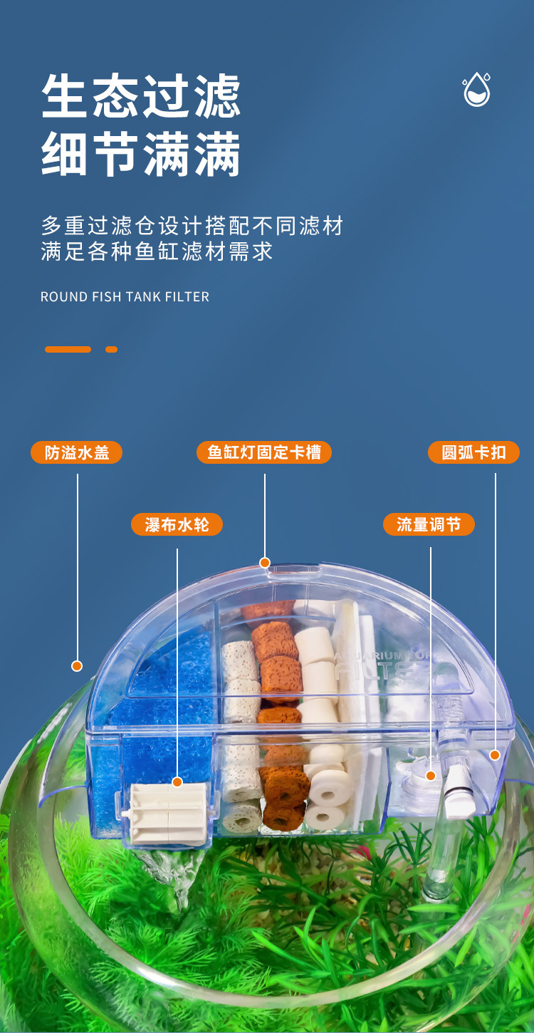둥근 어항 여과 및 산소 통합 기계 정수 사이클 작은 벽에 장착 된 작은 폭포 3 대 1 워터 펌프