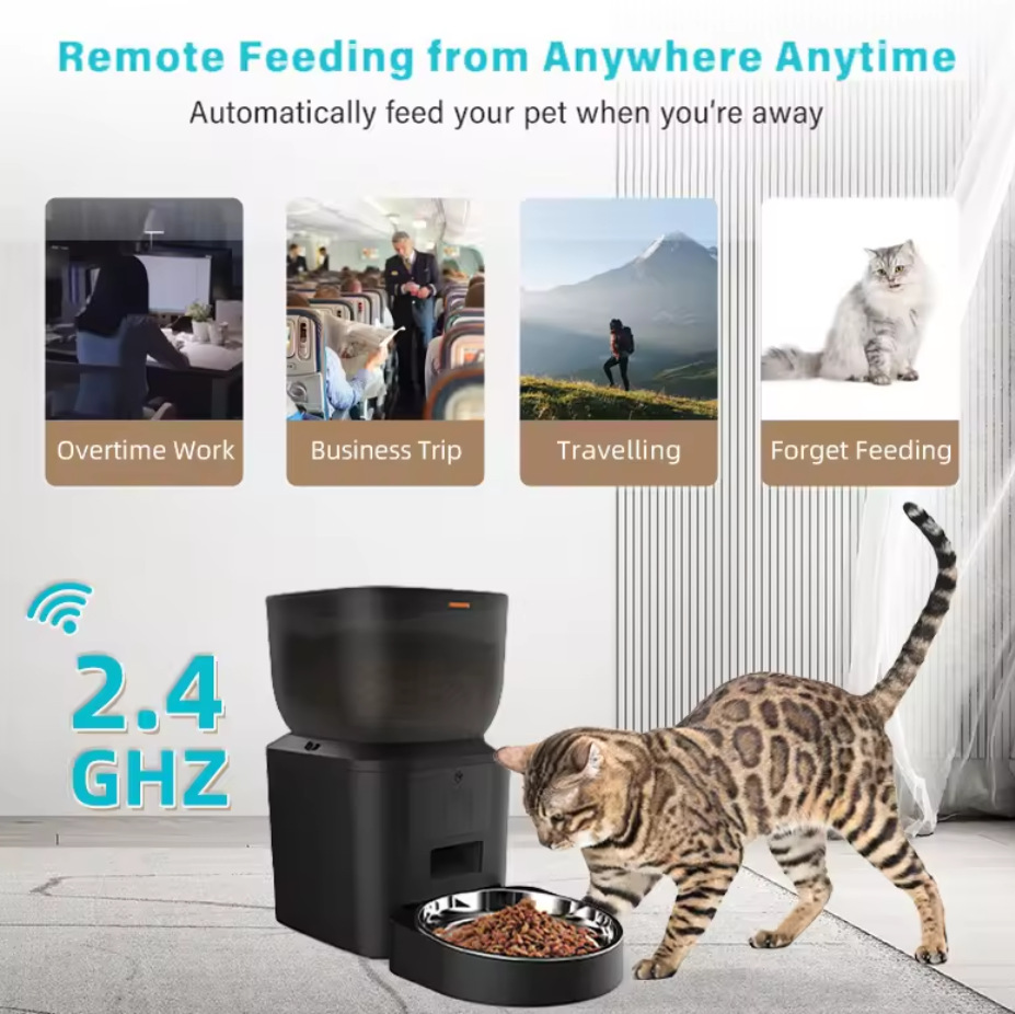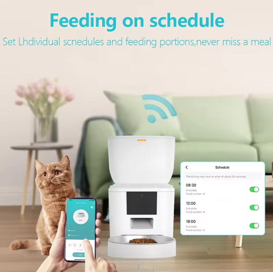 반려동물 스마트 자동 급식기 강아지 고양이 급식기 타이머 설정 및 정량 급식 WiFi 원격 제어 스마트 급식