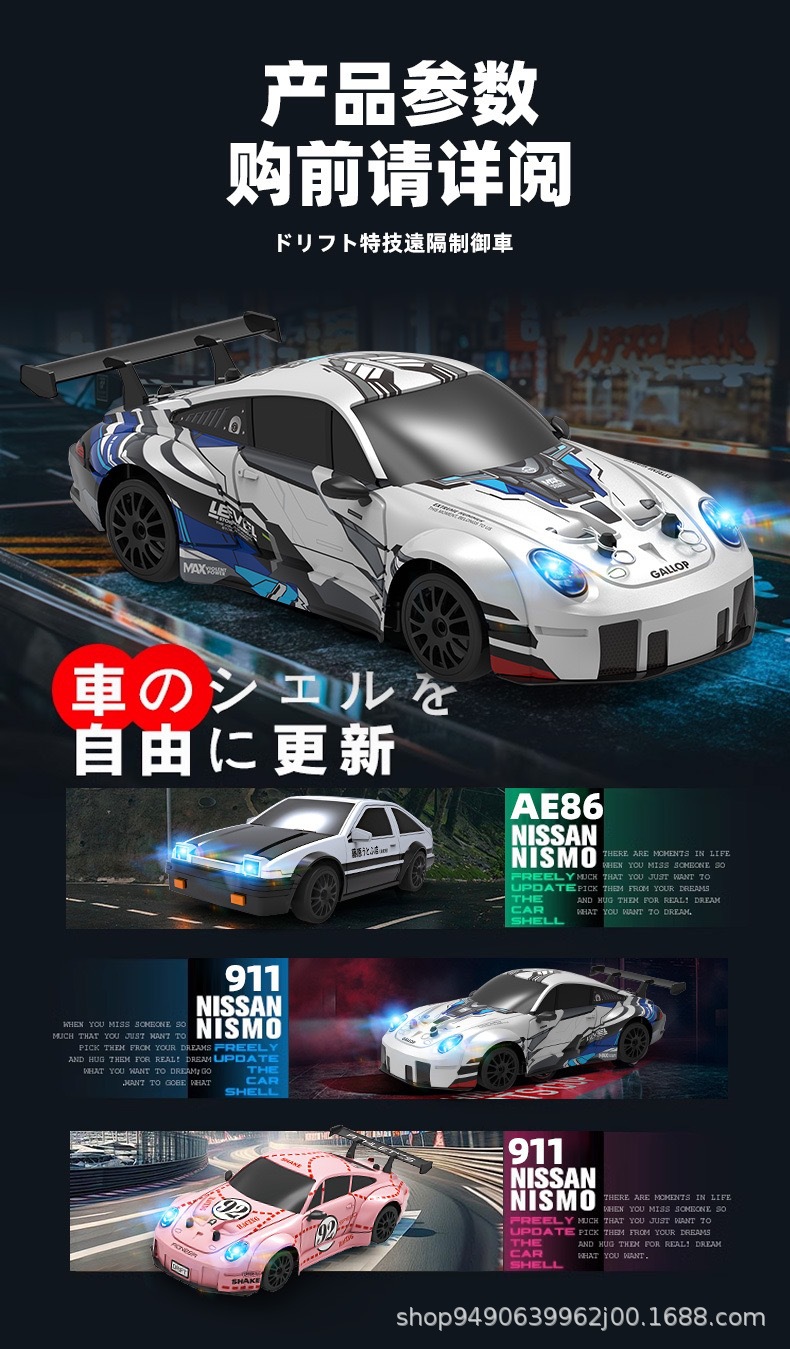 Rc 원격 제어 자동차 4 륜 구동 고속 경주 용 자동차 표류 경주 GTR 소년 911 충전식 장난감 모델 6-12 세