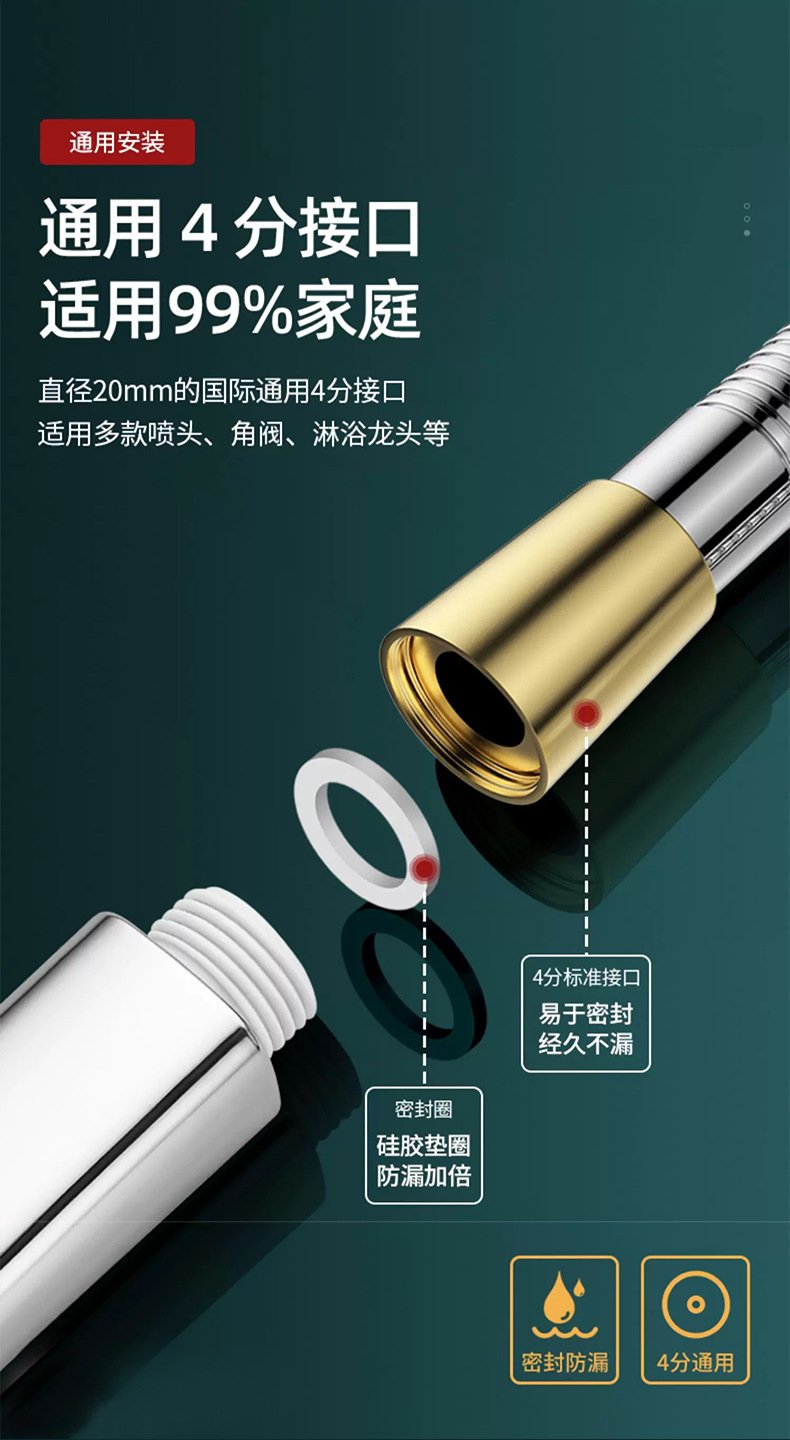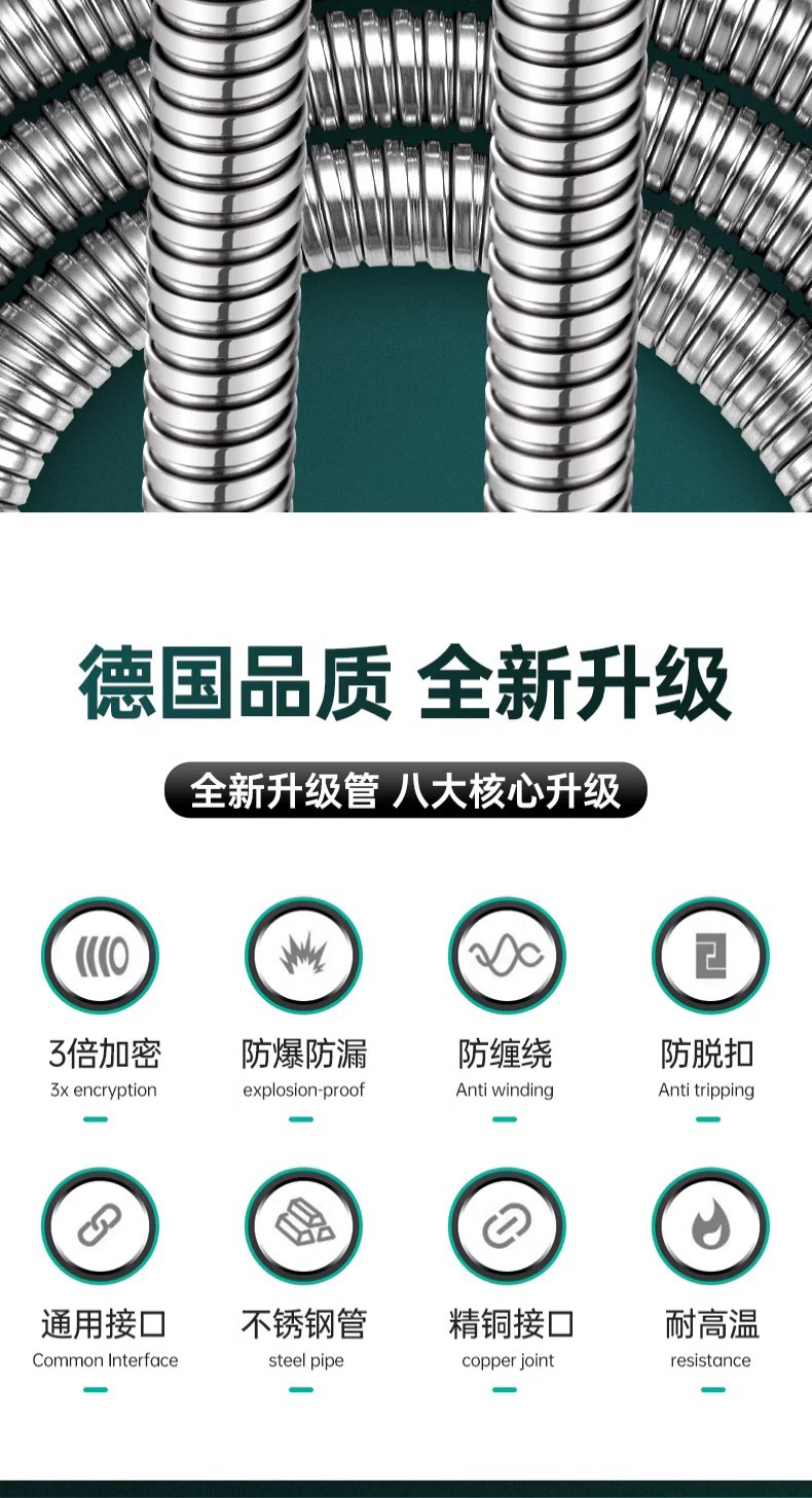 스테인레스 스틸 샤워 호스 샤워 호스 폭발 방지 샤워 노즐 수도관 전기 도금 금속 호스 1 m 1.5 m 2m