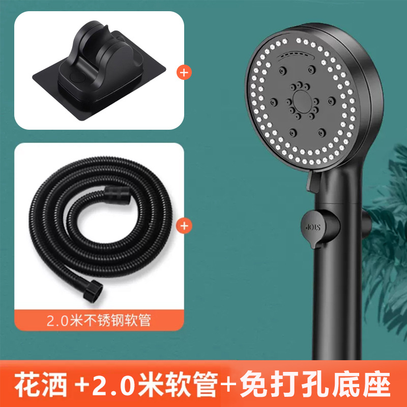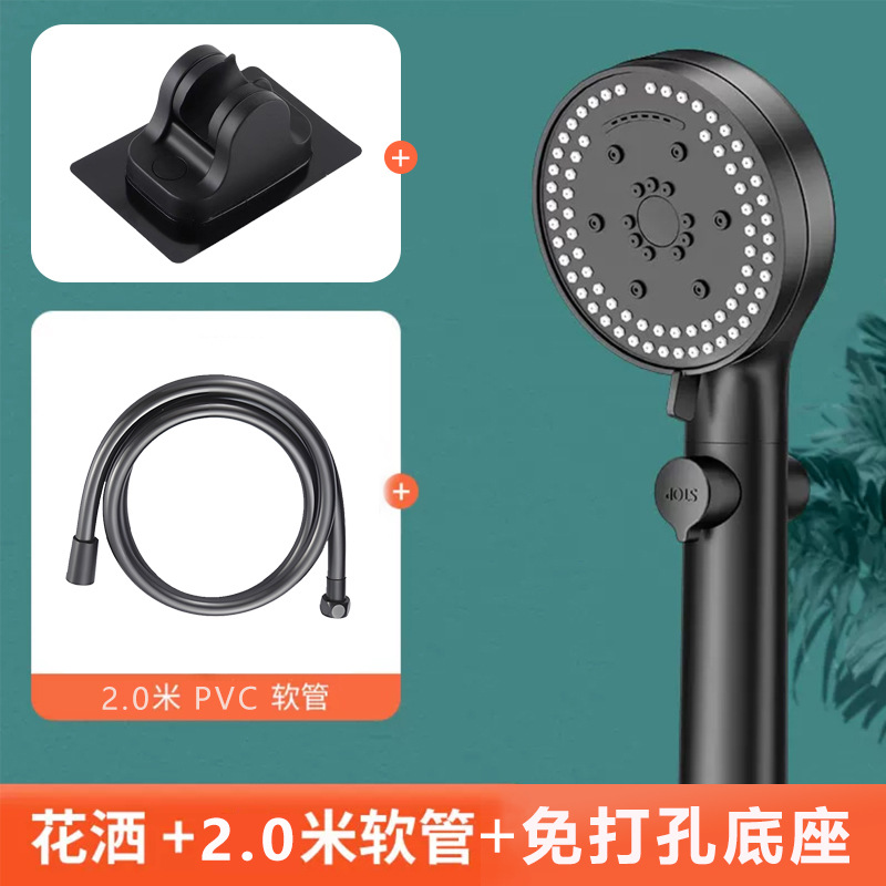 • 펀칭 베이스 없음 + 샤워 헤드 + 2m 검정색 스테인레스 스틸 호스
