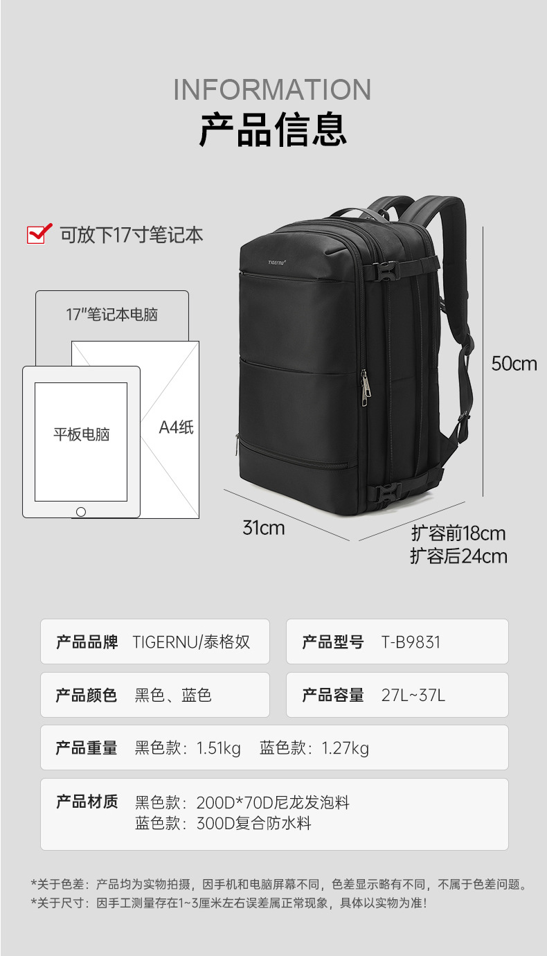 tigernu 캐주얼 여행 배낭 남학생용 책가방 다기능 컴퓨터 가방 대용량 배낭 방수 및 내마모성