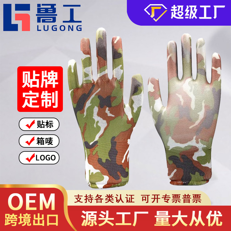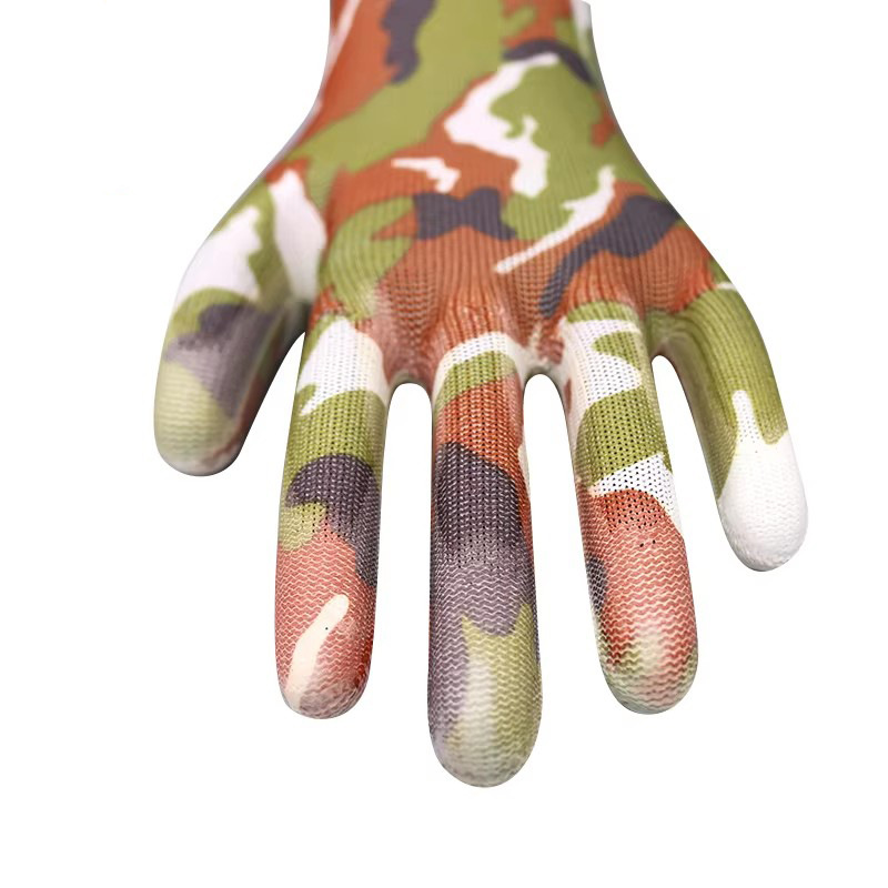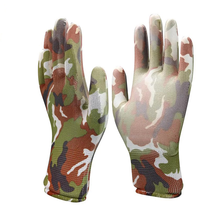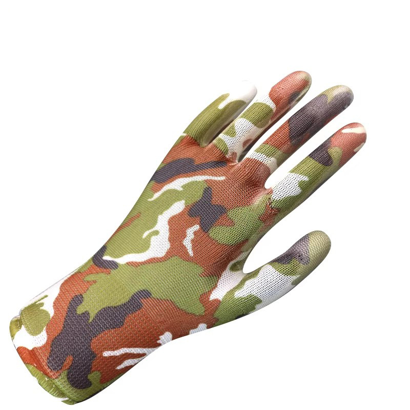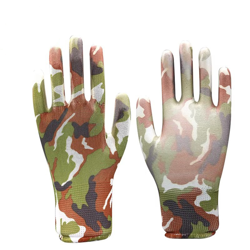 얇은 PU 코팅 손바닥 및 손가락 장갑, 인쇄된 노동 보호 내마모성 미끄럼 방지 나일론 코팅 작업 보호 장갑스토어 가기