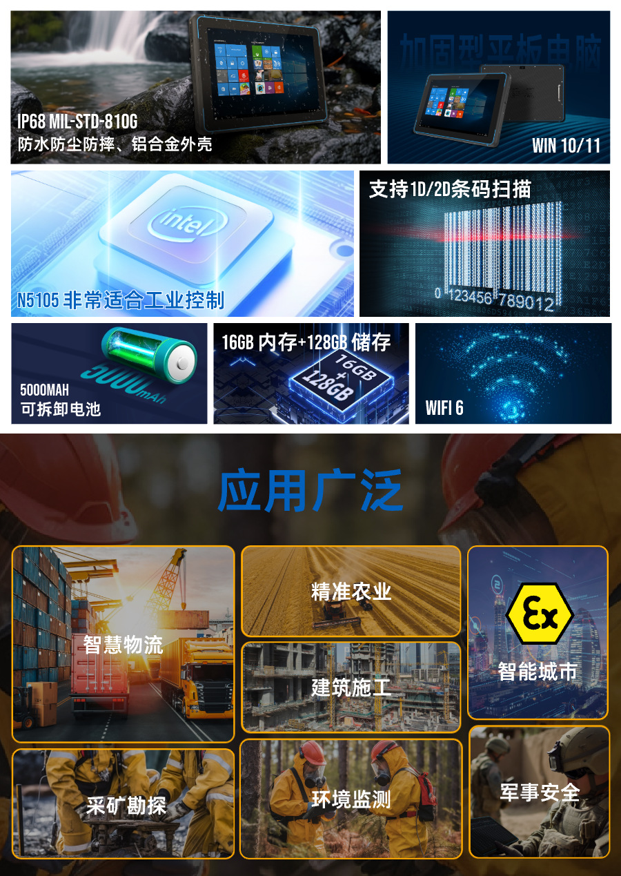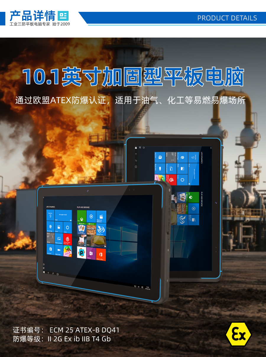 Zone1/21 가스/먼지 화학 및 석유 위험 장면용 HUGEROCK W105 방폭형 태블릿 PC