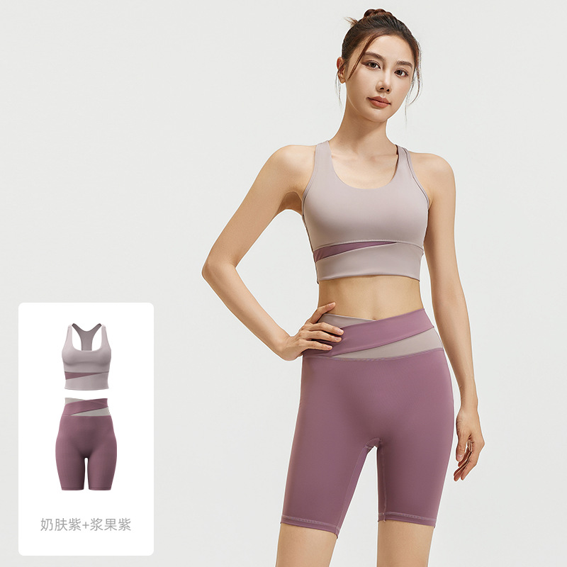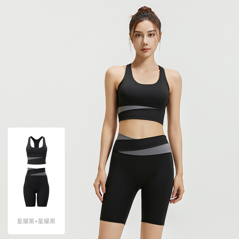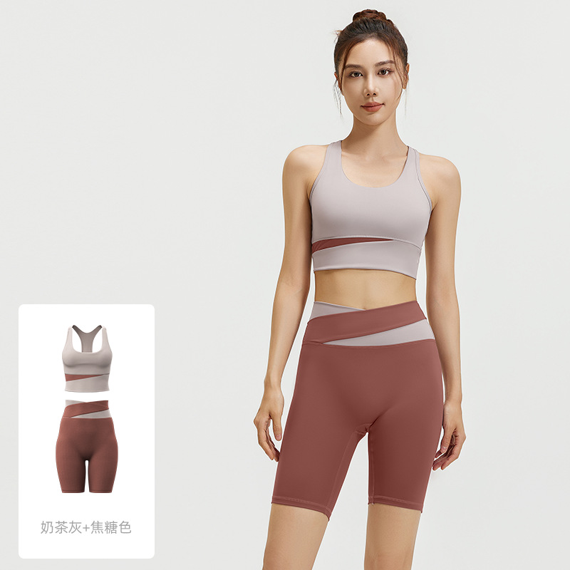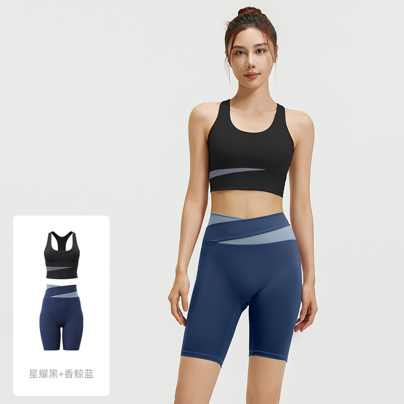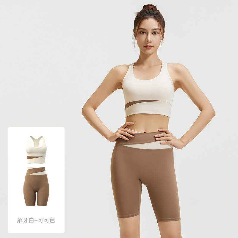 요가 조끼 반바지 세트 여름 배색 캐주얼 통기성 스포츠 세트 고탄력 누드 느낌 피트니스 요가복 여성용스토어 가기