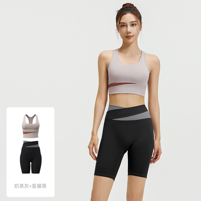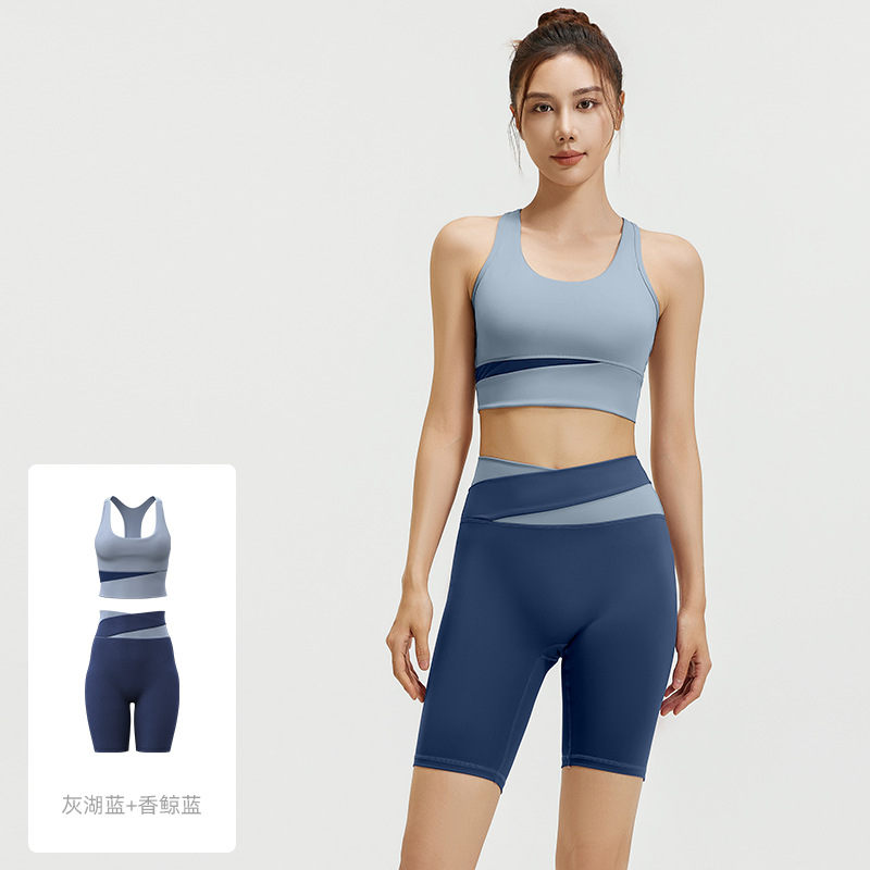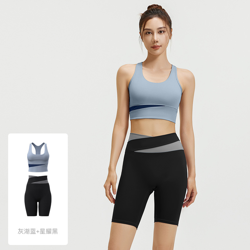 요가 조끼 반바지 세트 여름 배색 캐주얼 통기성 스포츠 세트 고탄력 누드 느낌 피트니스 요가복 여성용